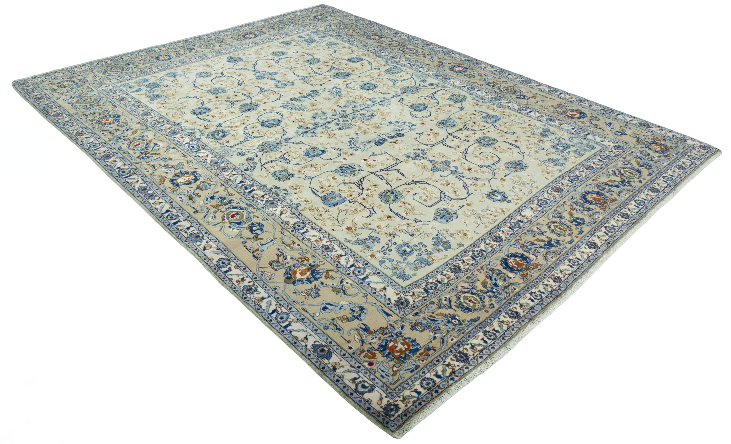 Tæppe-nr.: 286085006861715 Størrelse: 381x297 cm Tykkelse: ca. 12 mm Knuder: 120 000 - 150 000 / m² Forarbejdelse: Knyttet i hånden Luv: Håndspunden uld Kæde: Bomuld Oprindelse: Persien / Iran Alder: Ny Vægt: ca. 40 kg Antal på lager: Unik - Kun 1 tilbage på lager