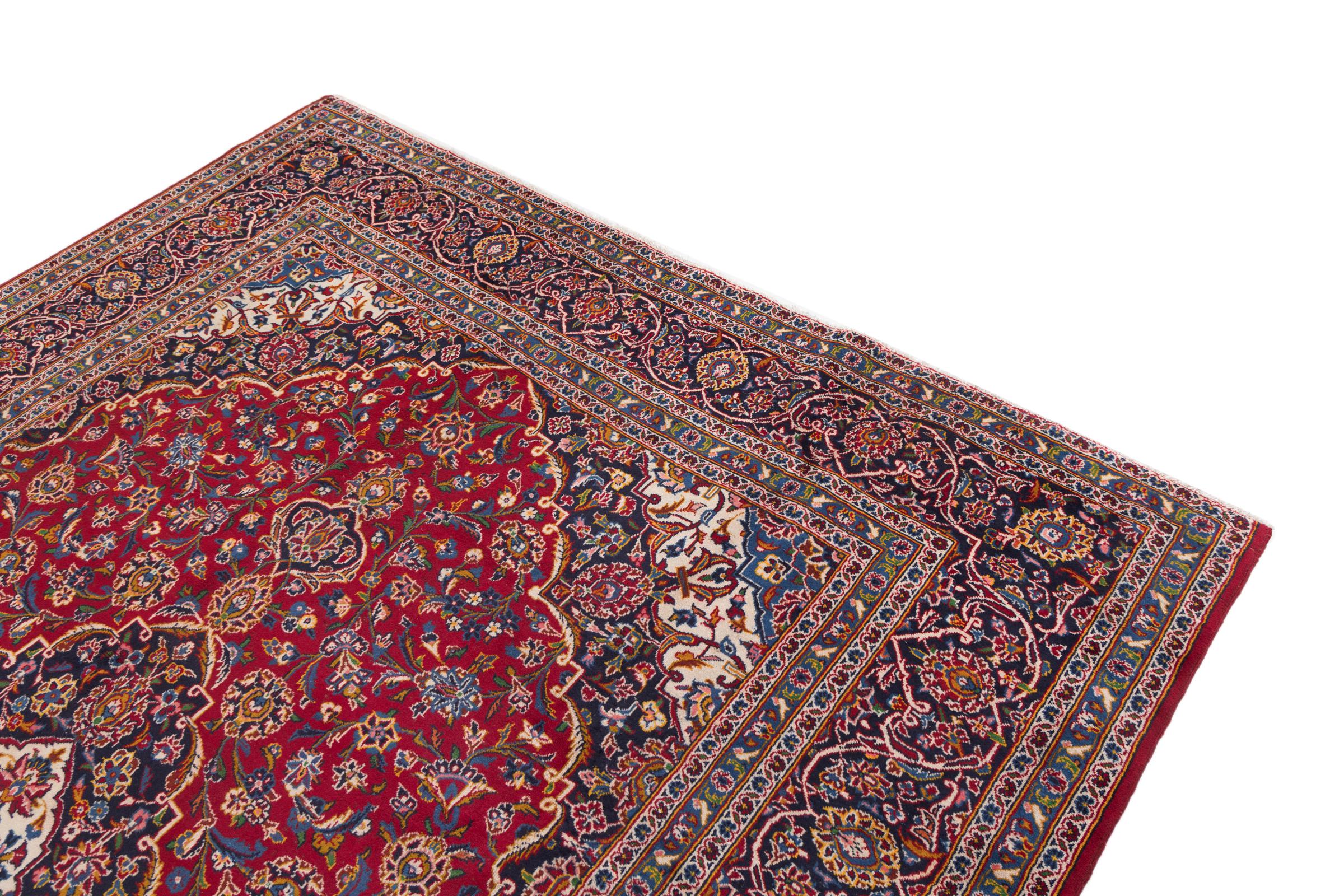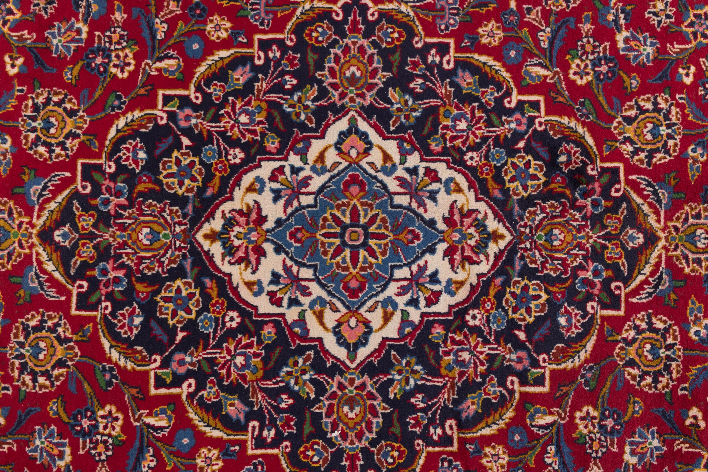 Dette tæppe fra Kashan (Keshan) er holdt i sit meget traditionelle og typiske persiske design med smukke ornamenter. Kashan tæpper er meget populære på grund af deres usædvanligt elegante design. Disse tæpper stammer fra Kashan, en by på den gamle Silkevej. Dette tæppe er blevet knyttet i hånden af højkvalitets fåreuld og vil være et unikt højdepunkt i dit hjem.