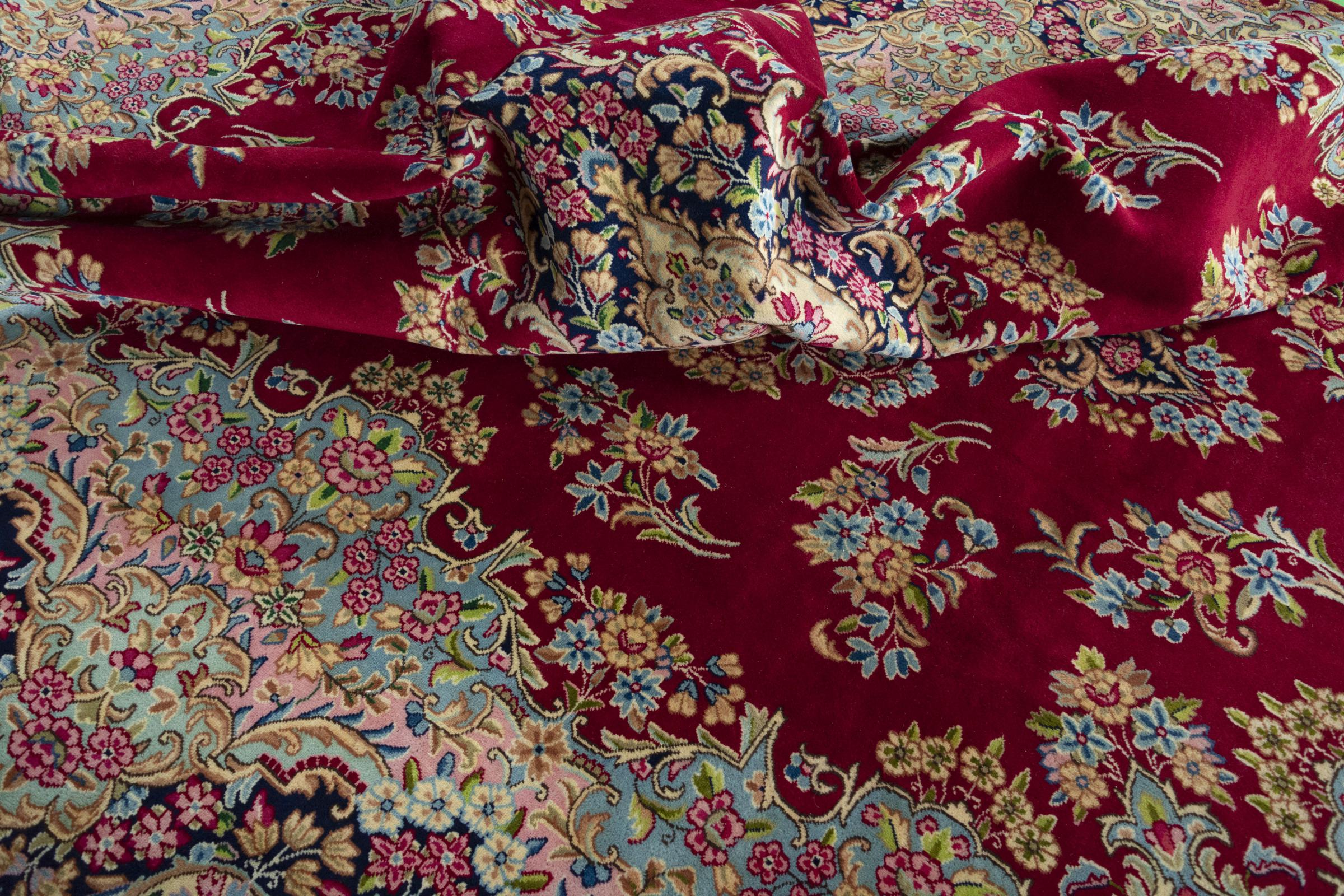 Dette tæppe består af håndspundet fåruld af højeste kvalitet. Især i Iran (tidligere Persien), Afghanistan og Pakistan spindes uld med hånden, før tæppet faktisk knuses. Uld har bevist sig som et naturligt og ekstremt slidstærkt materiale gennem århundreder. Det har blandt andet snavsafvisende og varmeisolerende egenskaber. Samtidig er uld uforlignelig blød og bringer en naturlig glans.