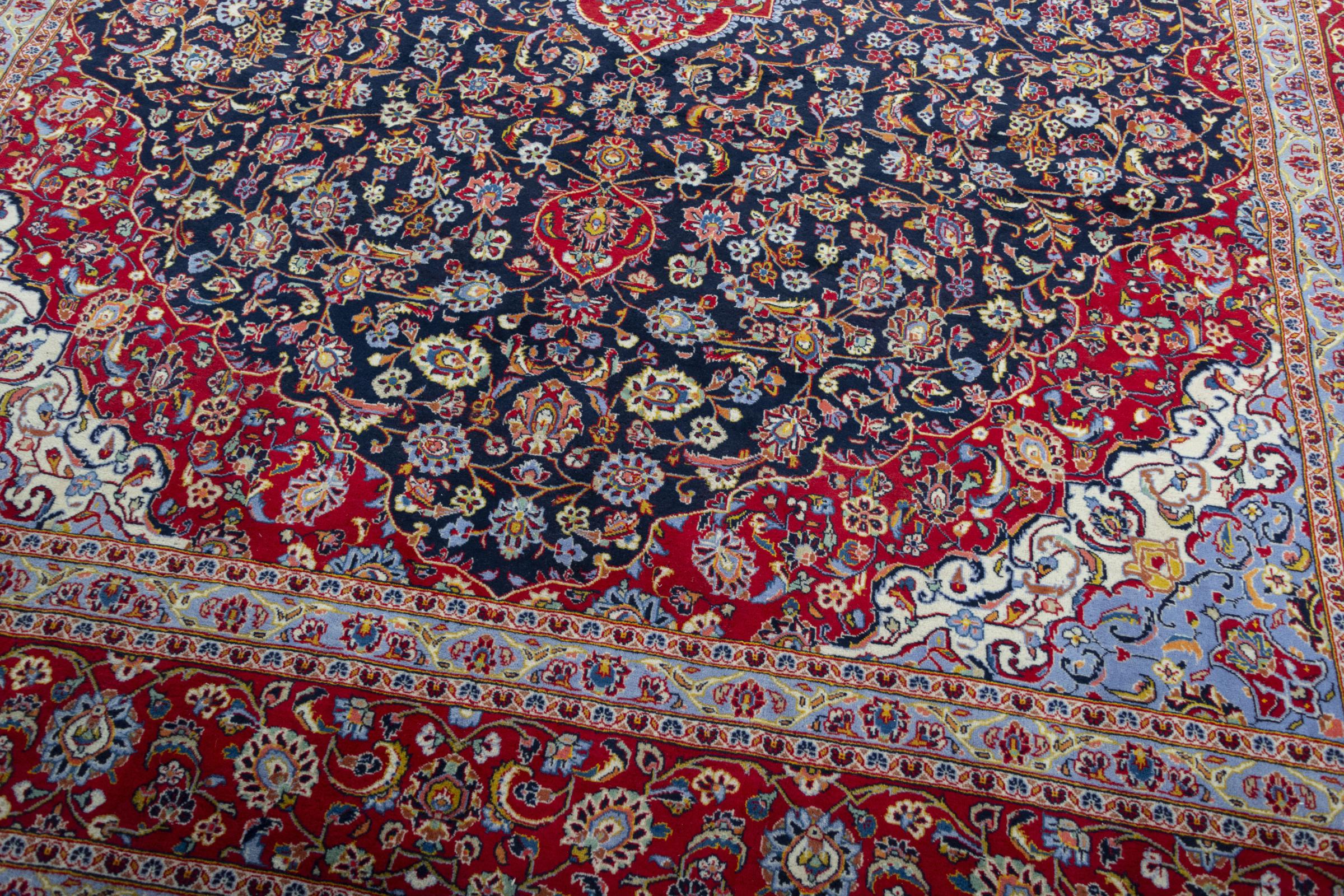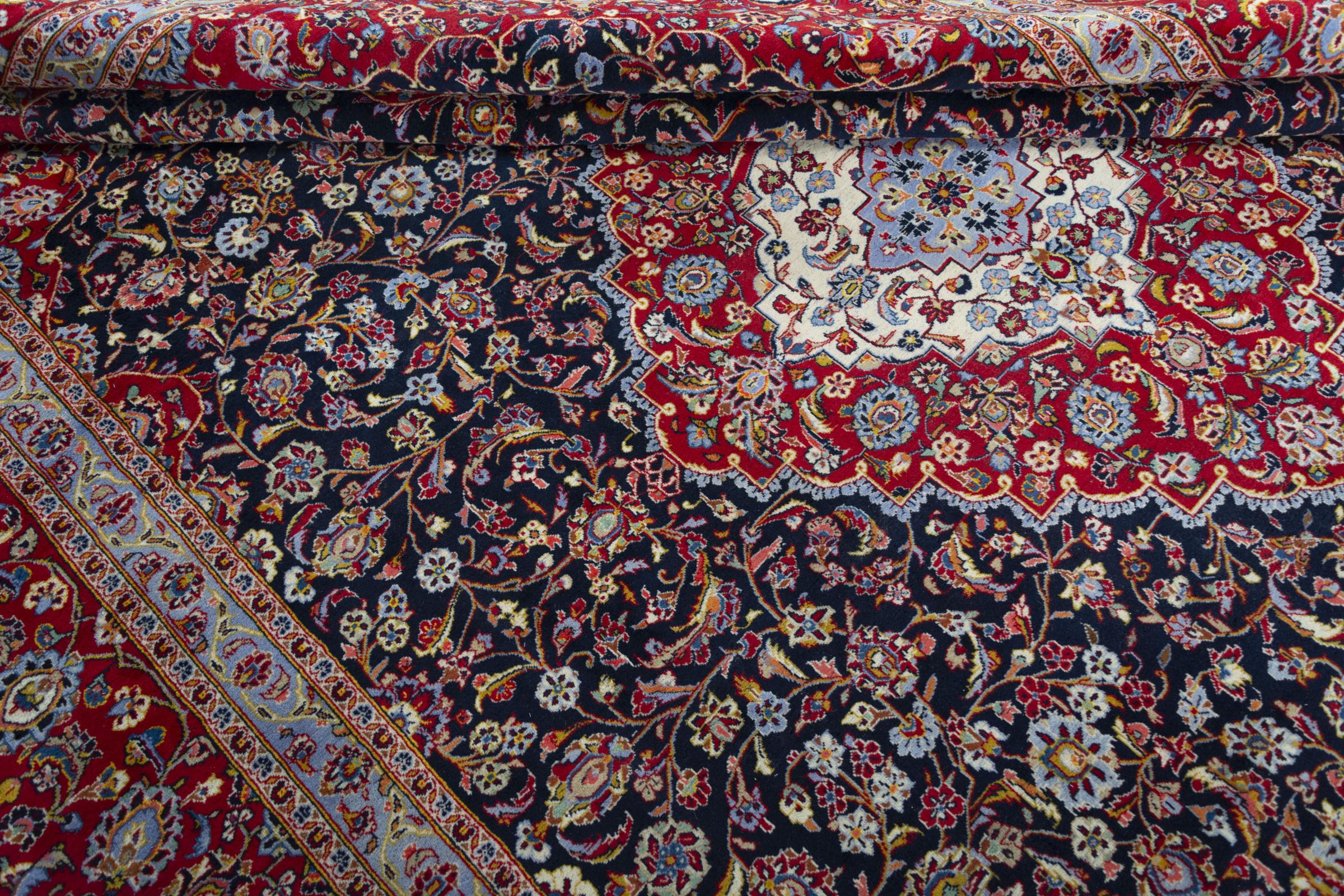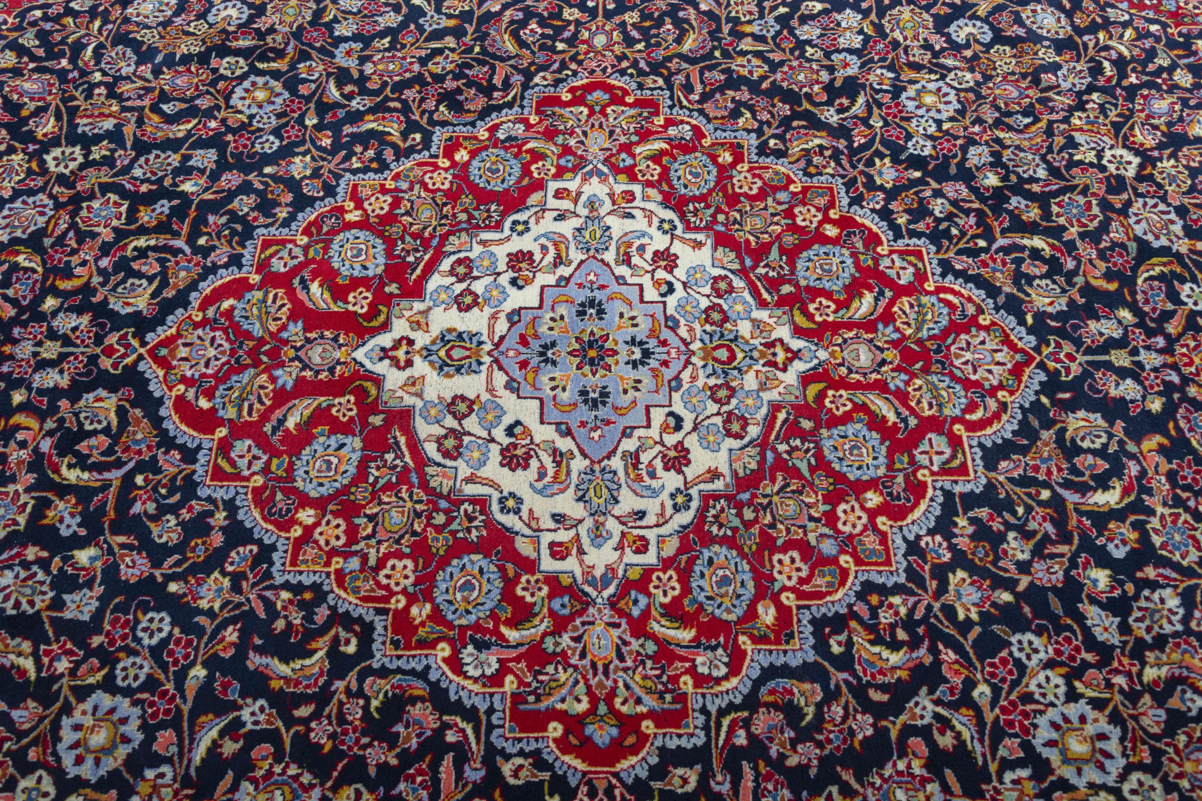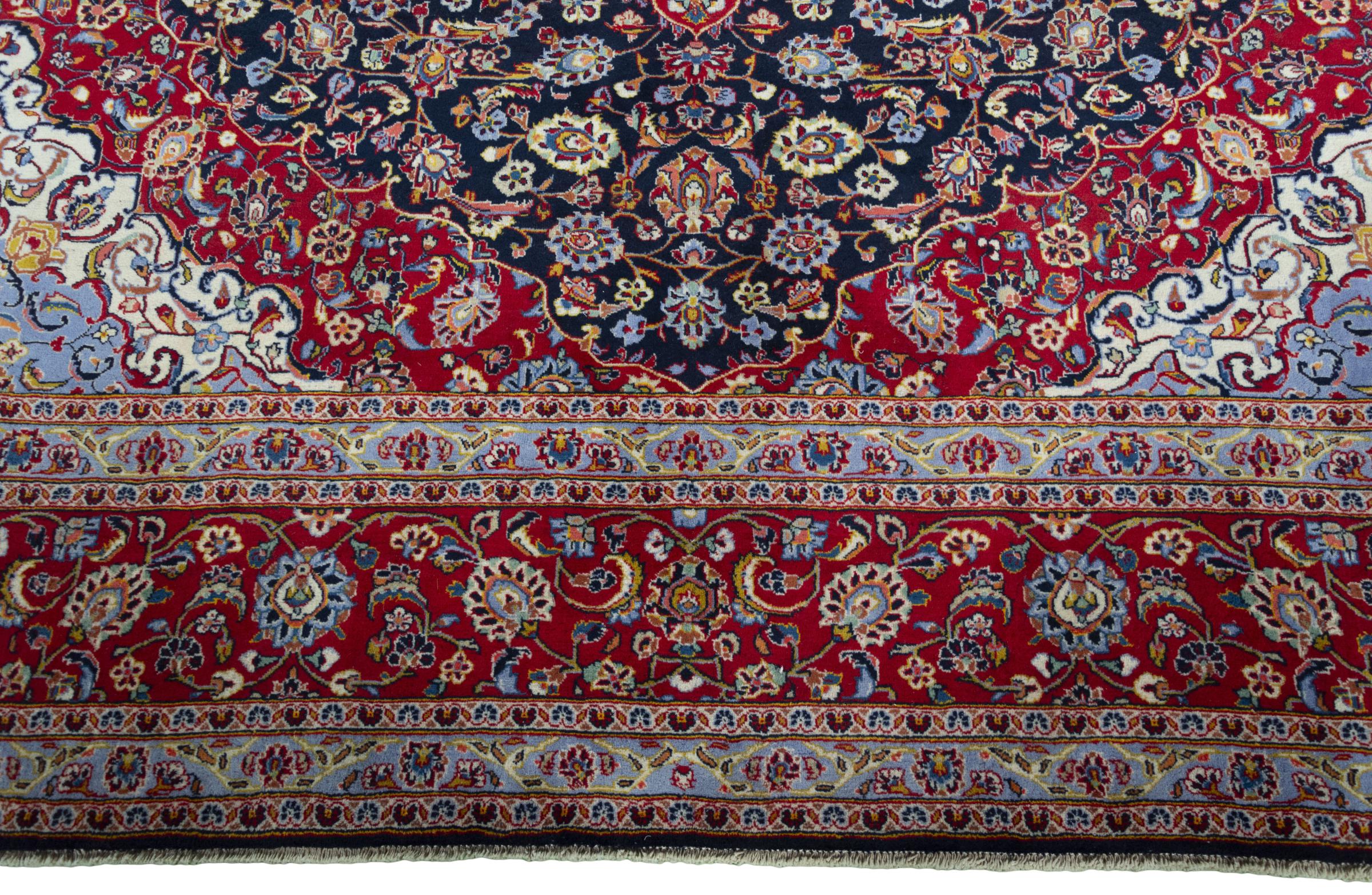 Dette tæppe fra Kashan (Keshan) er holdt i sit meget traditionelle og typiske persiske design med smukke ornamenter. Kashan tæpper er meget populære på grund af deres usædvanligt elegante design. Disse tæpper stammer fra Kashan, en by på den gamle Silkevej. Dette tæppe er blevet knyttet i hånden af højkvalitets fåreuld og vil være et unikt højdepunkt i dit hjem.