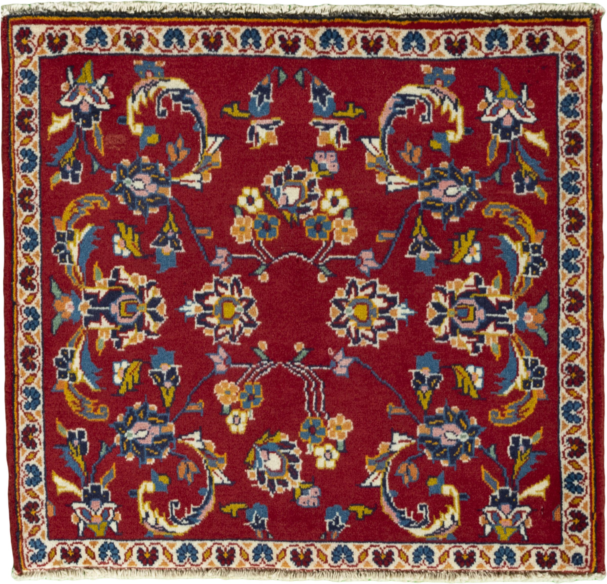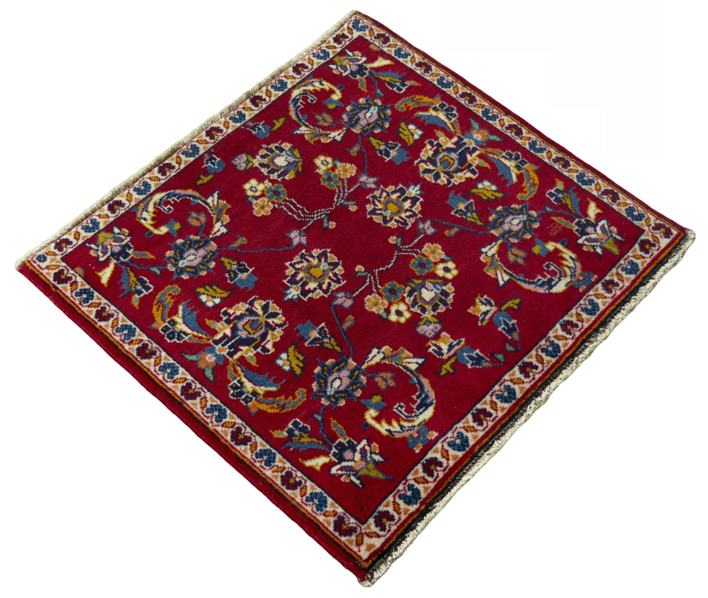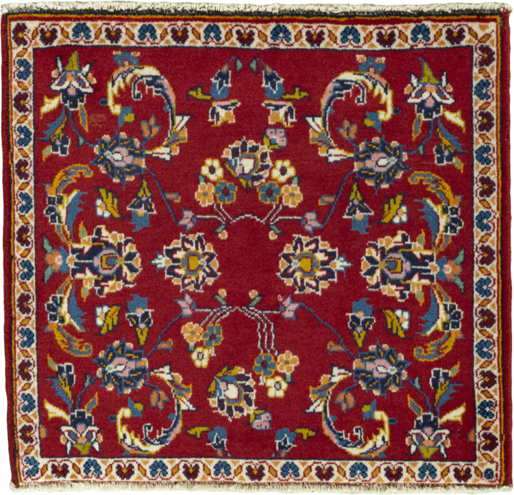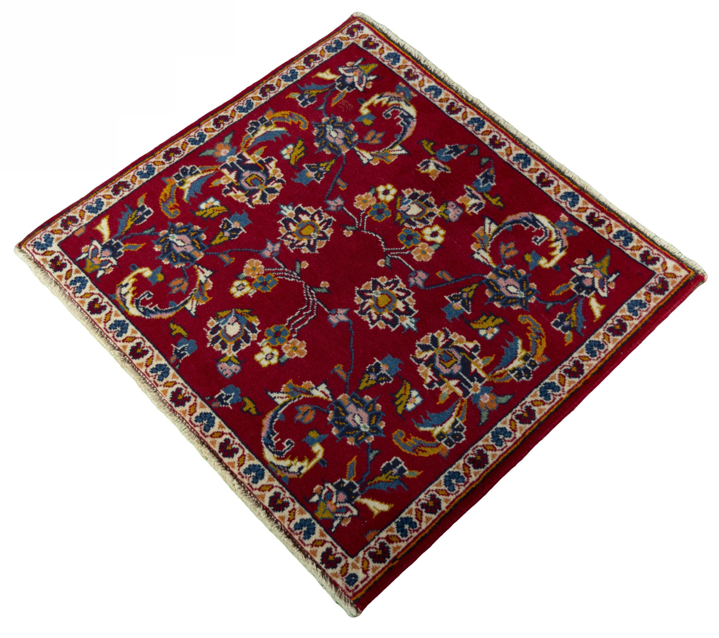 Tæppe-nr.: 286001008021472 Størrelse: 59x62 cm Tykkelse: ca. 12 mm Knuder: 120 000 - 150 000 / m² Forarbejdelse: Knyttet i hånden Luv: Håndspunden uld Kæde: Bomuld Oprindelse: Persien / Iran Alder: Ny Vægt: ca. 1 kg Antal på lager: Unik - Kun 1 tilbage på lager