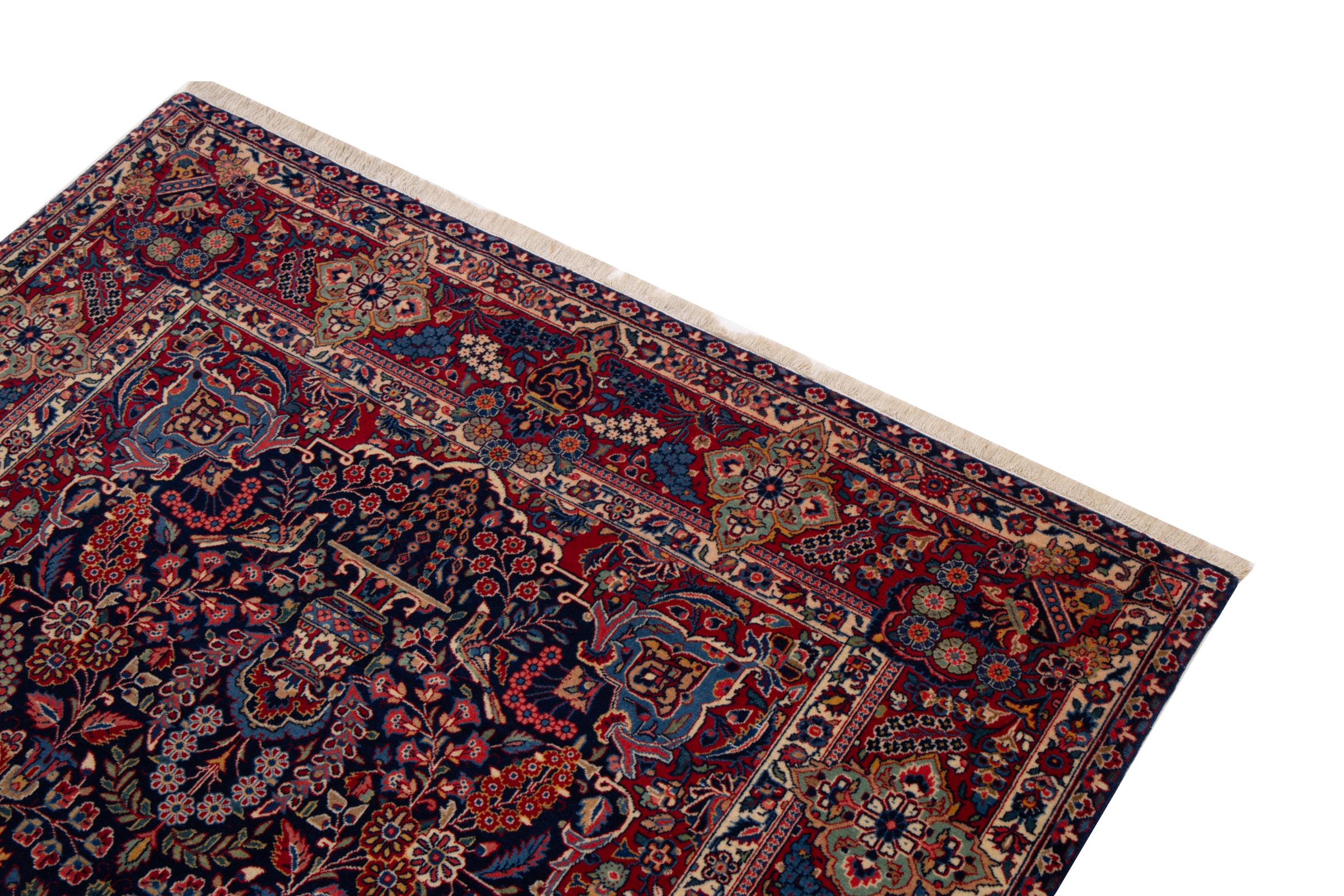 Tæppe-nr.: 292355006837769 Størrelse: 207x141 cm Tykkelse: ca. 8 mm Knuder: 320 000 - 360 000 / m² Forarbejdelse: Knyttet i hånden Luv: Korkuld Kæde: Bomuld Tilstand / Bevaring Perfekt Oprindelse: Persien / Iran Alder: Antik, ældre end 80 år Vægt: ca. 10 kg Antal på lager: Unik - Kun 1 tilbage på lager