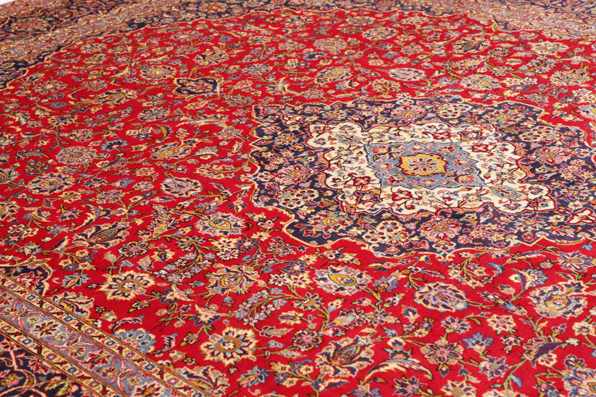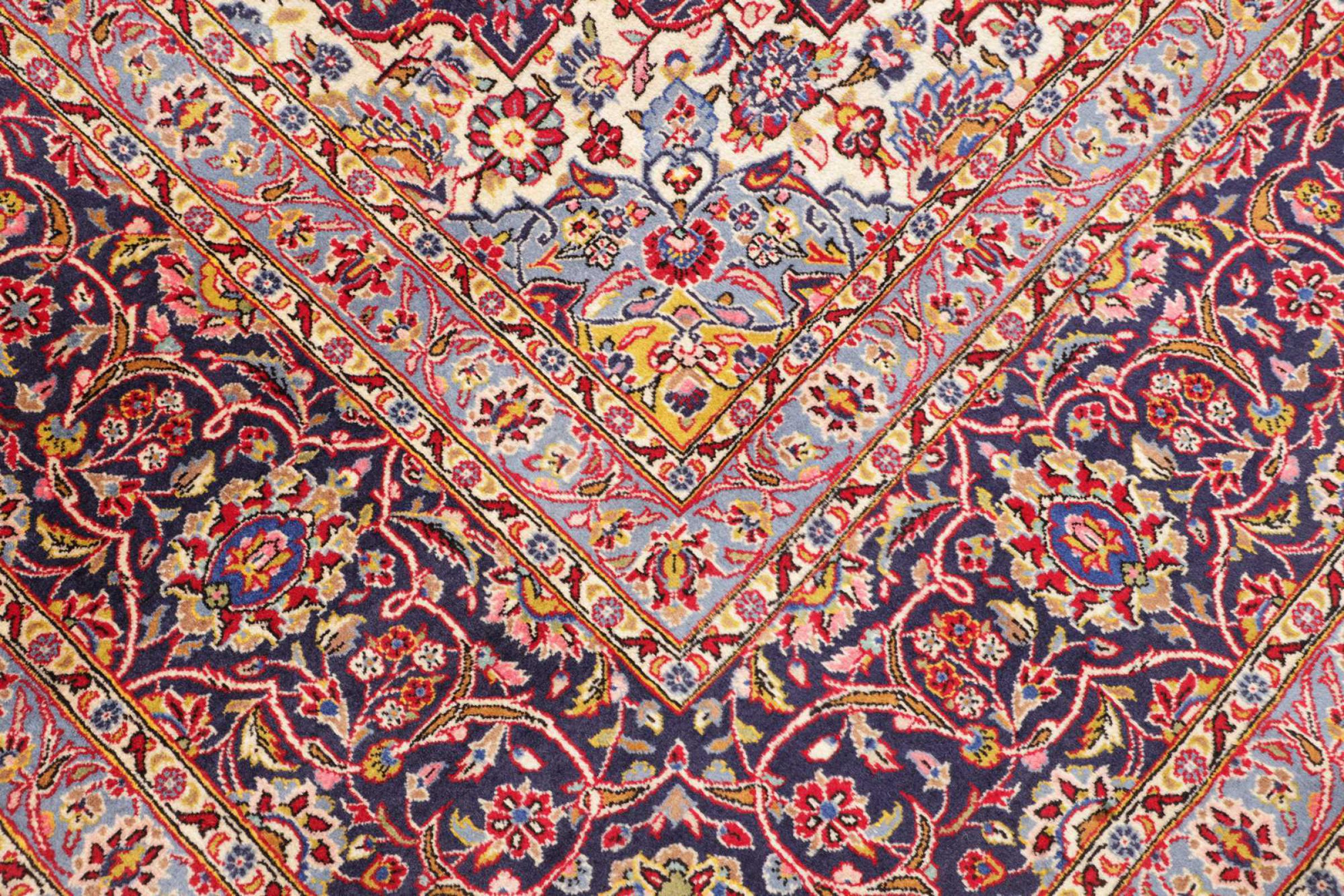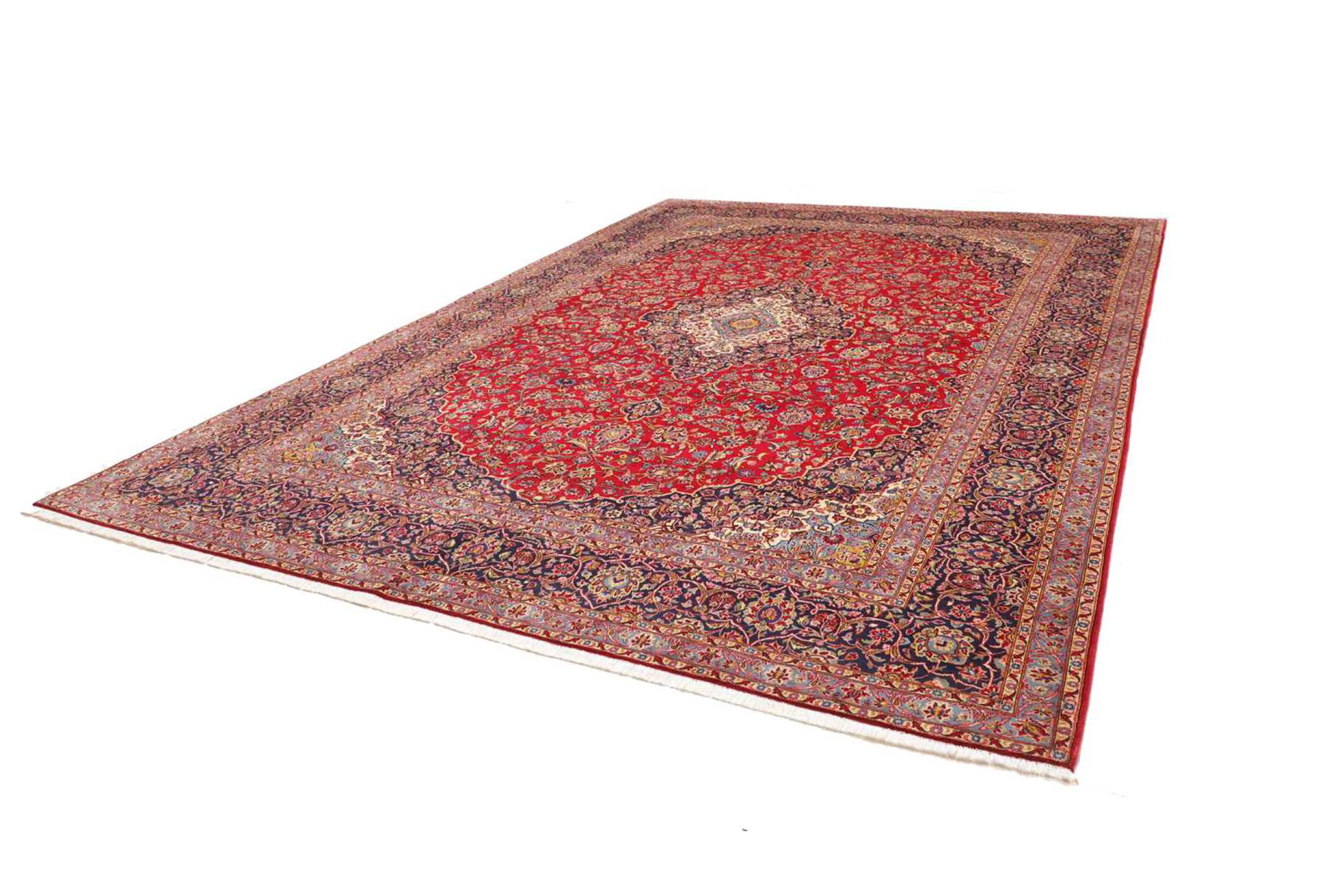 Dette tæppe fra Kashan (Keshan) er holdt i sit meget traditionelle og typiske persiske design med smukke ornamenter. Kashan tæpper er meget populære på grund af deres usædvanligt elegante design. Disse tæpper stammer fra Kashan, en by på den gamle Silkevej. Dette tæppe er blevet knyttet i hånden af højkvalitets fåreuld og vil være et unikt højdepunkt i dit hjem.