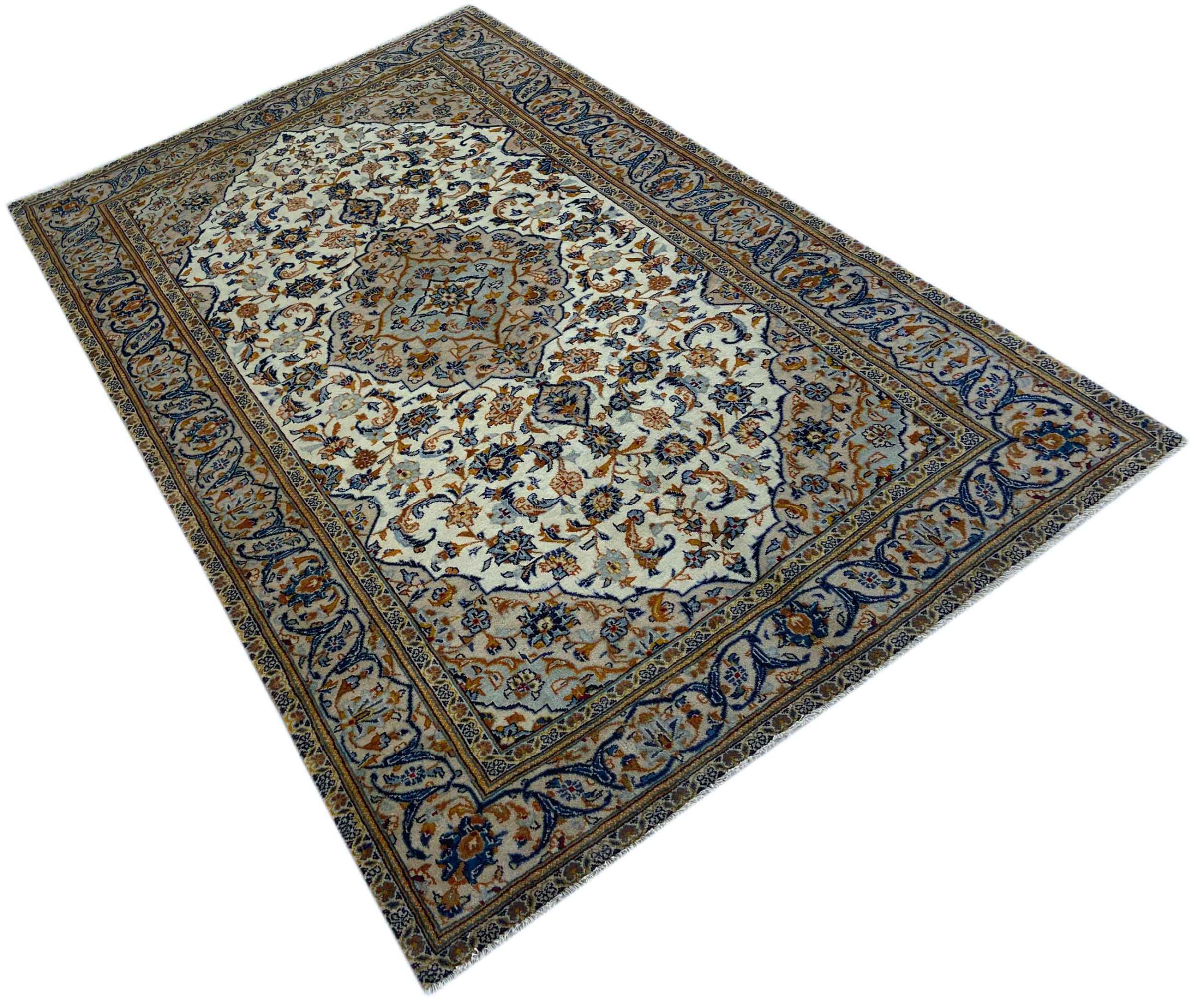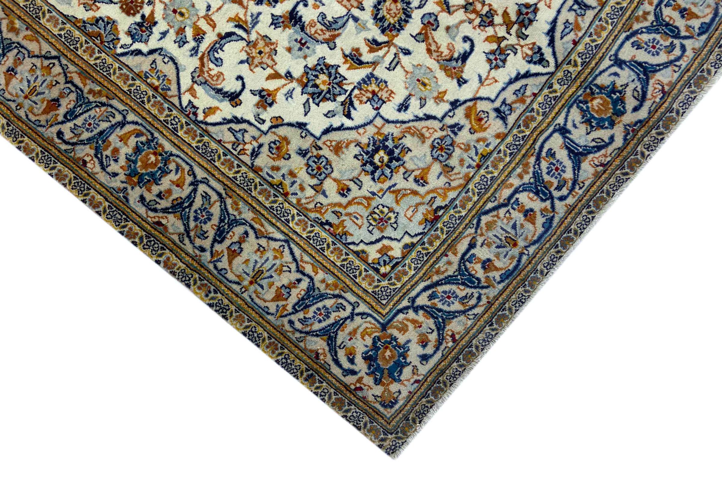Dette tæppe fra Kashan (Keshan) er holdt i sit meget traditionelle og typiske persiske design med smukke ornamenter. Kashan tæpper er meget populære på grund af deres usædvanligt elegante design. Disse tæpper stammer fra Kashan, en by på den gamle Silkevej. Dette tæppe er blevet knyttet i hånden af højkvalitets fåreuld og vil være et unikt højdepunkt i dit hjem.