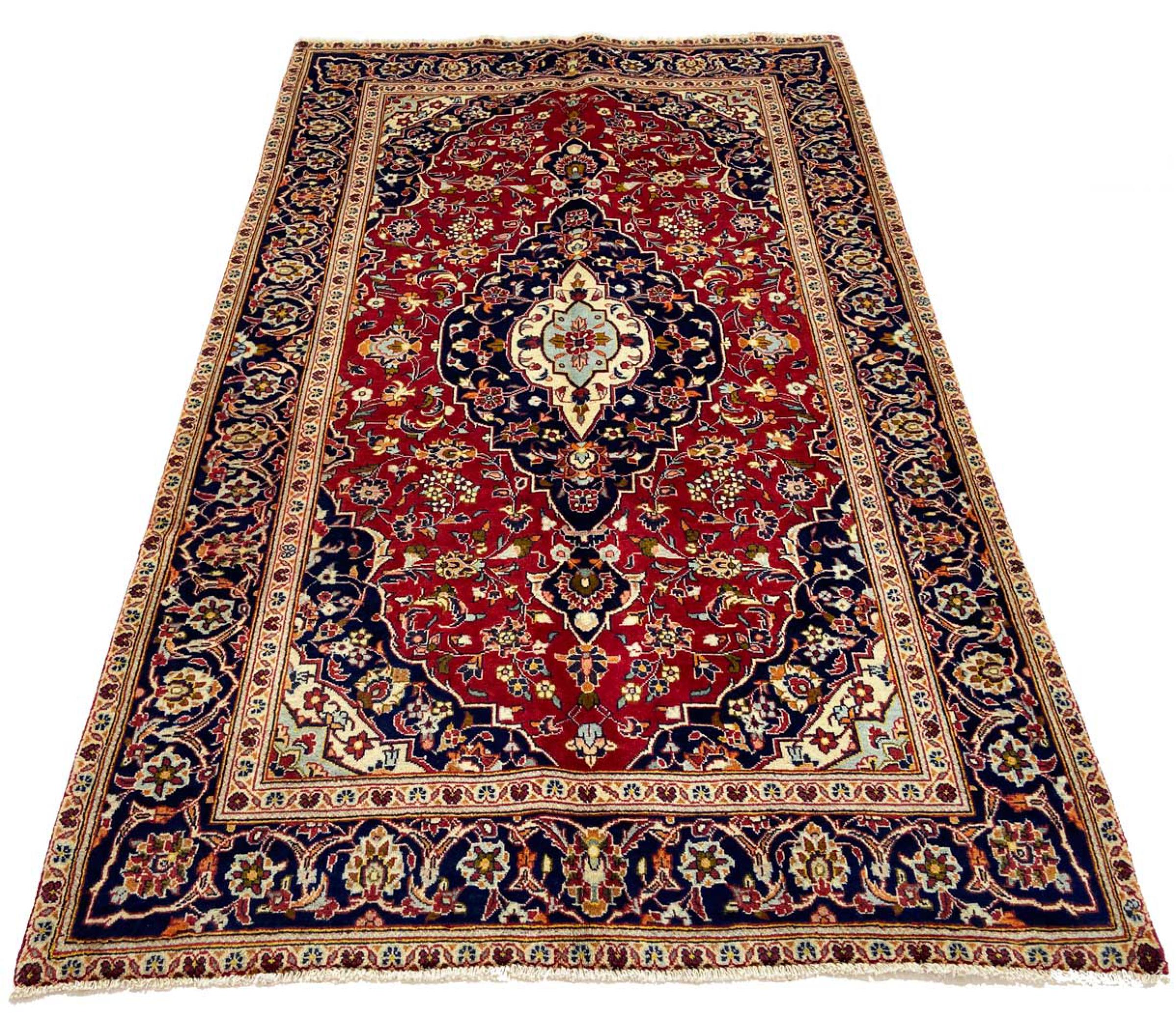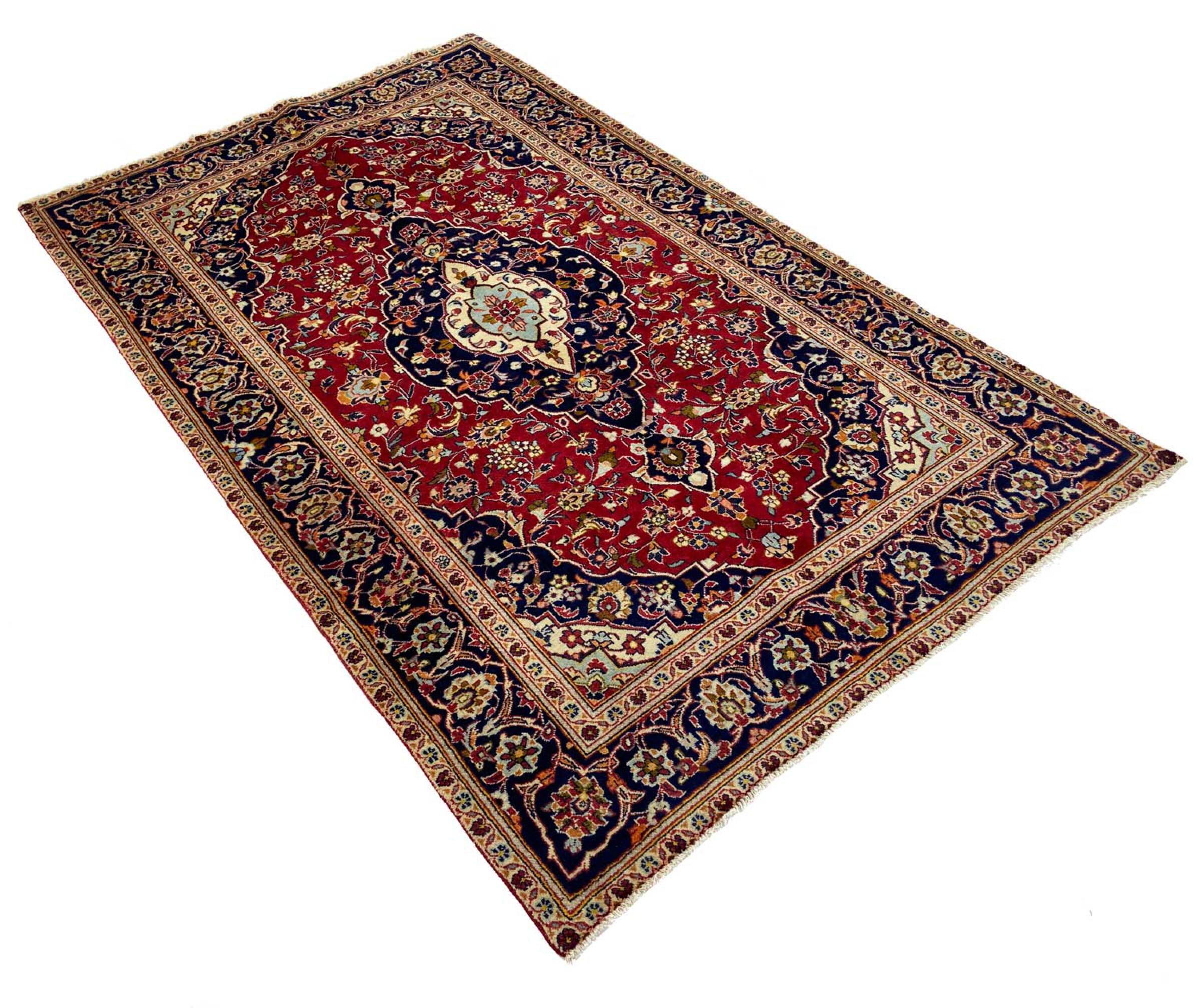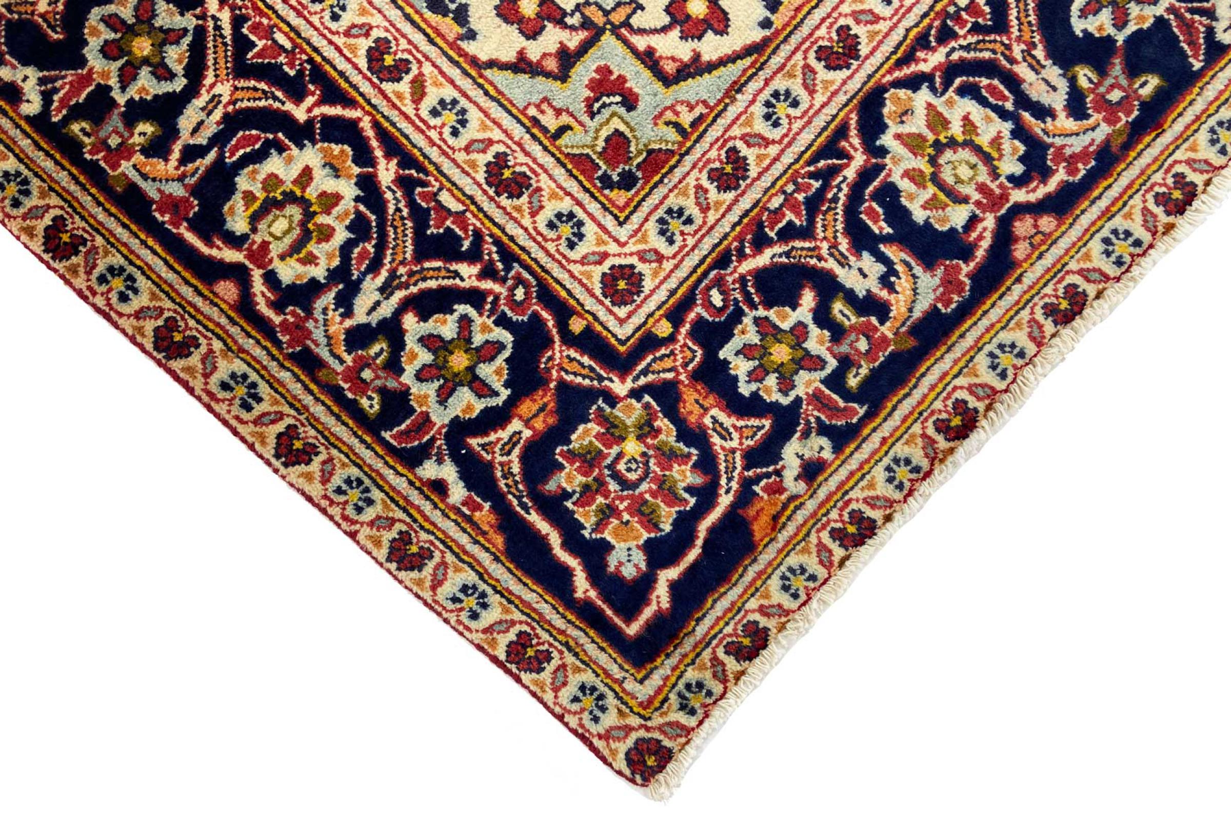 Dette tæppe fra Kashan (Keshan) er holdt i sit meget traditionelle og typiske persiske design med smukke ornamenter. Kashan tæpper er meget populære på grund af deres usædvanligt elegante design. Disse tæpper stammer fra Kashan, en by på den gamle Silkevej. Dette tæppe er blevet knyttet i hånden af højkvalitets fåreuld og vil være et unikt højdepunkt i dit hjem.