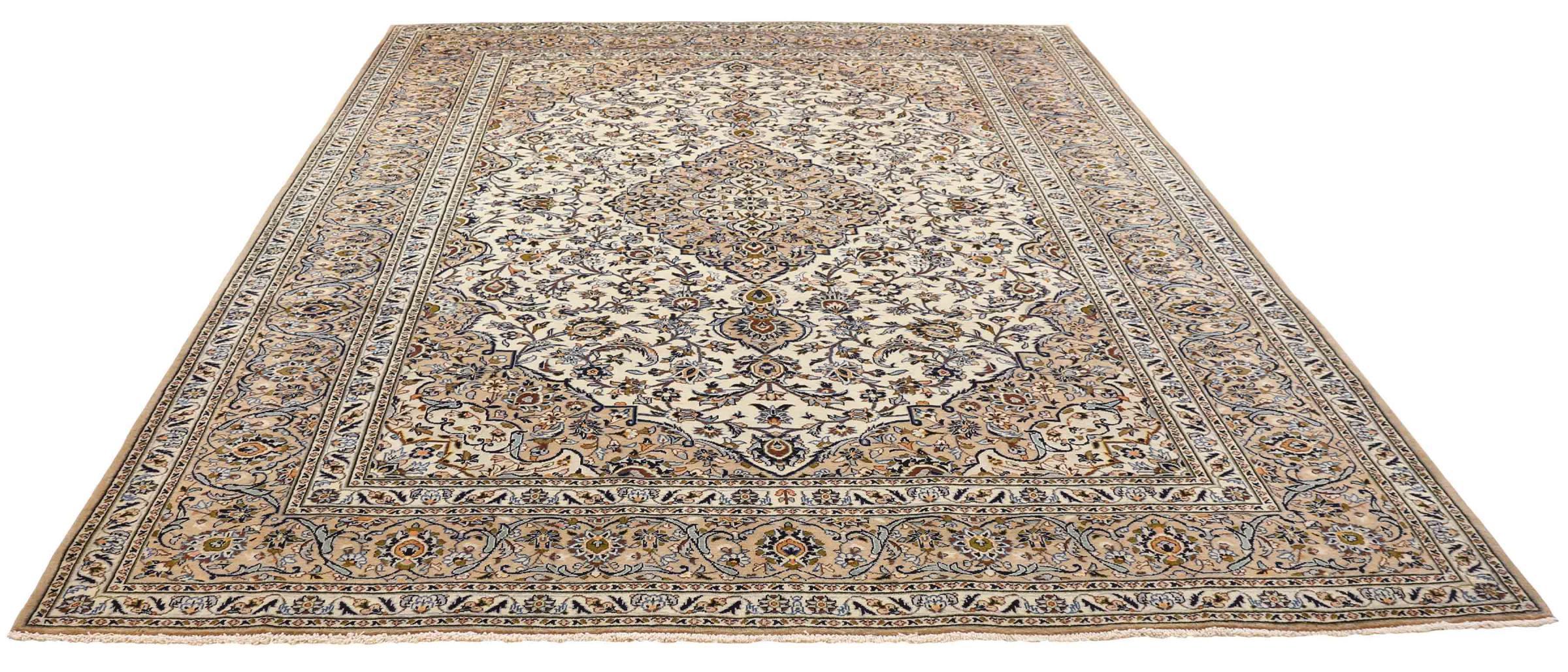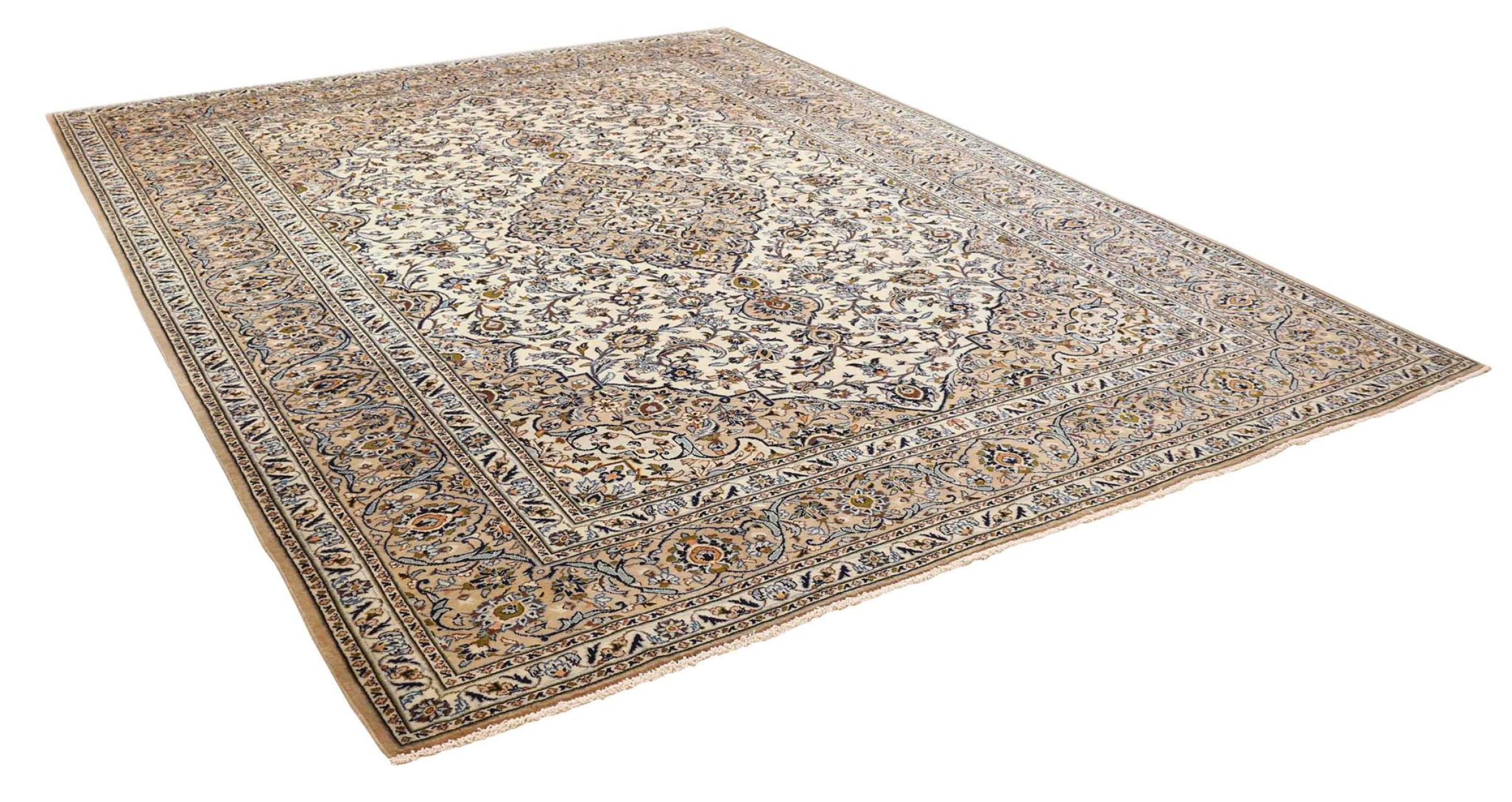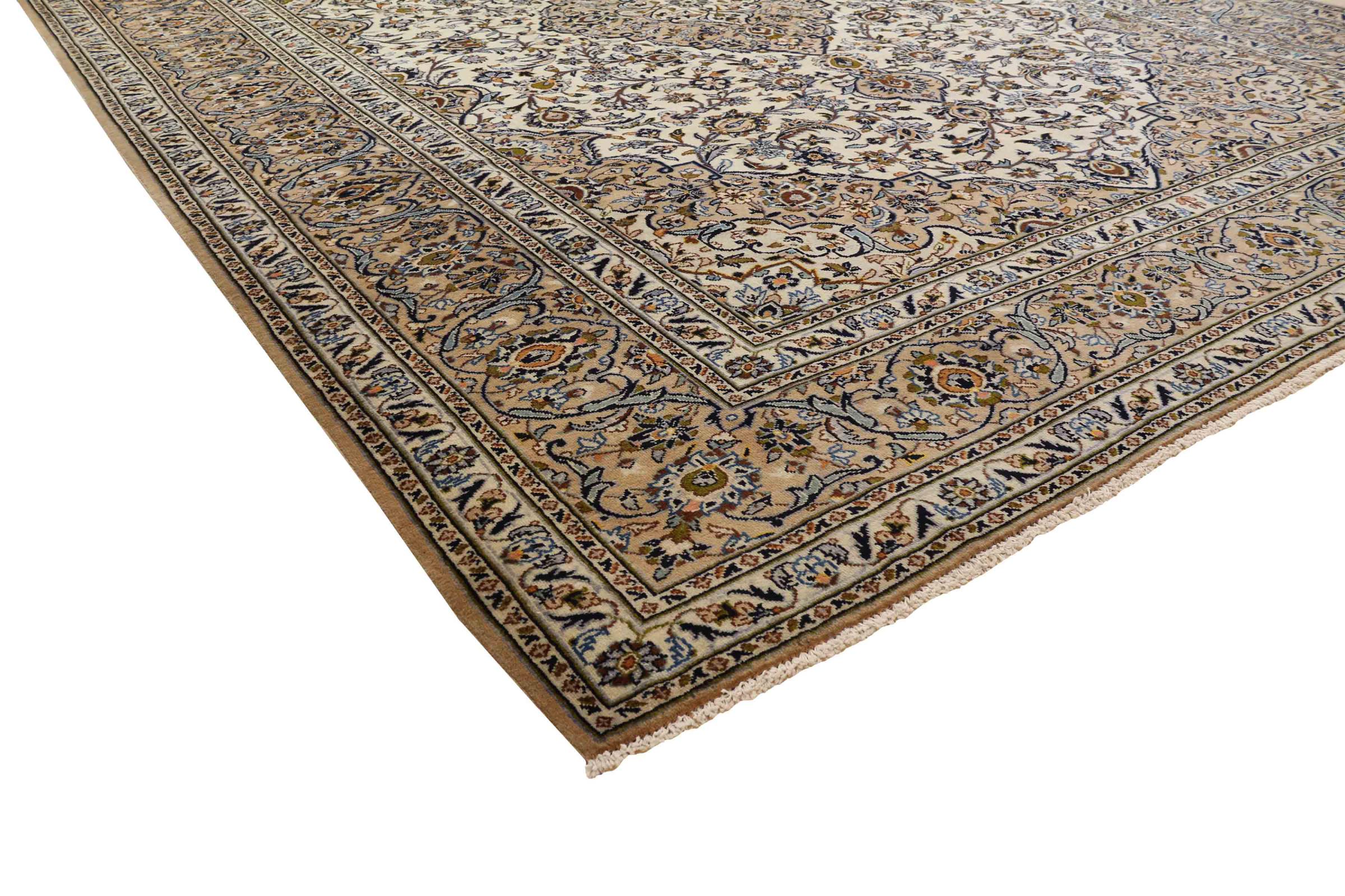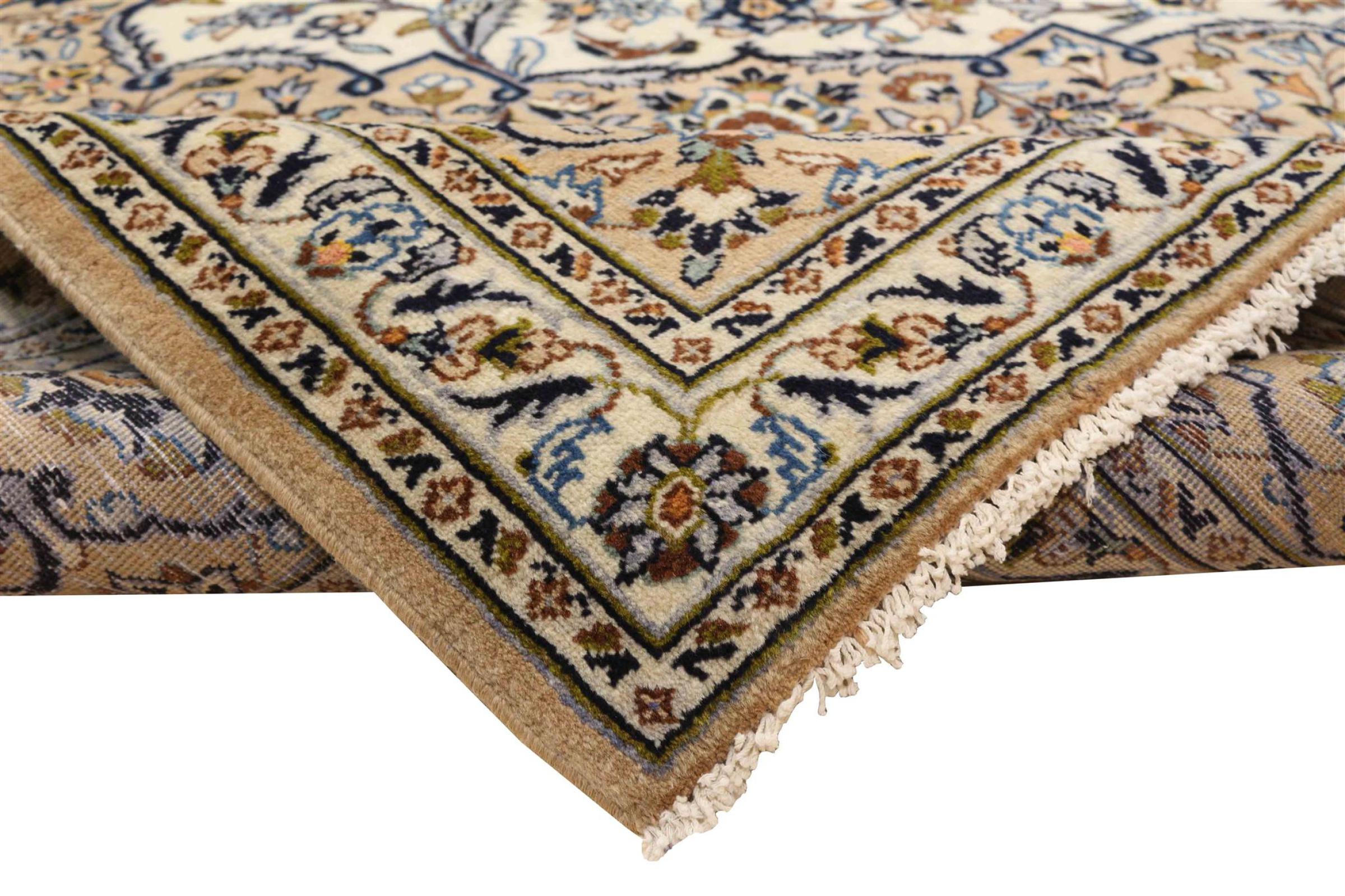 Dette tæppe fra Kashan (Keshan) er holdt i sit meget traditionelle og typiske persiske design med smukke ornamenter. Kashan tæpper er meget populære på grund af deres usædvanligt elegante design. Disse tæpper stammer fra Kashan, en by på den gamle Silkevej. Dette tæppe er blevet knyttet i hånden af højkvalitets fåreuld og vil være et unikt højdepunkt i dit hjem.
