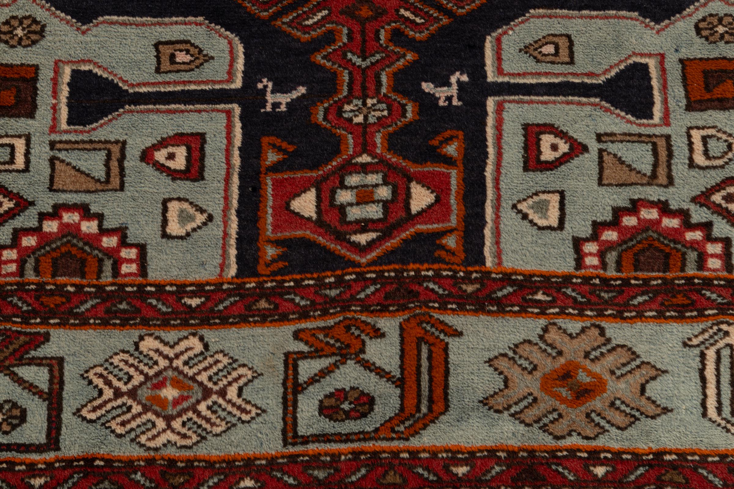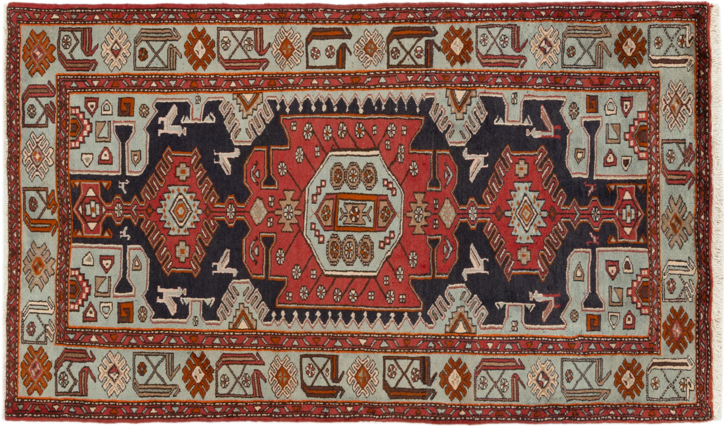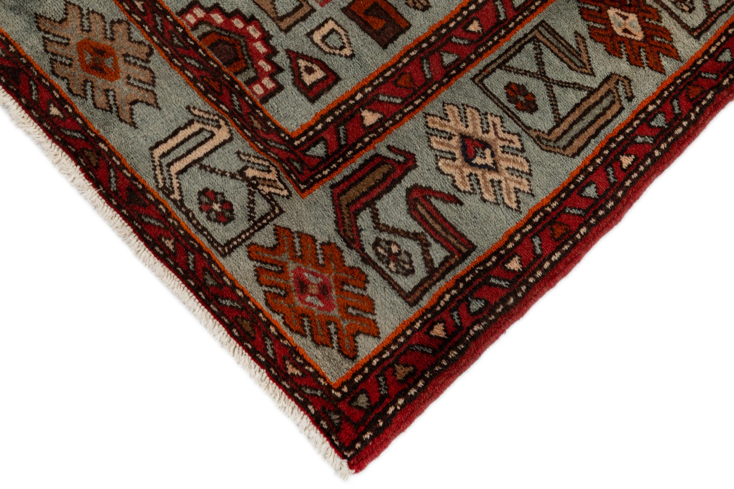 Dette er et ægte persisk tæppe fra Khamseh, en landsby i Hamadan-regionen. Det har de typiske farver og lineære mønstre fra et landsbytæppe. Derudover er dette tæppe skabt ved hjælp af traditionelle persiske knytteteknikker.
