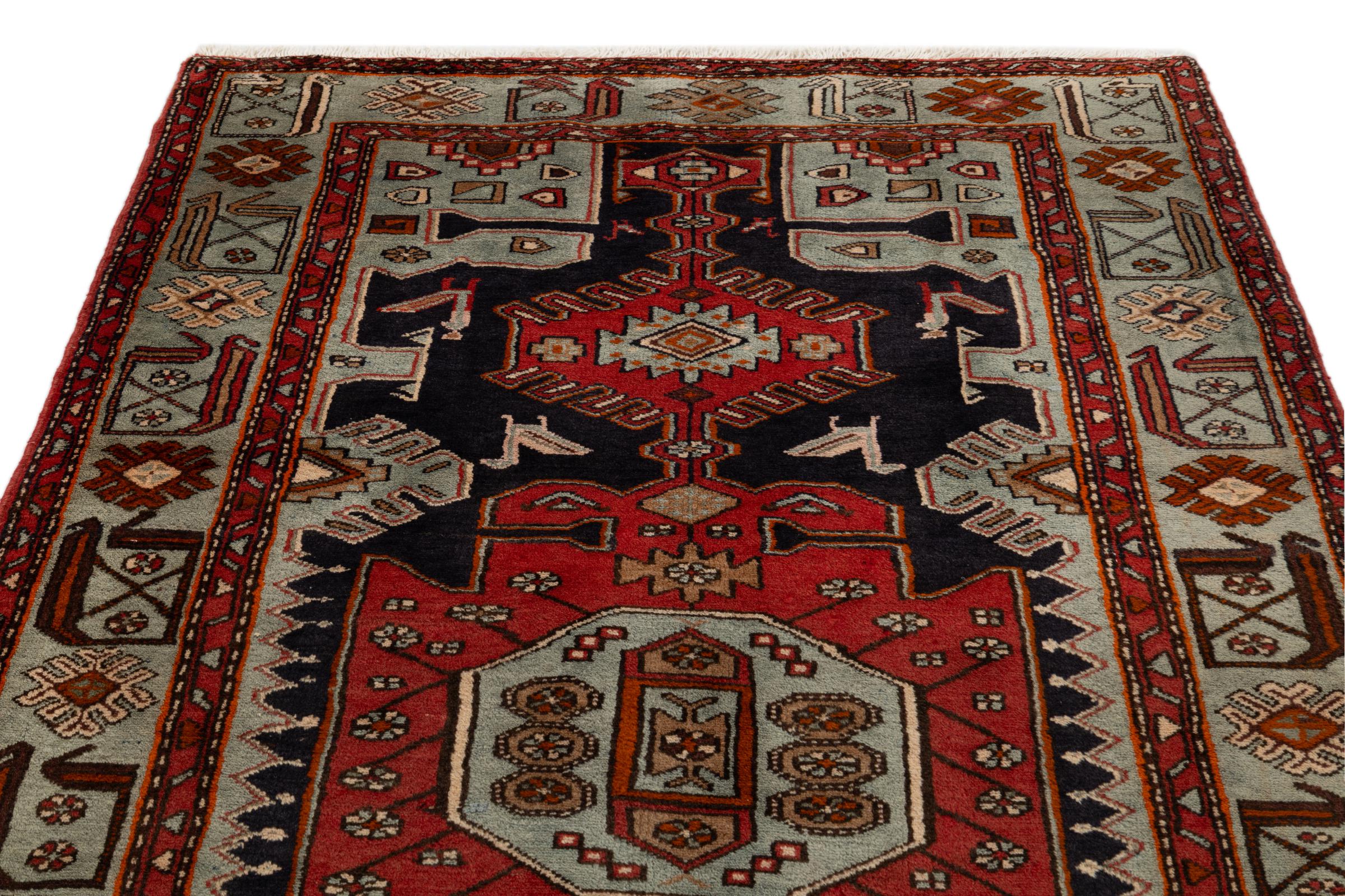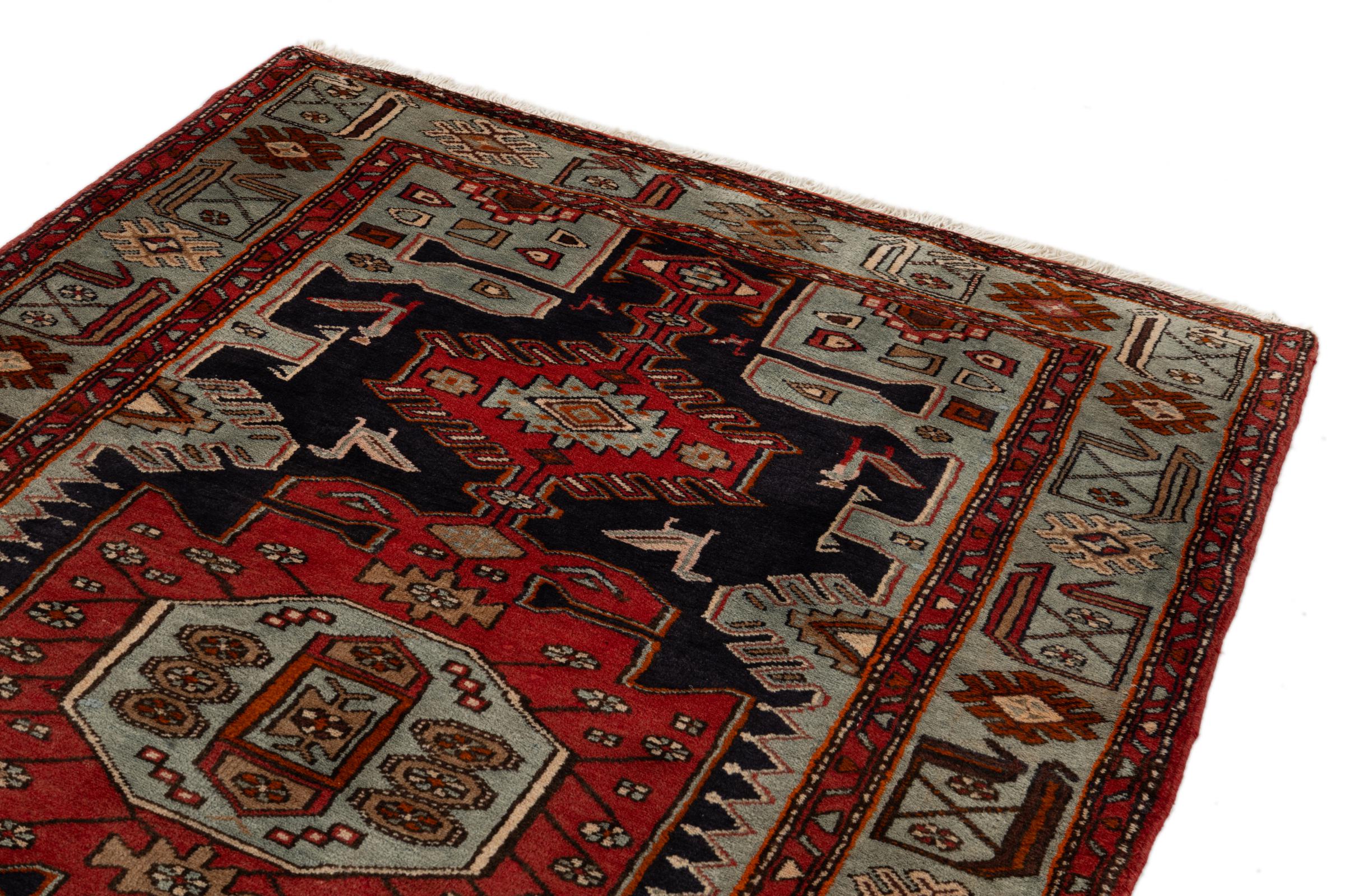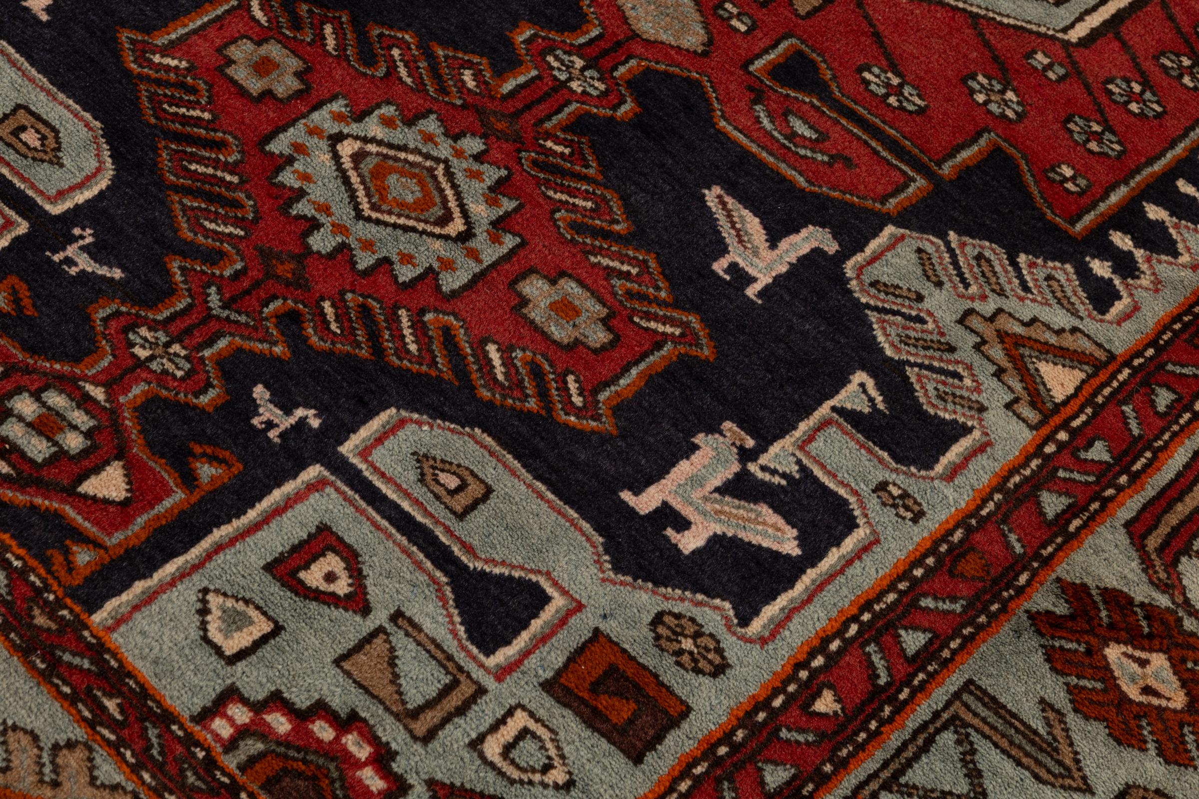 Dette er et ægte persisk tæppe fra Khamseh, en landsby i Hamadan-regionen. Det har de typiske farver og lineære mønstre fra et landsbytæppe. Derudover er dette tæppe skabt ved hjælp af traditionelle persiske knytteteknikker.