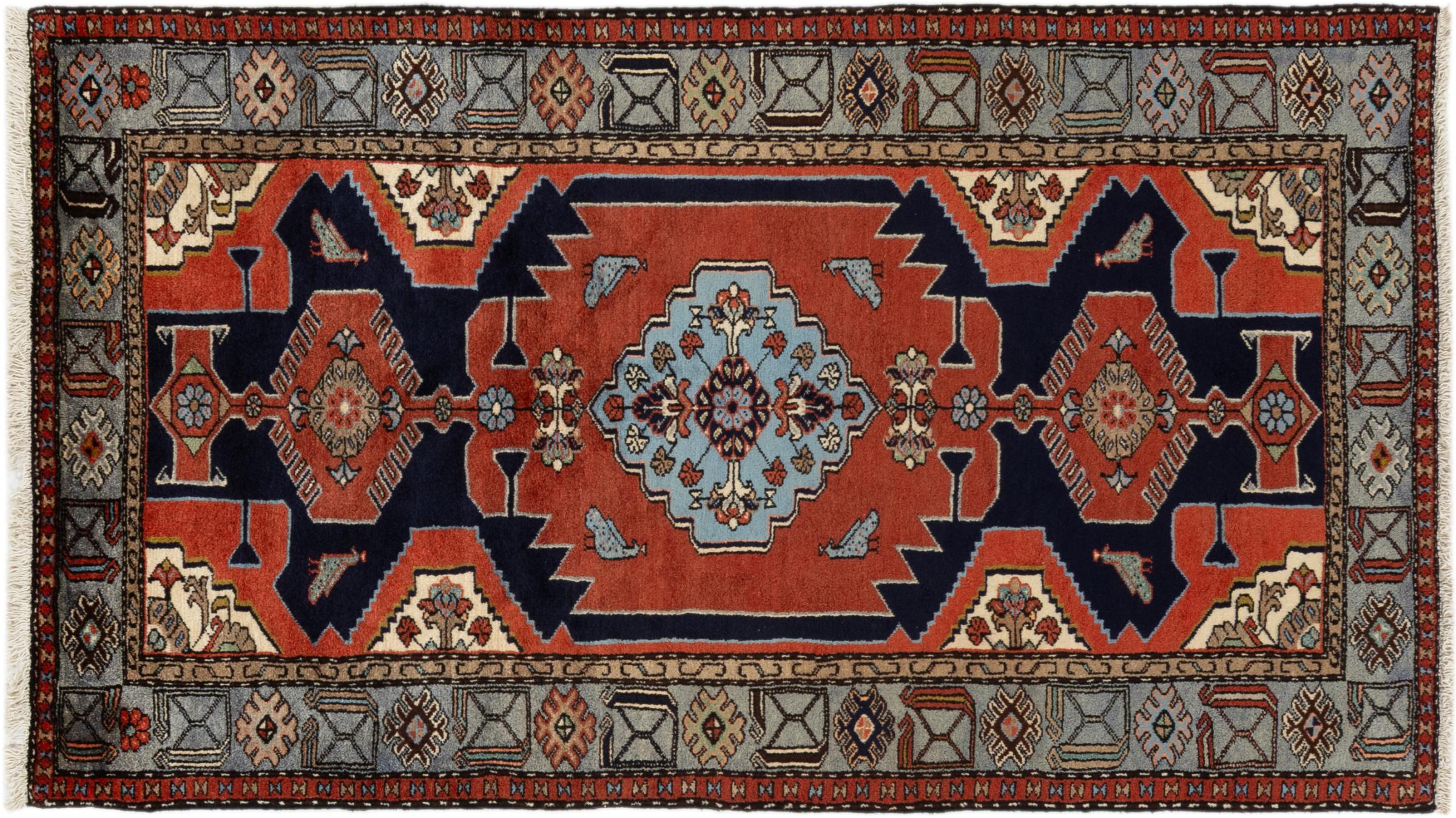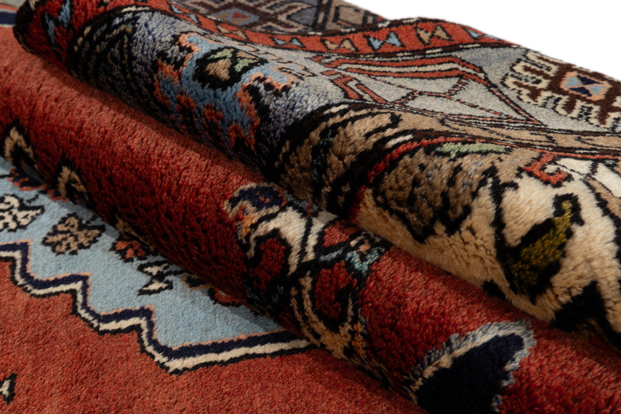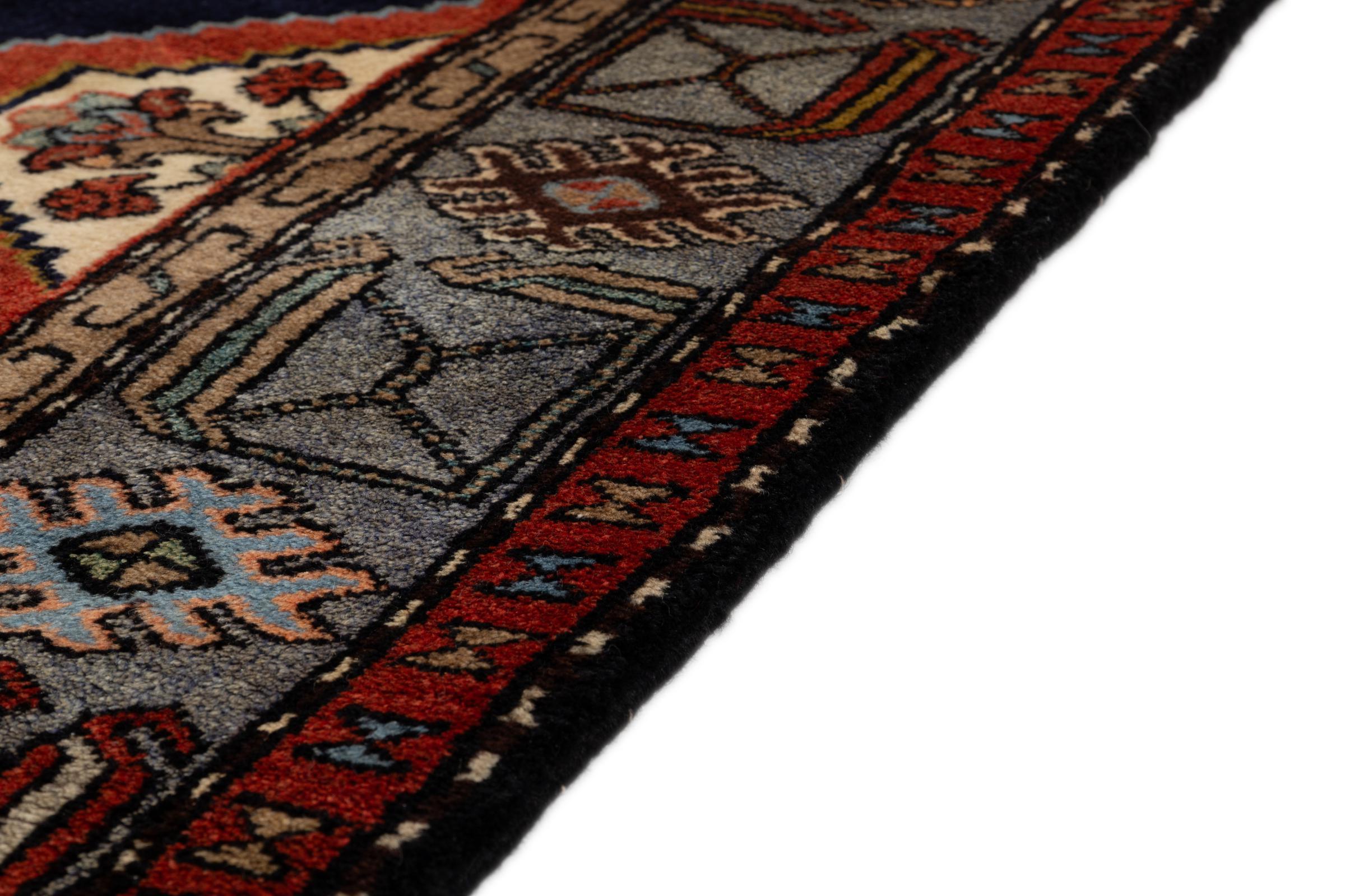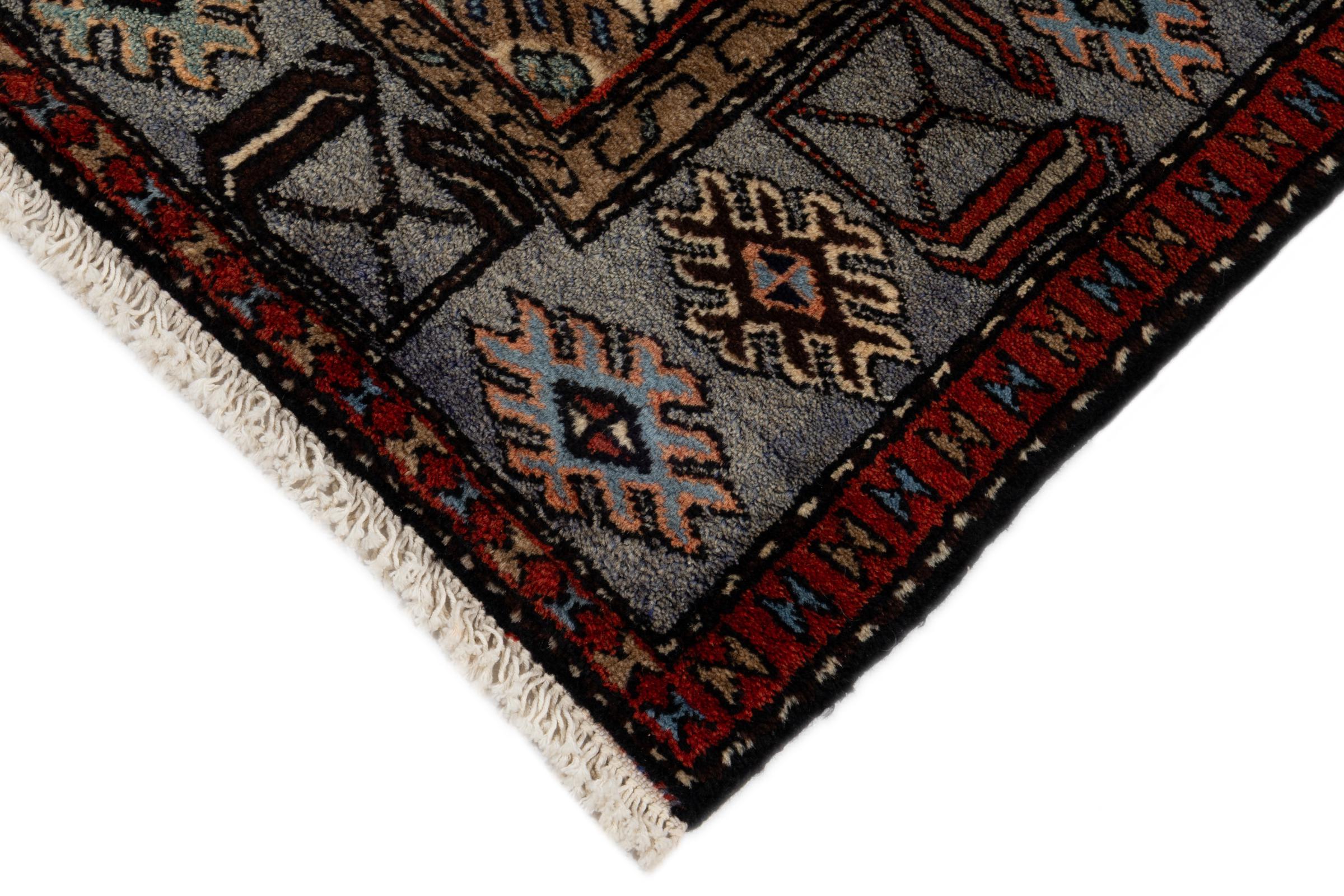 Dette er et ægte persisk tæppe fra Khamseh, en landsby i Hamadan-regionen. Det har de typiske farver og lineære mønstre fra et landsbytæppe. Derudover er dette tæppe skabt ved hjælp af traditionelle persiske knytteteknikker.
