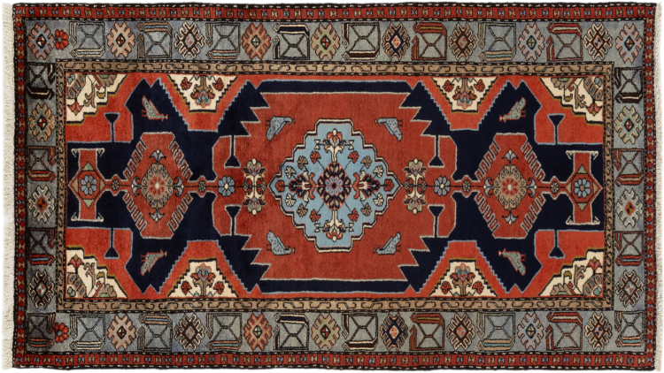 Dette tæppe hører til landsby- og nomadetæpper fra Iran, tidligere Persien. Denne type tæppe er håndknyttet i små byer og landsbyer i den gamle tradition. Nomader fremstiller også persiske tæpper under den åbne himmel. Tæpperne er knudt helt fra hovedet uden en skabelon. De er kendetegnet ved klassiske ornamenter, der er opstillet i lineære og geometriske mønstre. Takket være deres kulturelle og traditionelle oprindelse har disse tæpper en unik karakter, der udgør det gamle Persien.