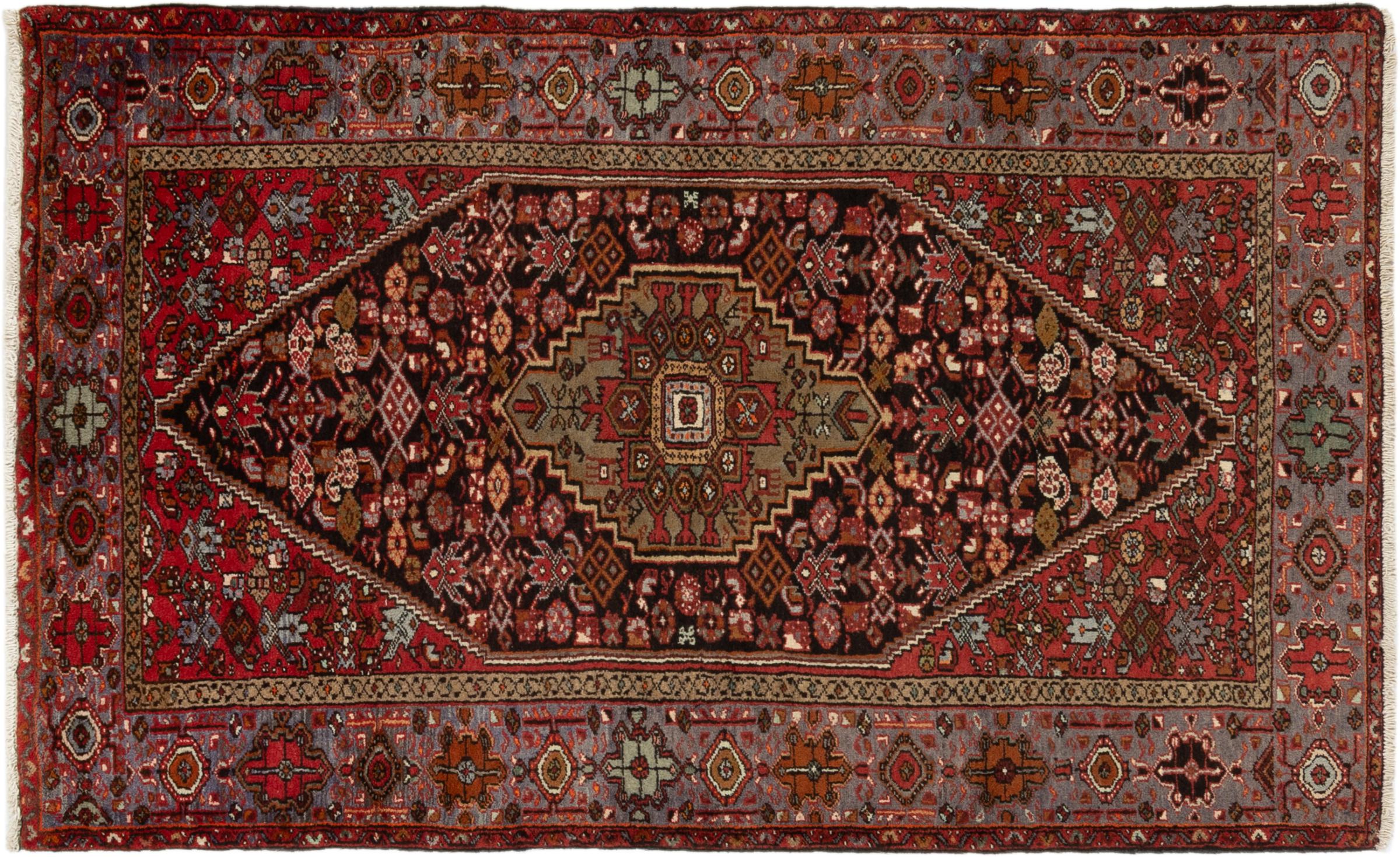 Dette er et ægte persisk tæppe fra Khamseh, en landsby i Hamadan-regionen. Det har de typiske farver og lineære mønstre fra et landsbytæppe. Derudover er dette tæppe skabt ved hjælp af traditionelle persiske knytteteknikker.