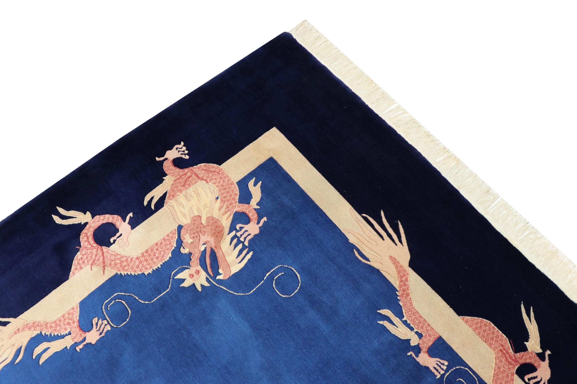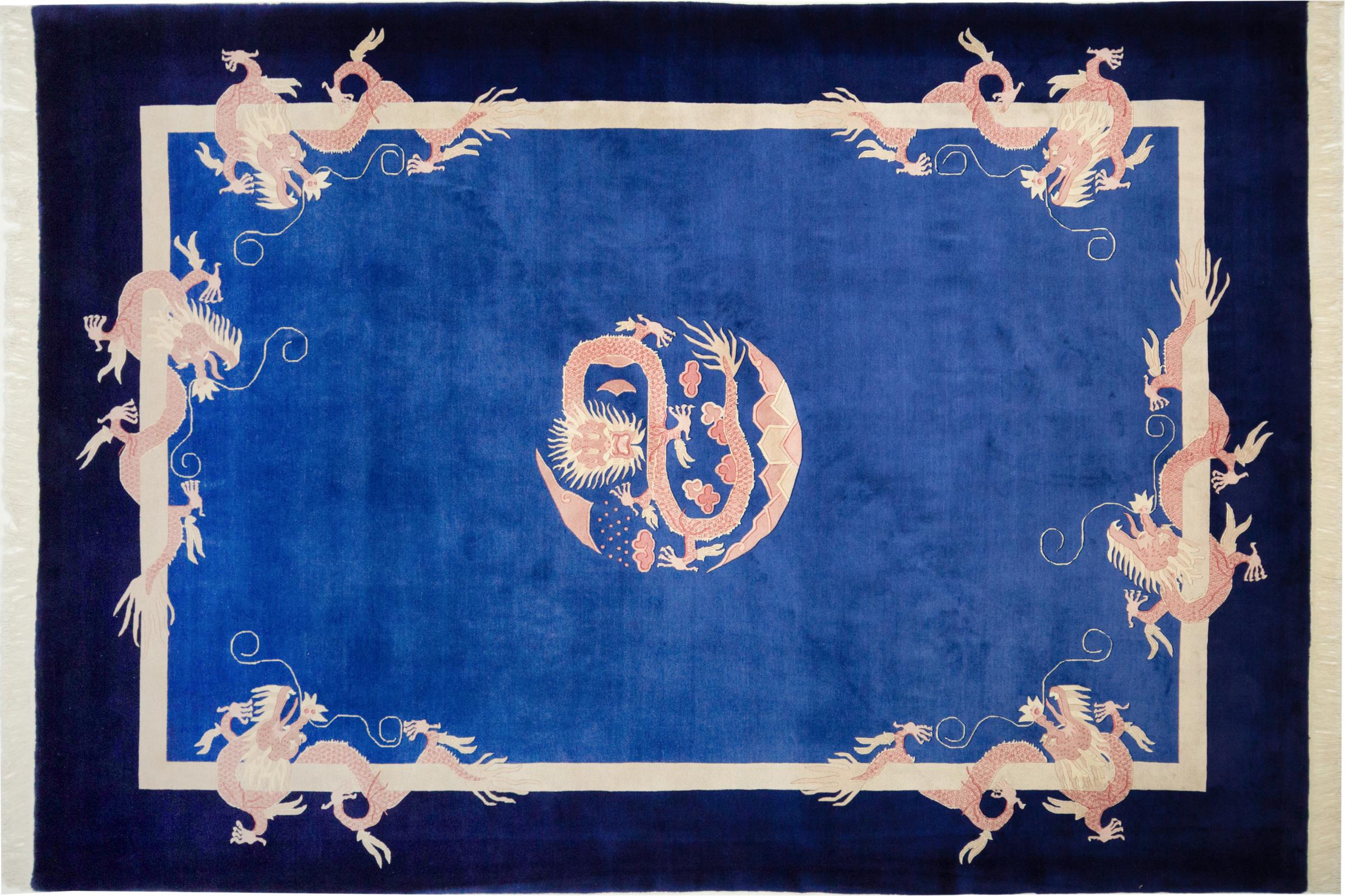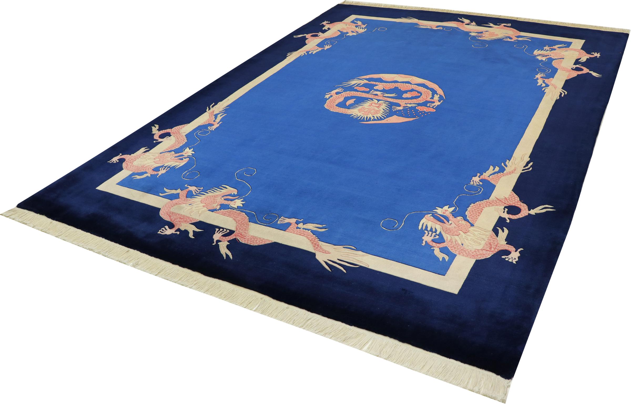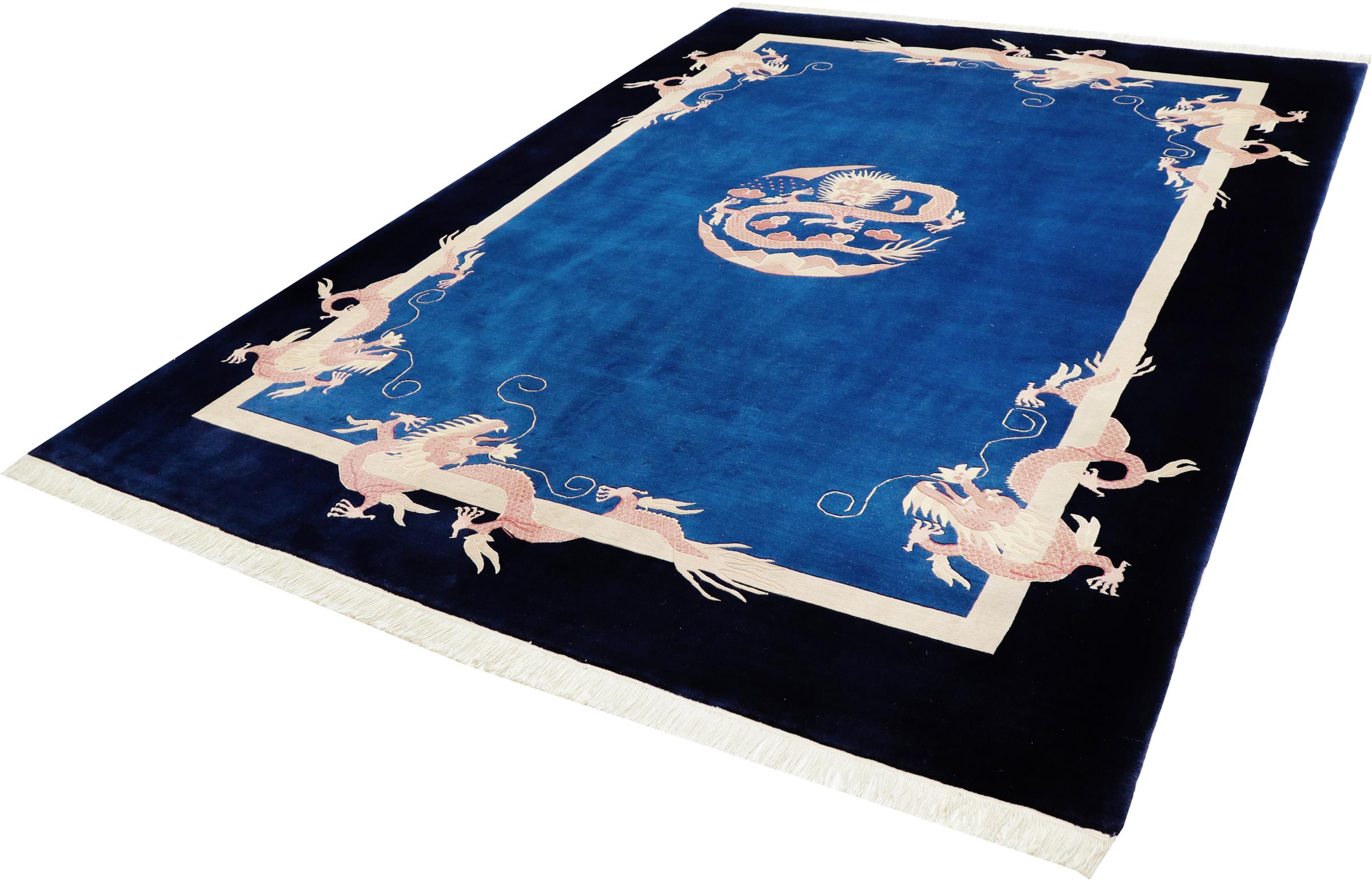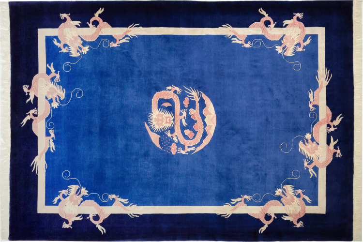 Dette tæppe er håndknyttet af uld i Kina. Kina har en århundreder gammel kultur for tæppevævning. Traditionelt blev der vævet motiver, som også kan findes på kinesisk porcelæn. Det drejer sig om typiske planter, dyr og i sjældne tilfælde drager. Nu væves der også persiske ornamenter.