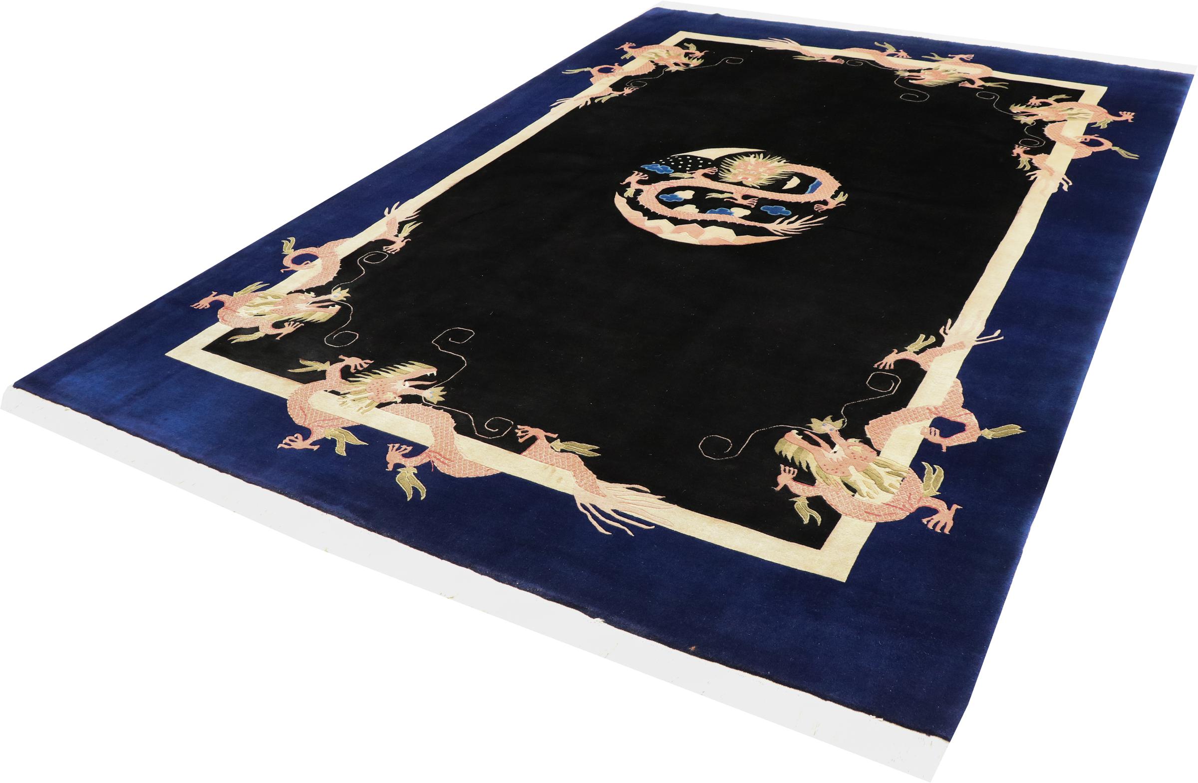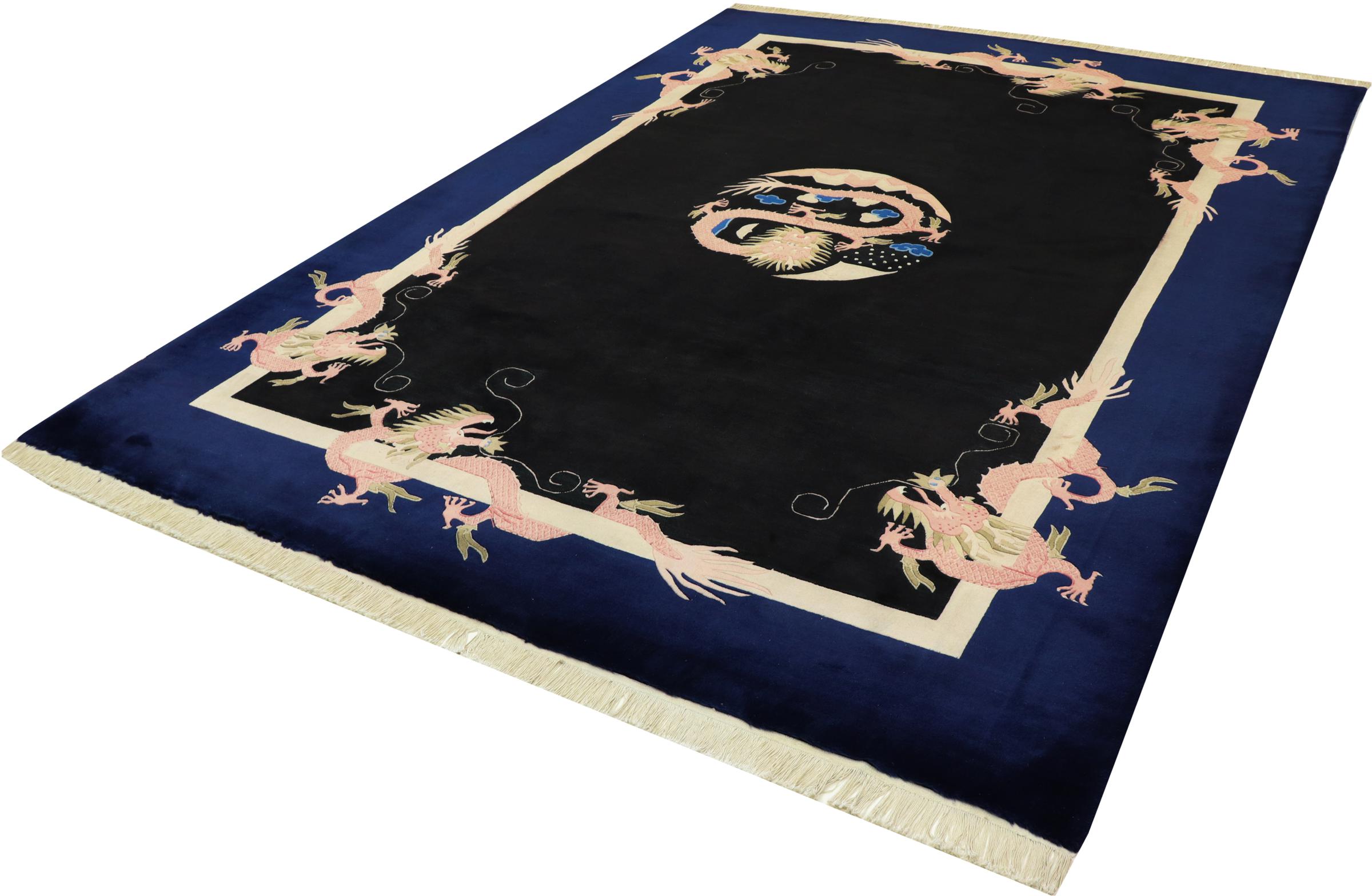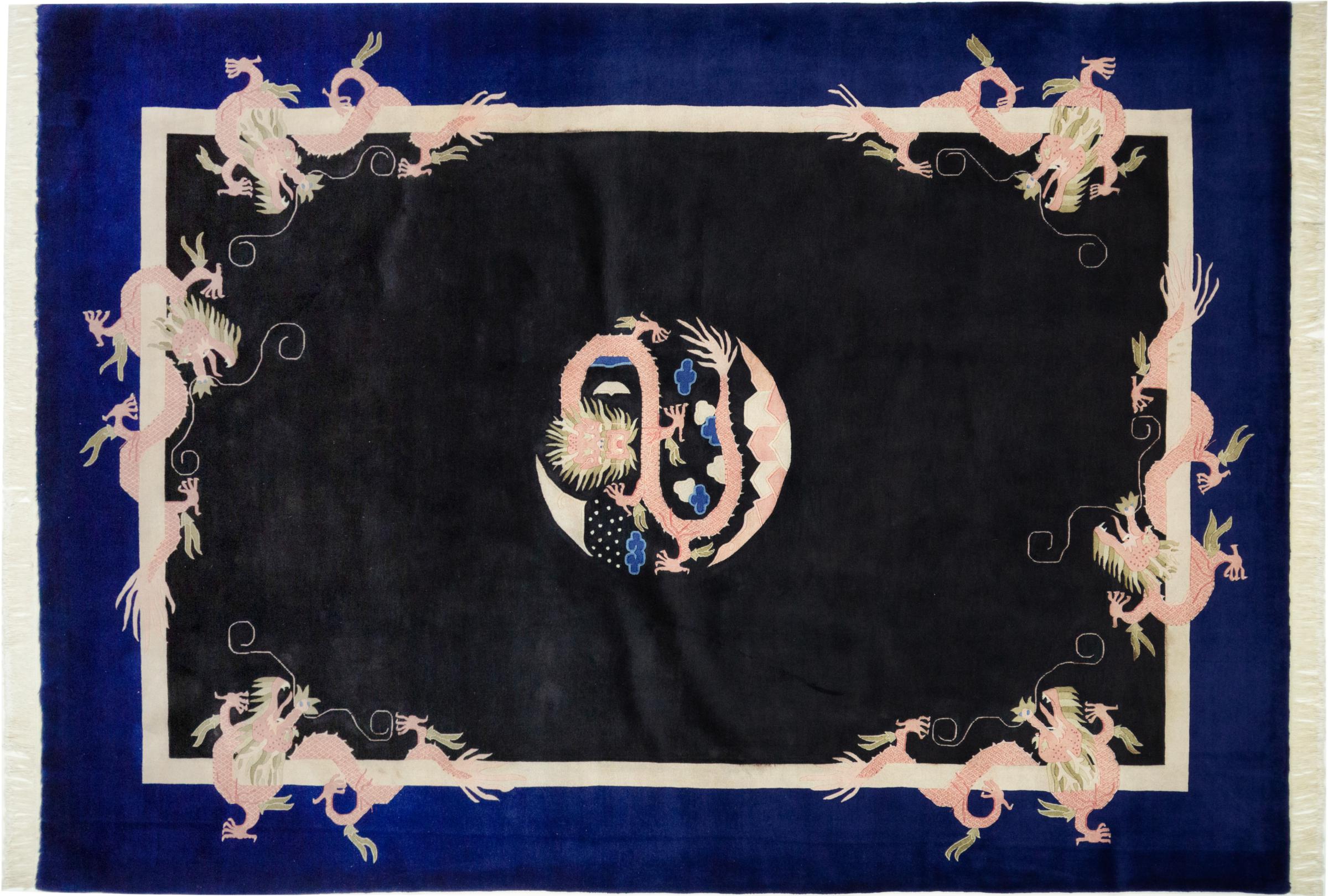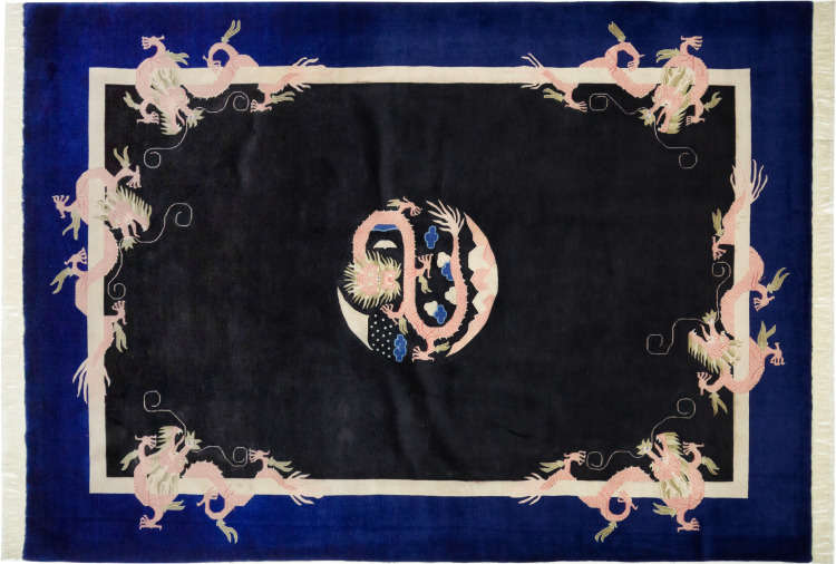 Dette tæppe er håndknyttet af uld i Kina. Kina har en århundreder gammel kultur for tæppevævning. Traditionelt blev der vævet motiver, som også kan findes på kinesisk porcelæn. Det drejer sig om typiske planter, dyr og i sjældne tilfælde drager. Nu væves der også persiske ornamenter.