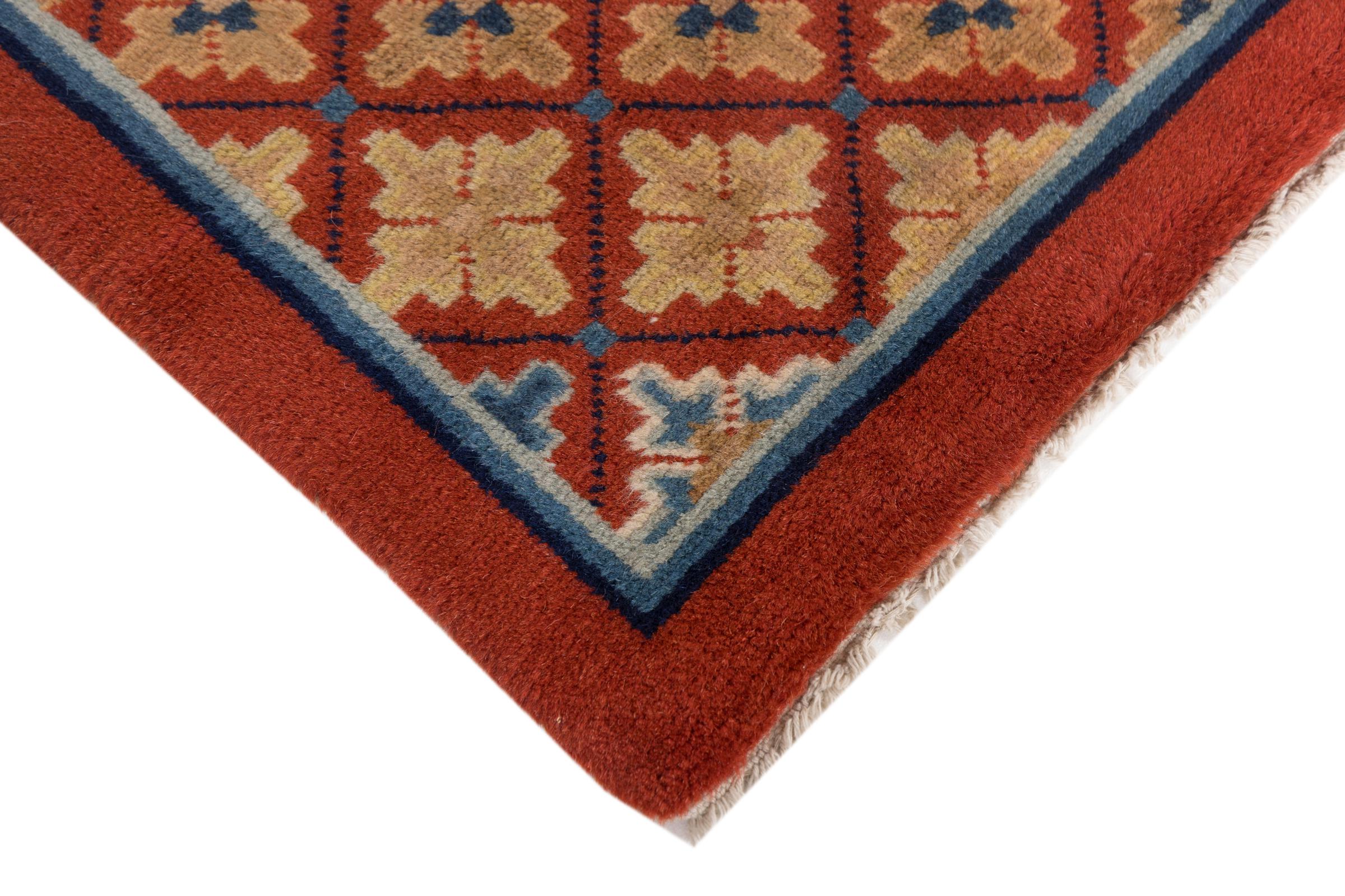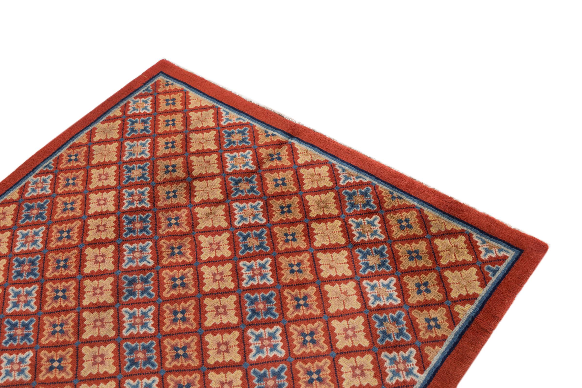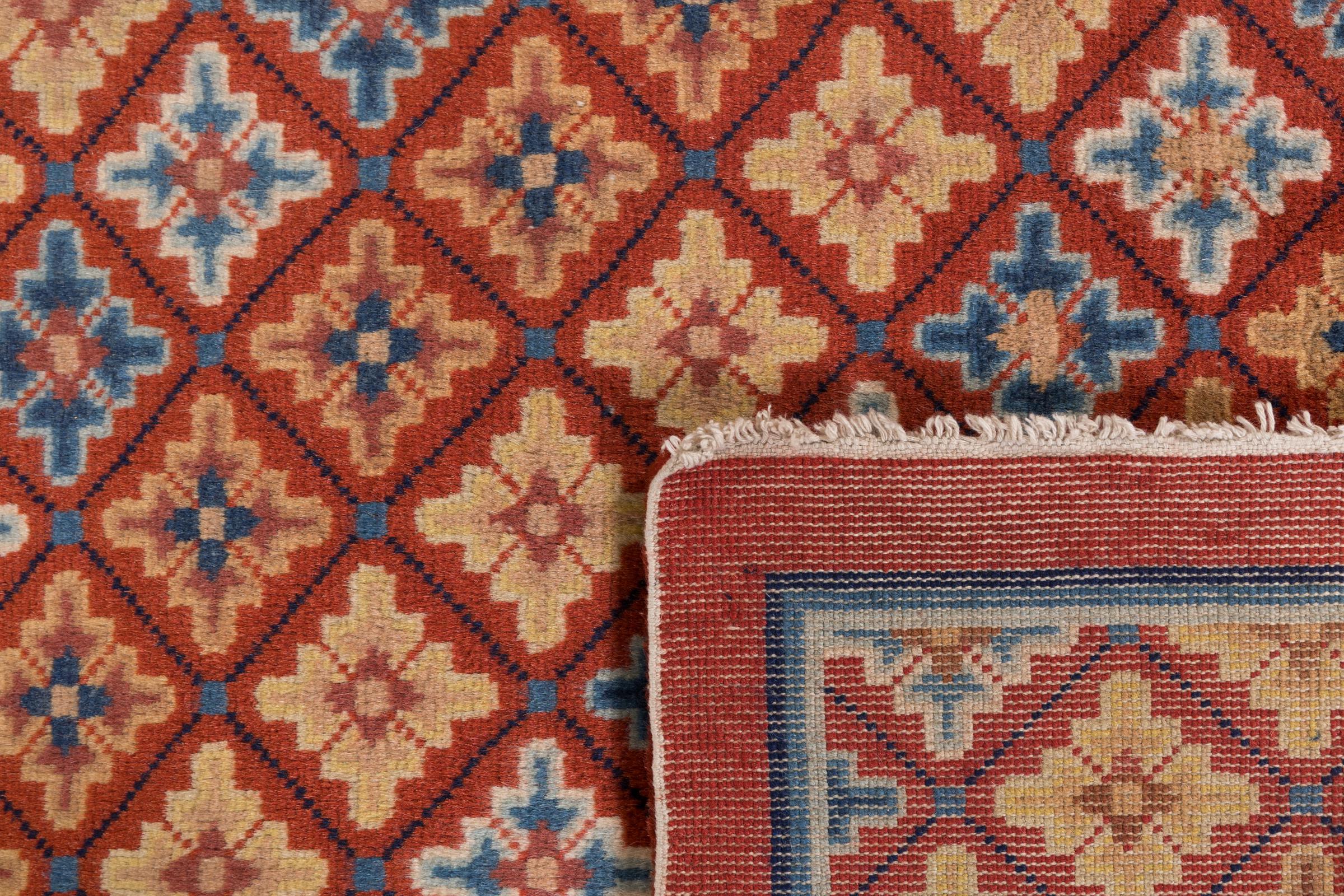 Dette antikke tæppe fra Kina er håndknyttet og lever op til kravene fra selv de sande kendere af kinesisk tæppekultur. Den høje kvalitet, uldgarnet og designet taler alt sammen for at købe dette tæppe. Det typiske kinesiske design i disse antikke tæpper er blevet sjældent i dag.