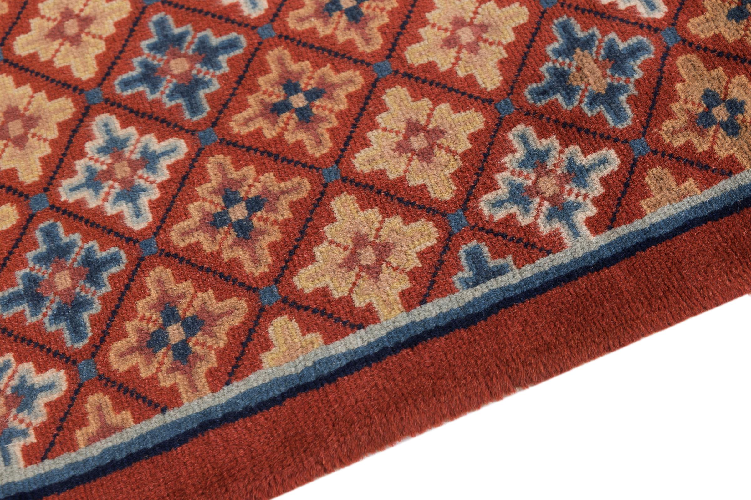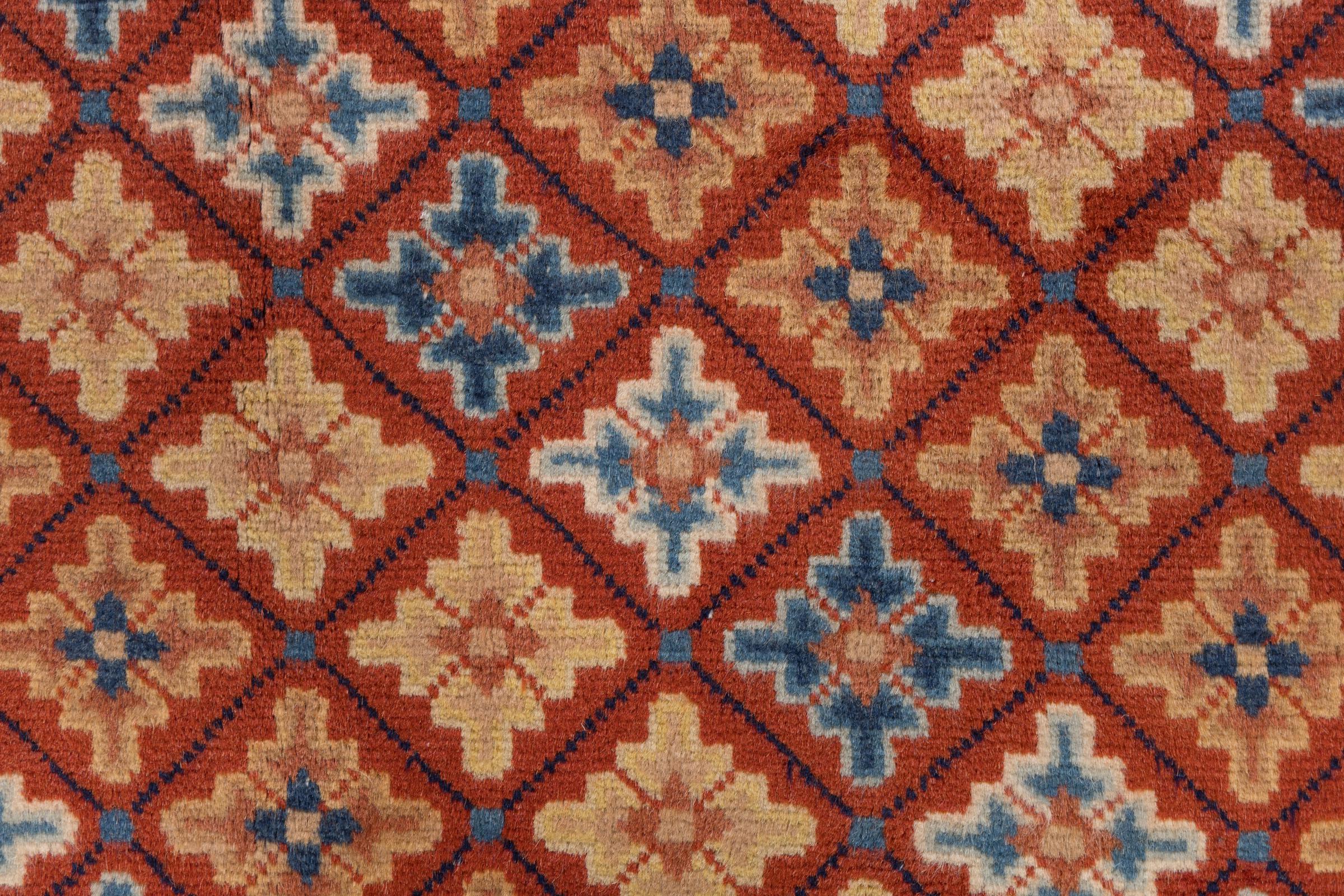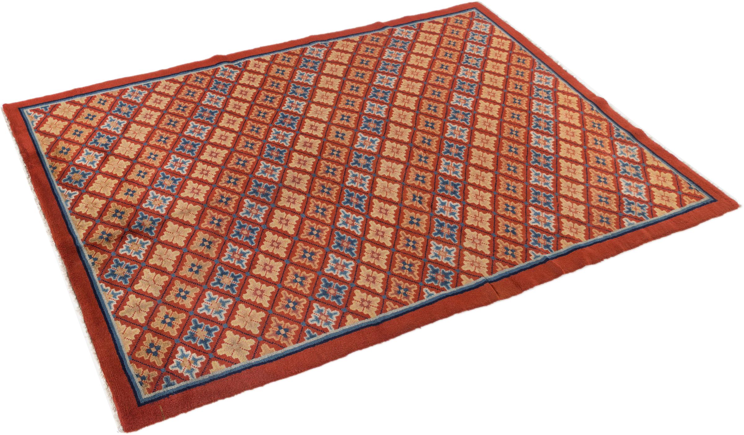 Dette antikke tæppe fra Kina er håndknyttet og lever op til kravene fra selv de sande kendere af kinesisk tæppekultur. Den høje kvalitet, uldgarnet og designet taler alt sammen for at købe dette tæppe. Det typiske kinesiske design i disse antikke tæpper er blevet sjældent i dag.