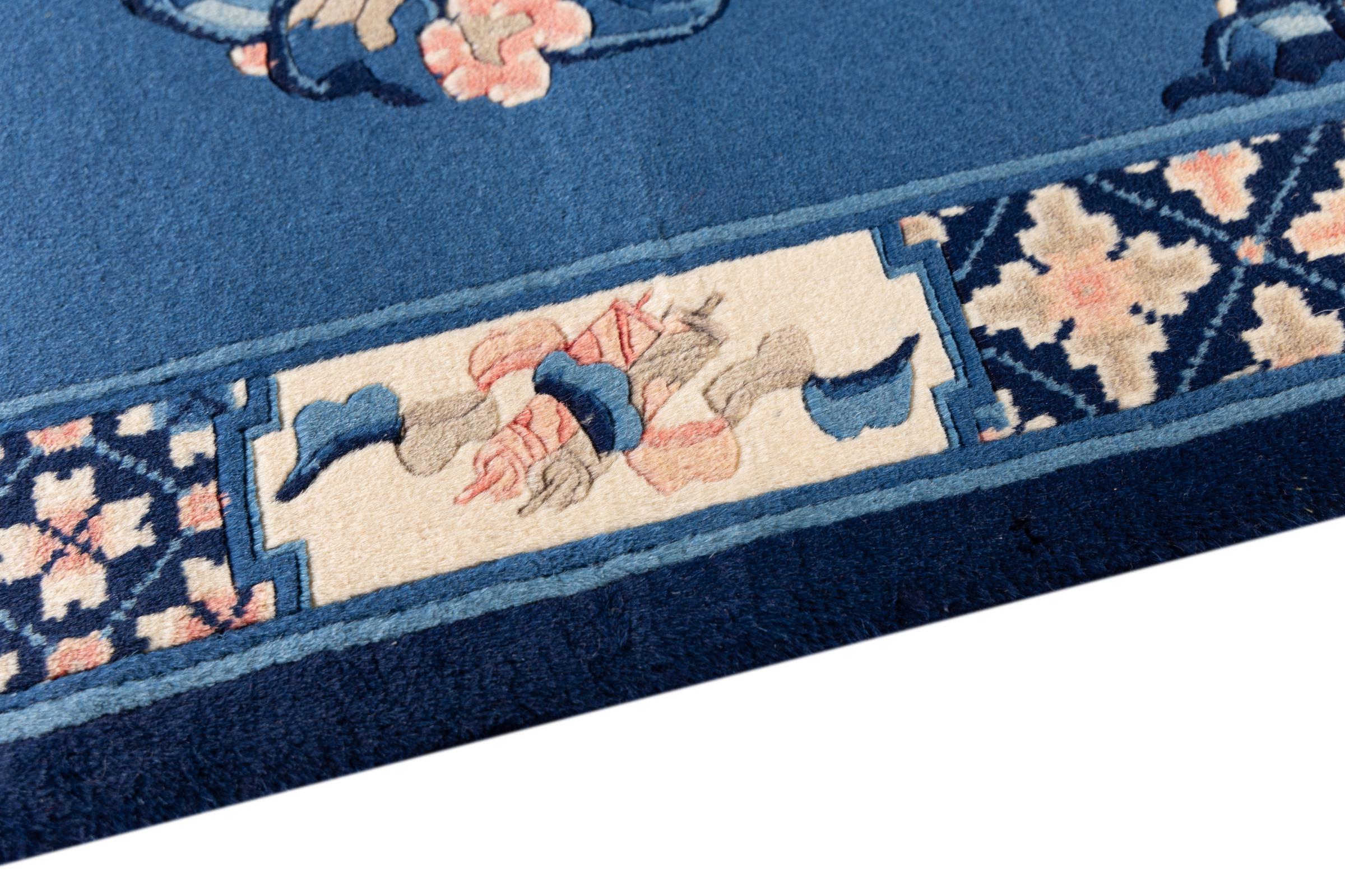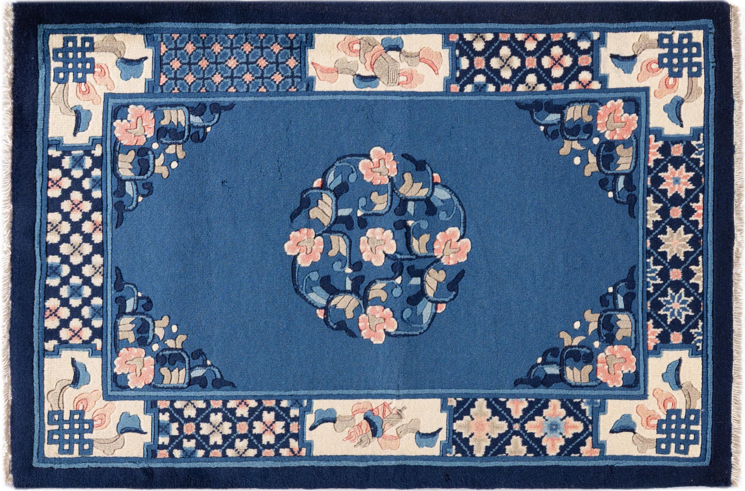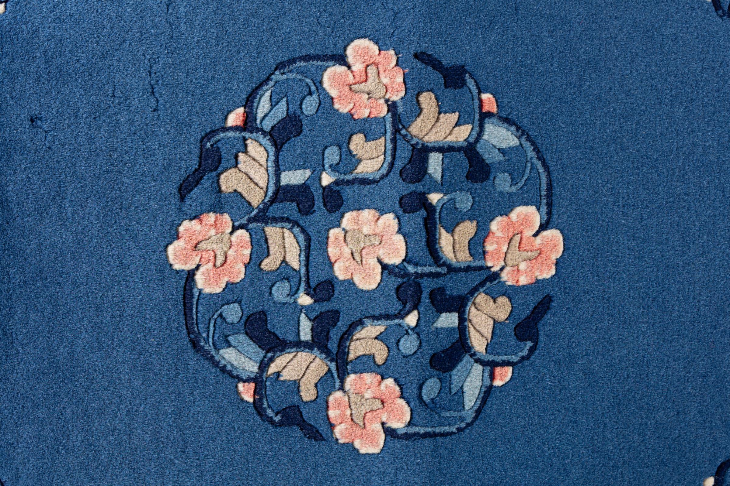 Dette tæppe er håndknyttet af uld i Kina. Kina har en århundreder gammel kultur for tæppevævning. Traditionelt blev der vævet motiver, som også kan findes på kinesisk porcelæn. Det drejer sig om typiske planter, dyr og i sjældne tilfælde drager. Nu væves der også persiske ornamenter.