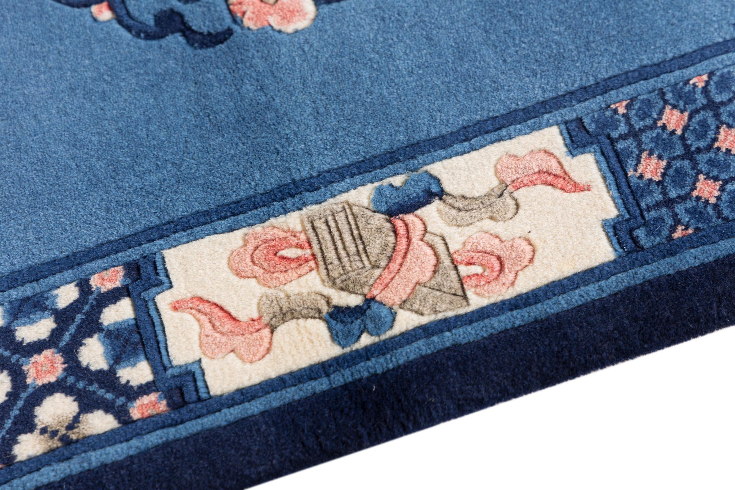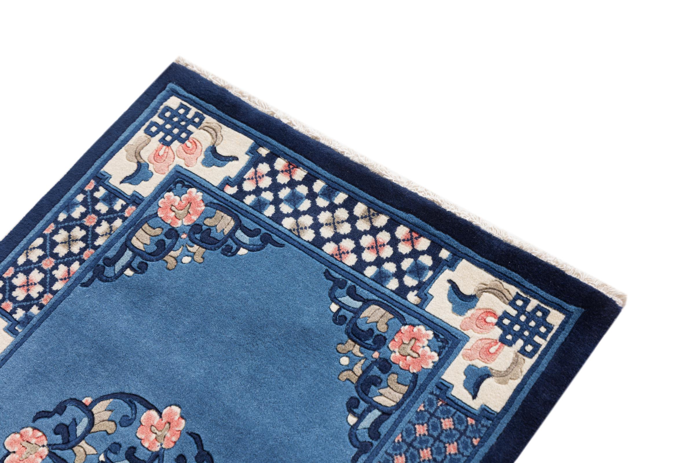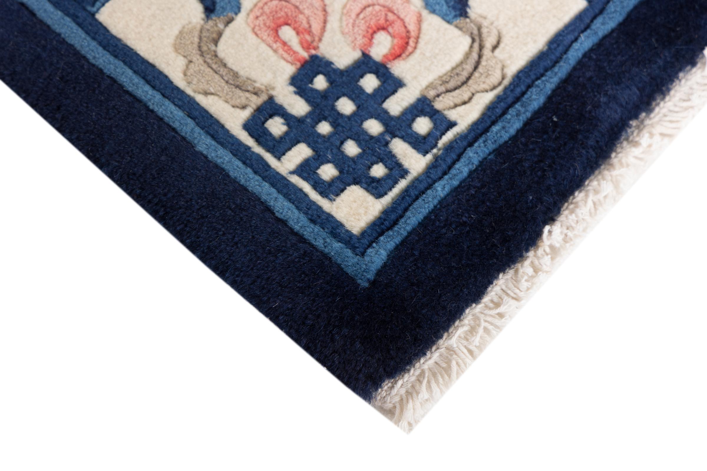 Dette tæppe er håndknyttet af uld i Kina. Kina har en århundreder gammel kultur for tæppevævning. Traditionelt blev der vævet motiver, som også kan findes på kinesisk porcelæn. Det drejer sig om typiske planter, dyr og i sjældne tilfælde drager. Nu væves der også persiske ornamenter.
