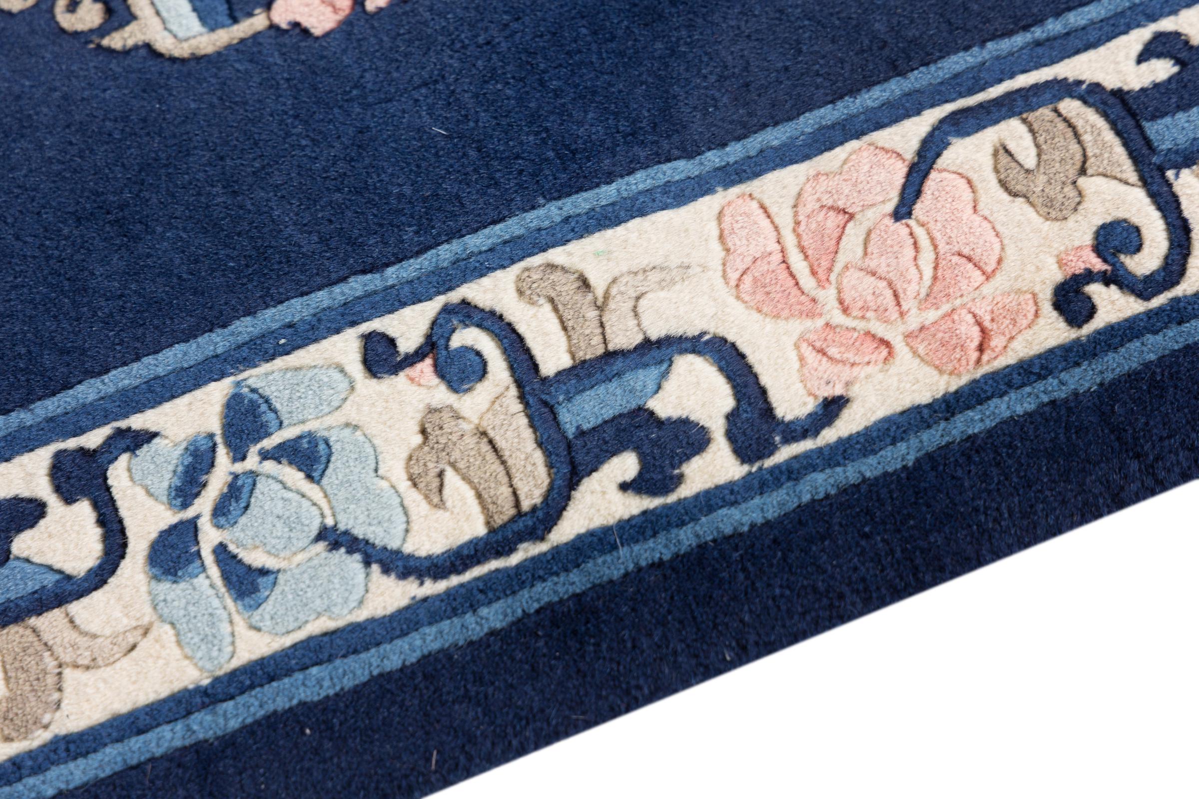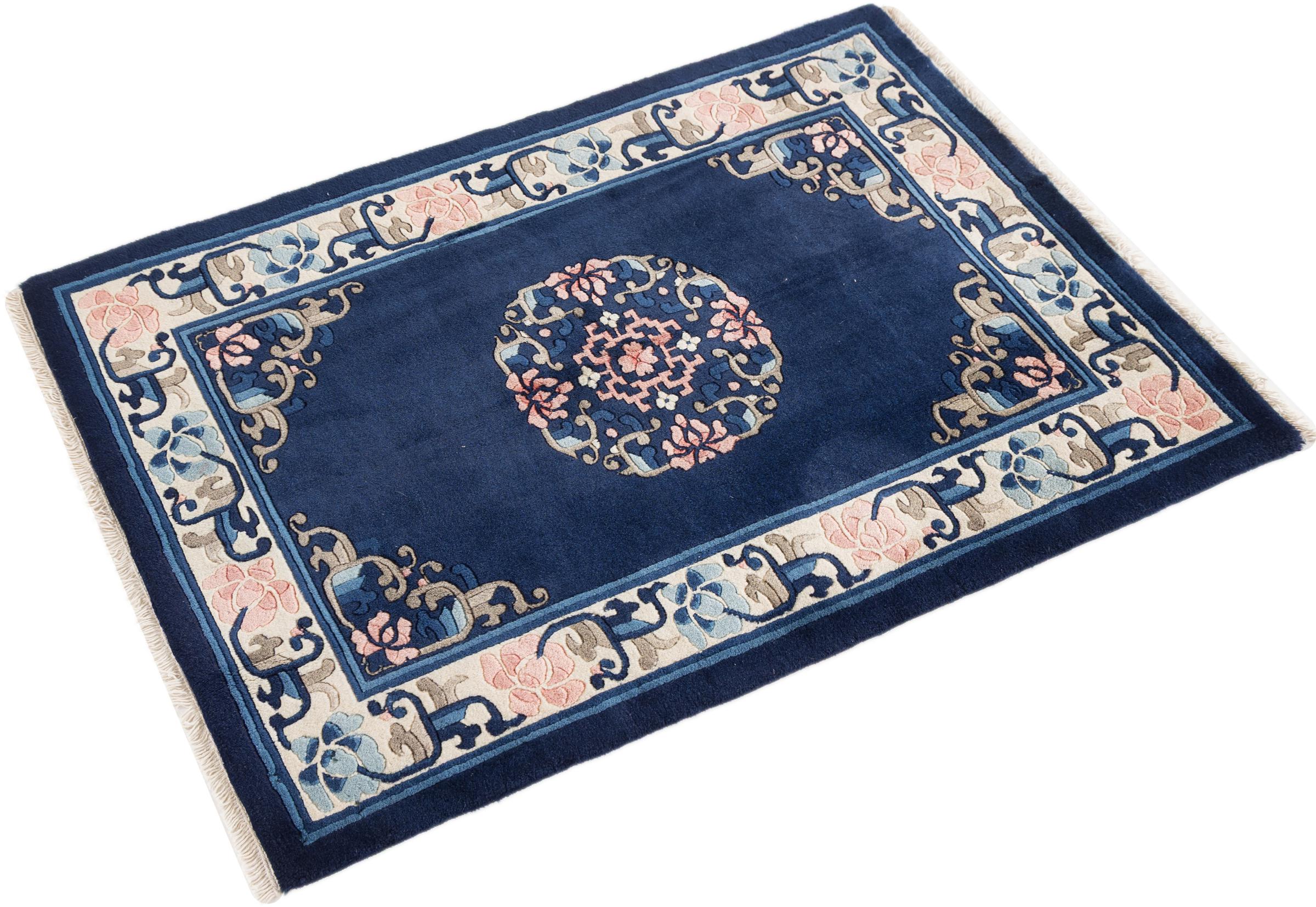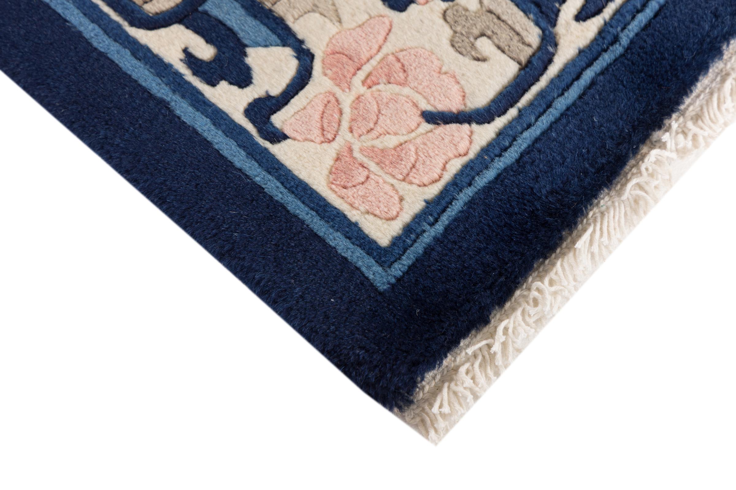 Dette tæppe er håndknyttet af uld i Kina. Kina har en århundreder gammel kultur for tæppevævning. Traditionelt blev der vævet motiver, som også kan findes på kinesisk porcelæn. Det drejer sig om typiske planter, dyr og i sjældne tilfælde drager. Nu væves der også persiske ornamenter.