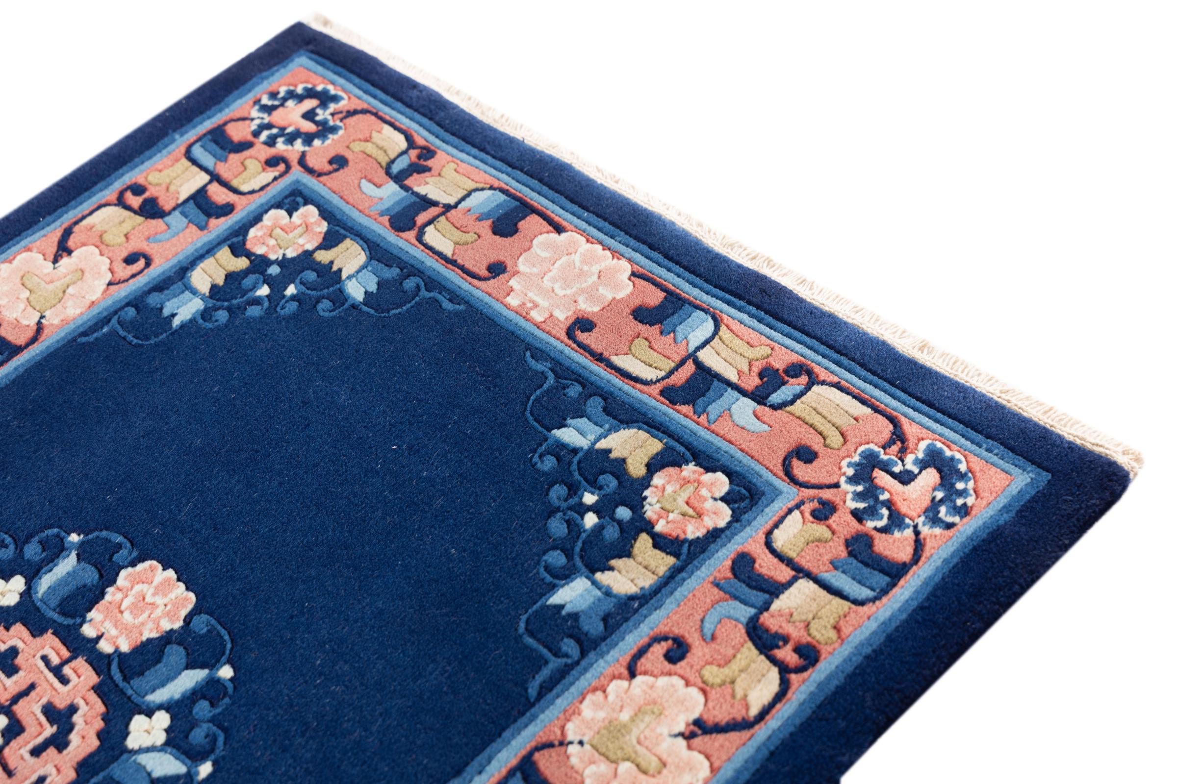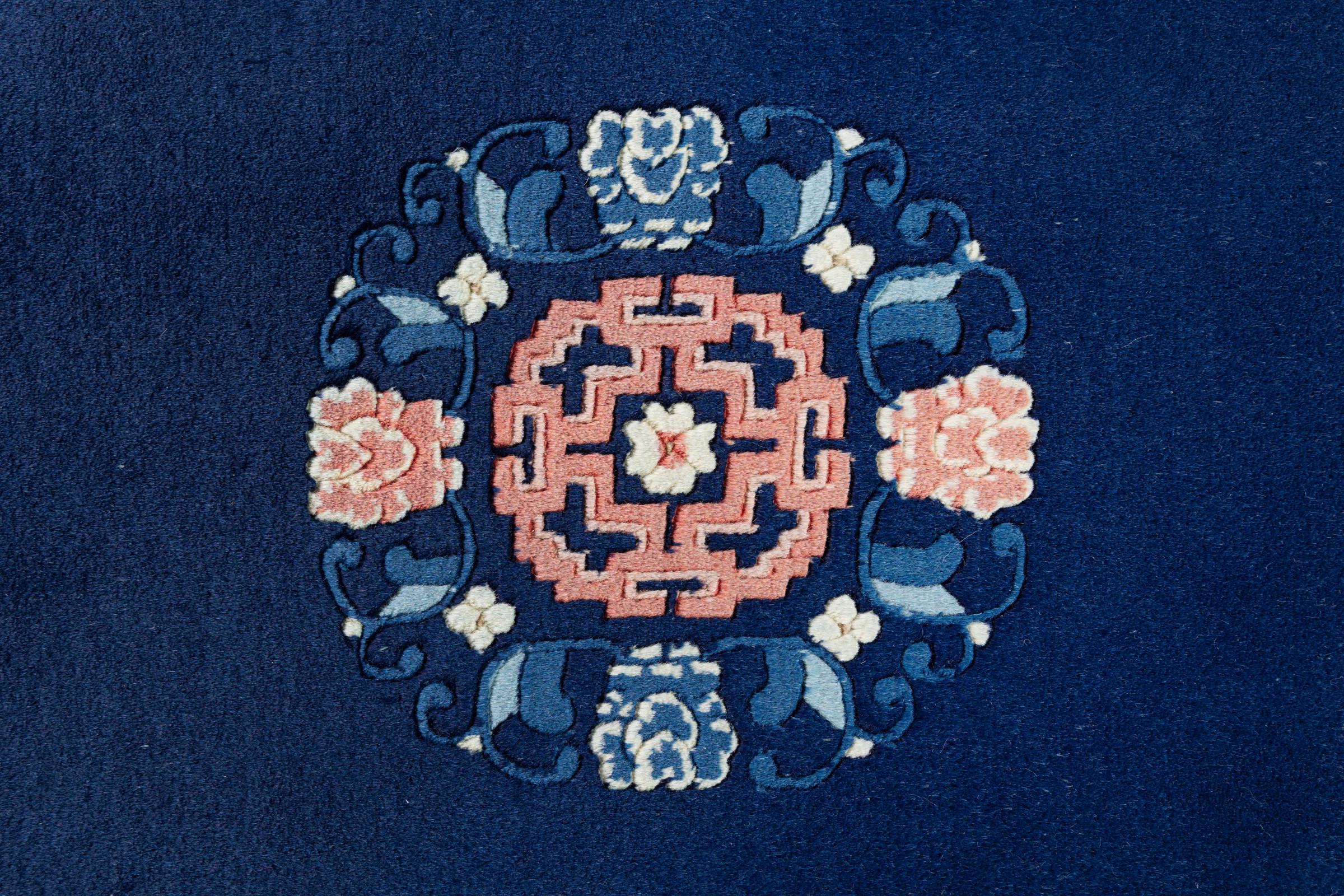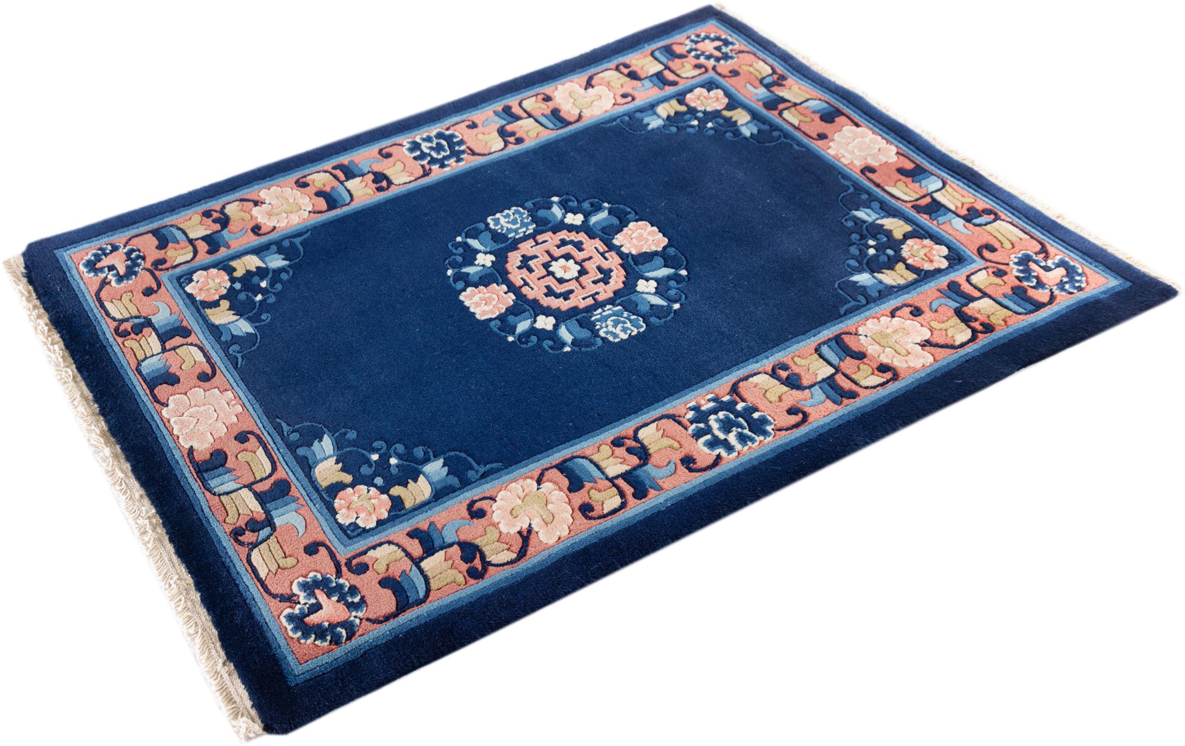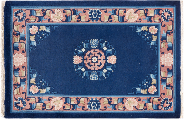 Dette tæppe er håndknyttet af uld i Kina. Kina har en århundreder gammel kultur for tæppevævning. Traditionelt blev der vævet motiver, som også kan findes på kinesisk porcelæn. Det drejer sig om typiske planter, dyr og i sjældne tilfælde drager. Nu væves der også persiske ornamenter.