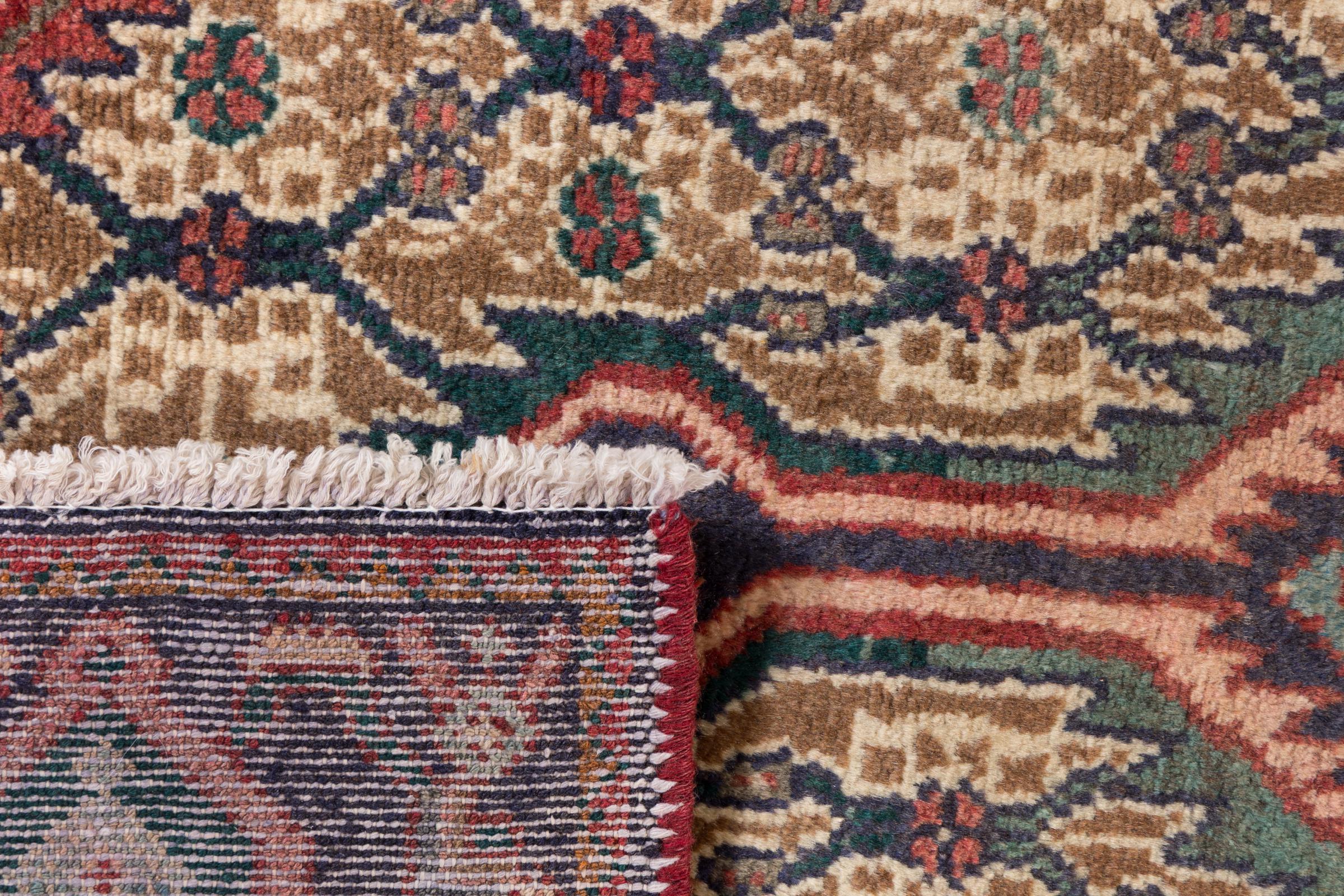 Dette detaljerede tæppe afspejler på imponerende vis skønheden i den kurdiske tæppetradition. Den rustikke vævning gør det robust og holdbart - ideelt til entreen eller stuen. Ud over at være yderst funktionelt har tæppet en unik æstetik. Det attraktive design blander harmonisk orientens farvetoner, hvilket bidrager til en hyggelig atmosfære i dit hjem.