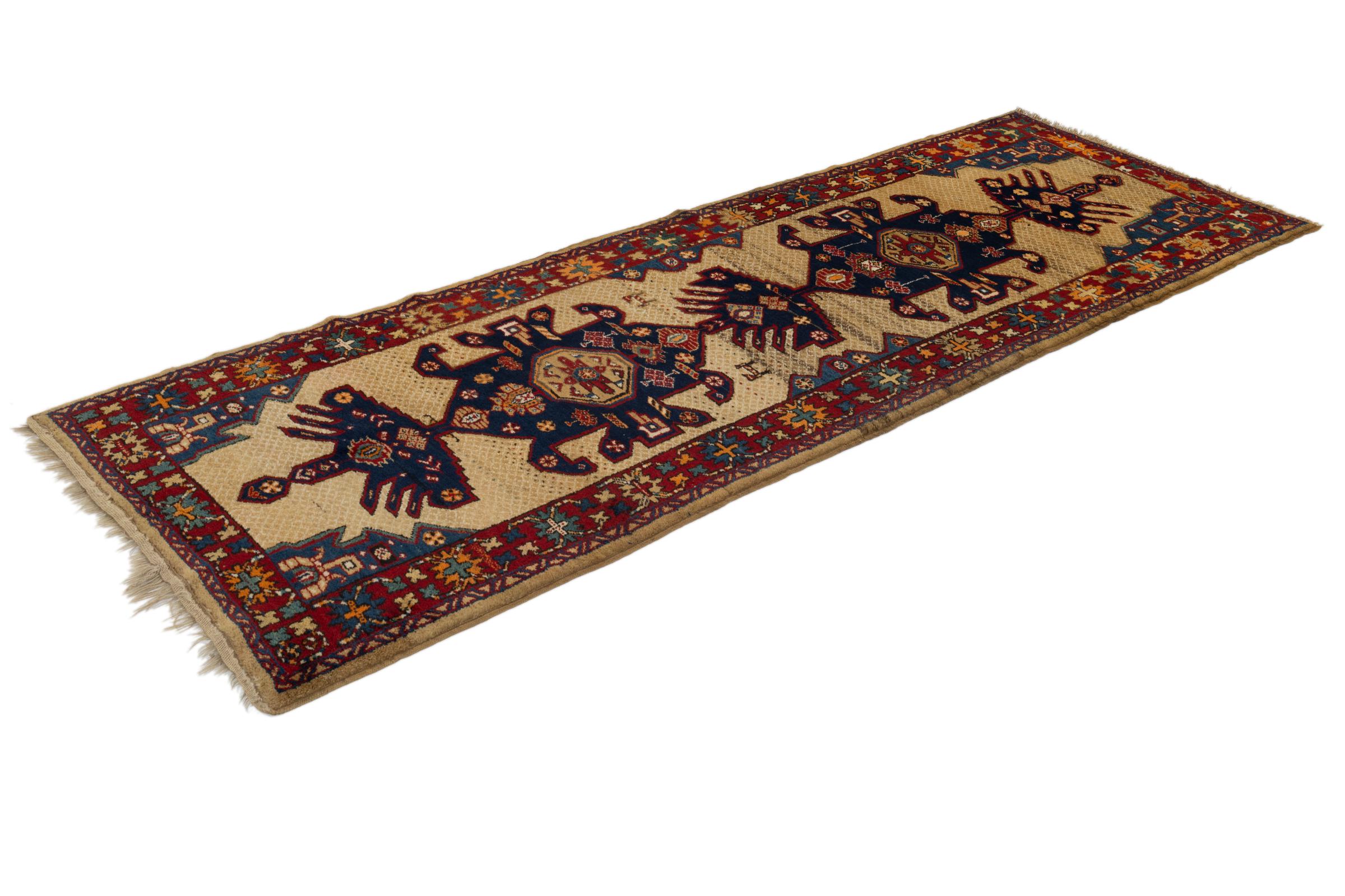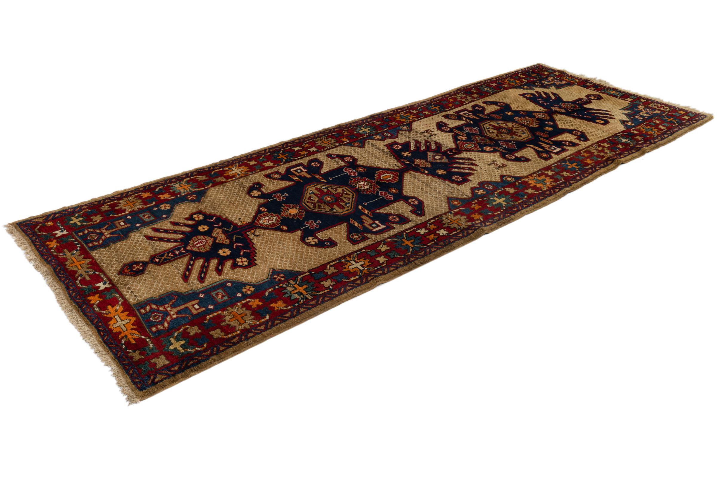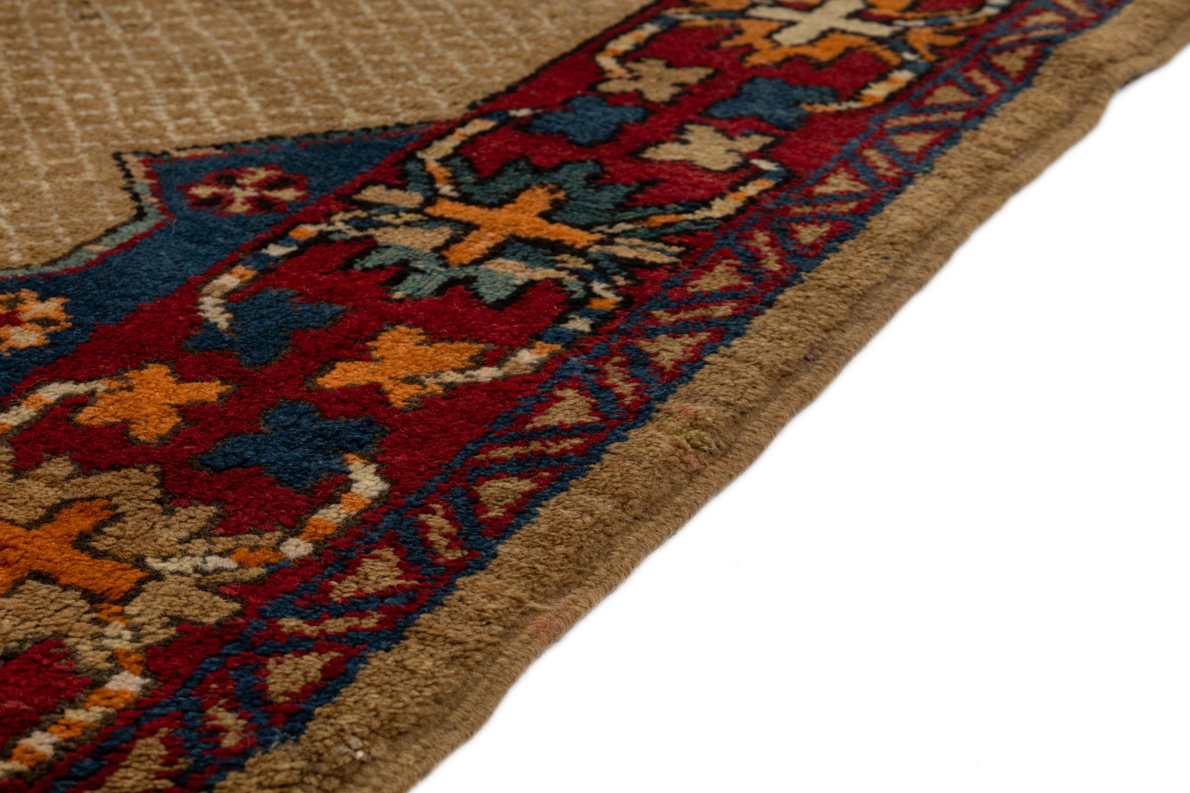 Dette detaljerede tæppe afspejler på imponerende vis skønheden i den kurdiske tæppetradition. Den rustikke vævning gør det robust og holdbart - ideelt til entreen eller stuen. Ud over at være yderst funktionelt har tæppet en unik æstetik. Det attraktive design blander harmonisk orientens farvetoner, hvilket bidrager til en hyggelig atmosfære i dit hjem.