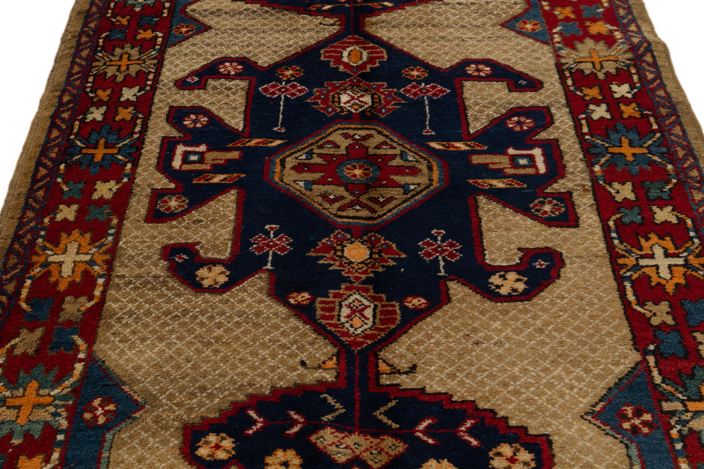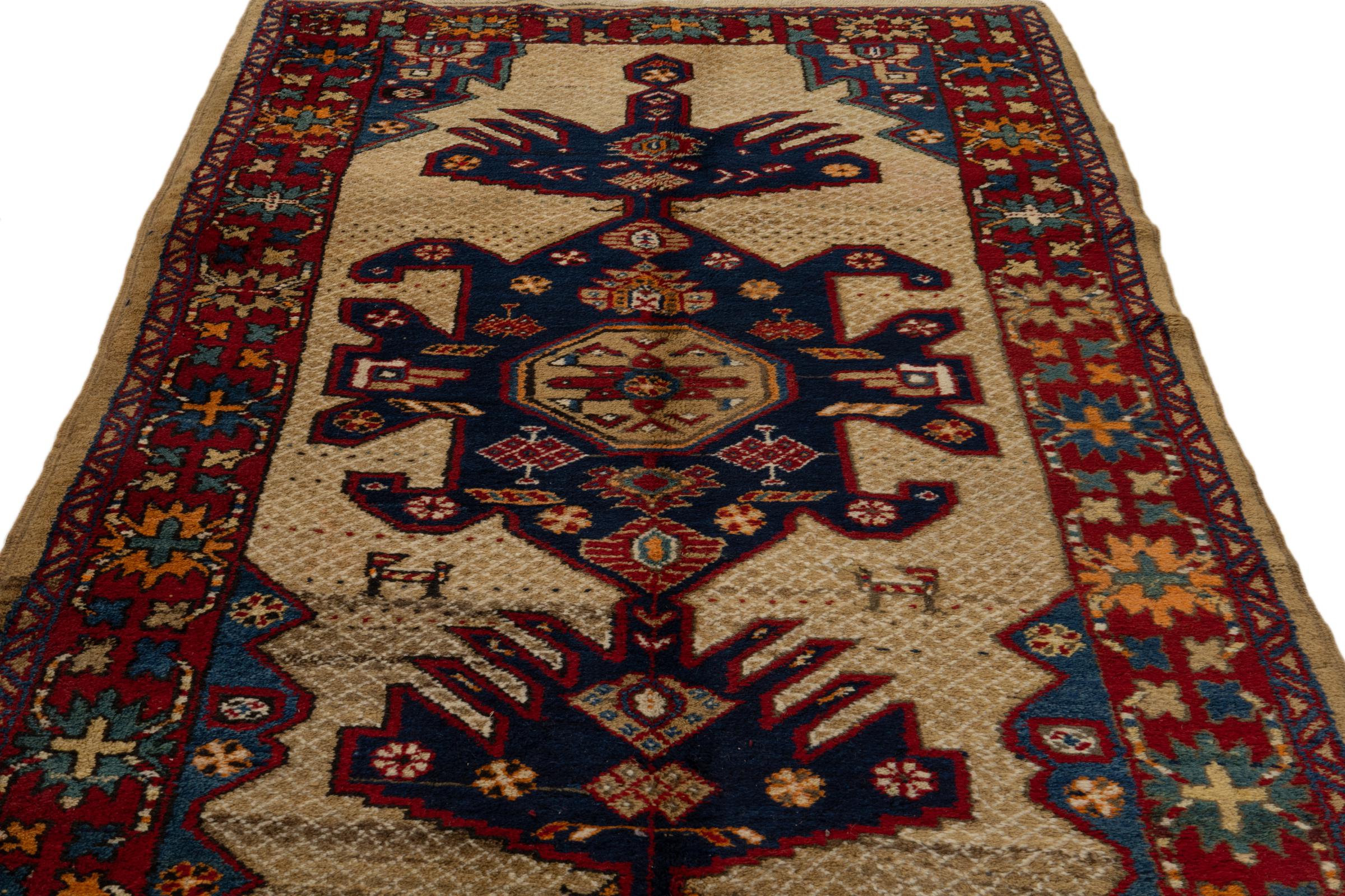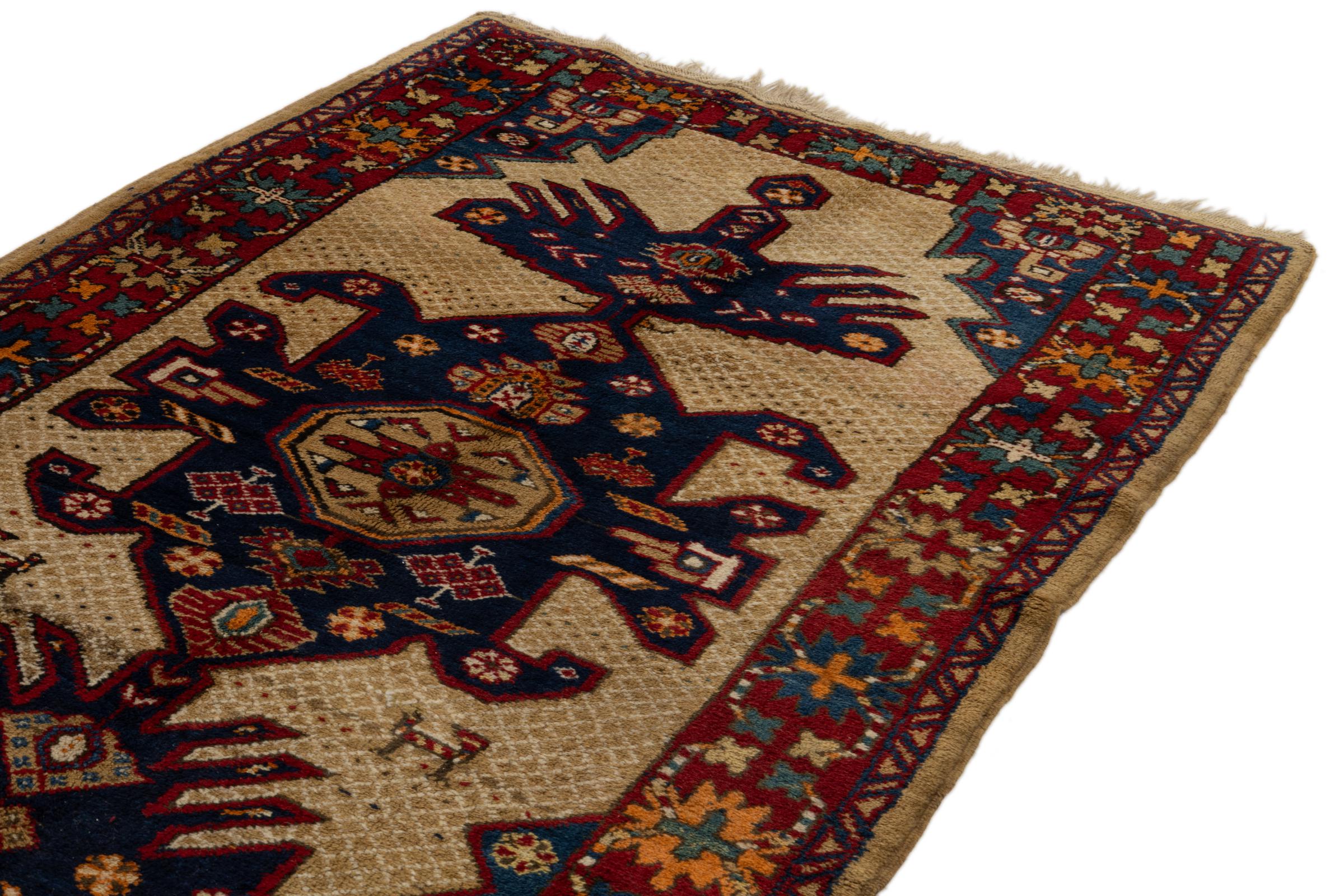 Dette detaljerede tæppe afspejler på imponerende vis skønheden i den kurdiske tæppetradition. Den rustikke vævning gør det robust og holdbart - ideelt til entreen eller stuen. Ud over at være yderst funktionelt har tæppet en unik æstetik. Det attraktive design blander harmonisk orientens farvetoner, hvilket bidrager til en hyggelig atmosfære i dit hjem.