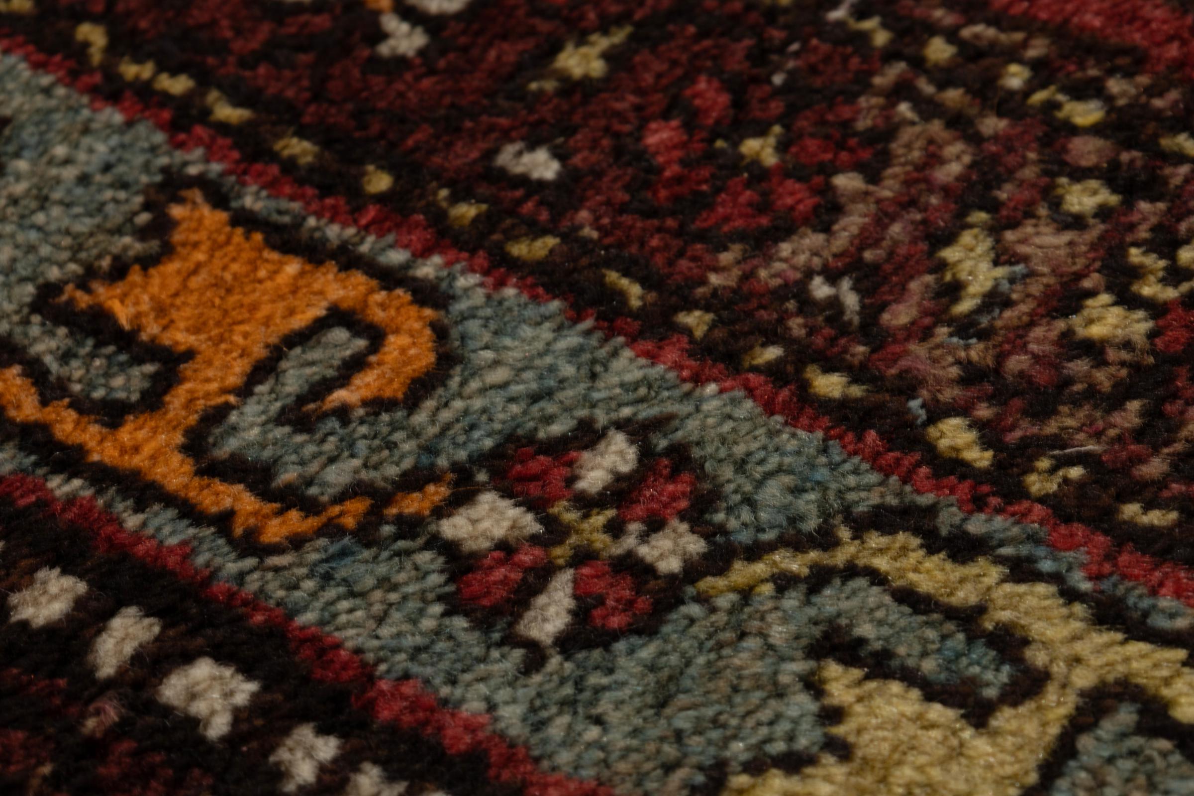 Dette detaljerede tæppe afspejler på imponerende vis skønheden i den kurdiske tæppetradition. Den rustikke vævning gør det robust og holdbart - ideelt til entreen eller stuen. Ud over at være yderst funktionelt har tæppet en unik æstetik. Det attraktive design blander harmonisk orientens farvetoner, hvilket bidrager til en hyggelig atmosfære i dit hjem.
