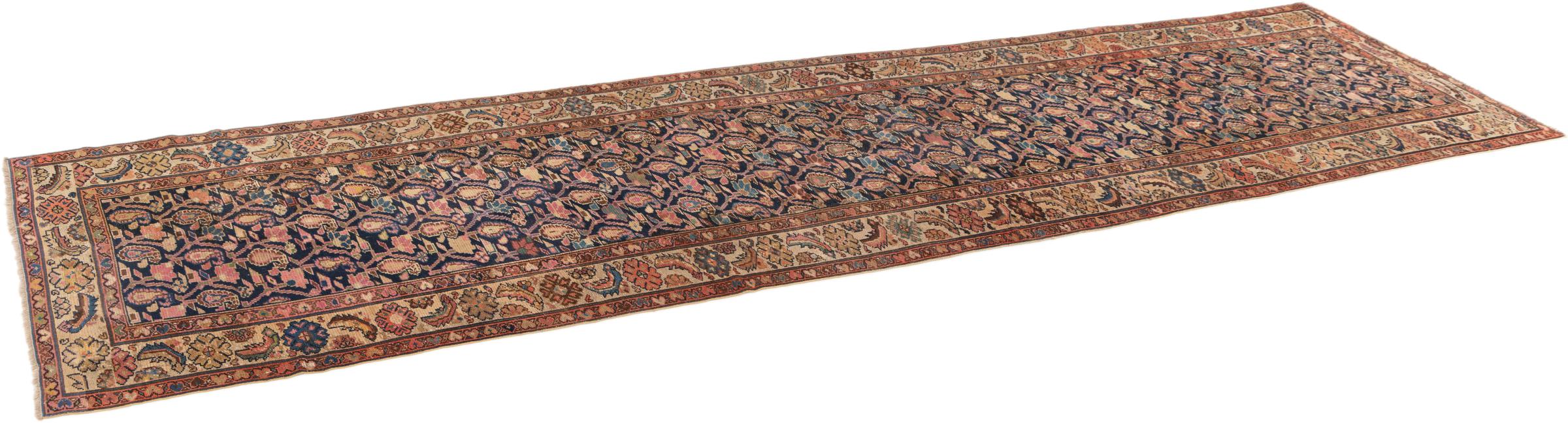 Tæppe-nr.: 297430006348 Størrelse: 525x110 cm Tykkelse: ca. 12 mm Knuder: 200 000 - 250 000 / m² Forarbejdelse: Knyttet i hånden Luv: Håndspunden uld Kæde: Uld Tilstand / Bevaring Perfekt Oprindelse: Persien / Iran Alder: Antik, ældre end 80 år Vægt: ca. 20 kg Antal på lager: Unik - Kun 1 tilbage på lager