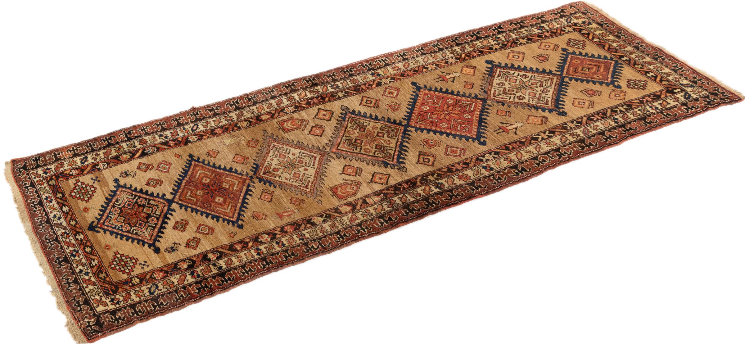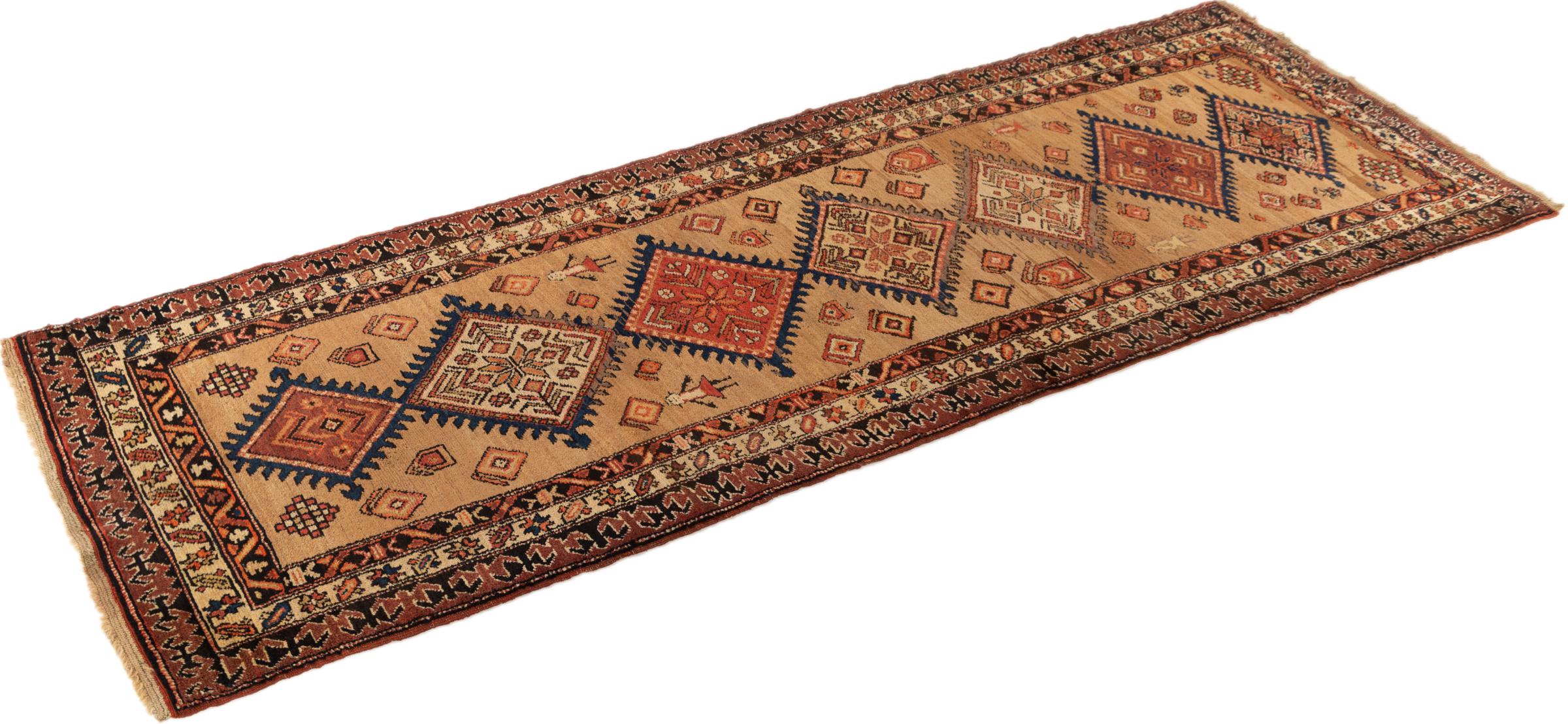Tæppe-nr.: 297546008580 Størrelse: 415x108 cm Tykkelse: ca. 12 mm Knuder: 200 000 - 250 000 / m² Forarbejdelse: Knyttet i hånden Luv: Håndspunden uld Kæde: Uld Tilstand / Bevaring Perfekt Oprindelse: Persien / Iran Alder: Antik, ældre end 80 år Vægt: ca. 16 kg Antal på lager: Unik - Kun 1 tilbage på lager