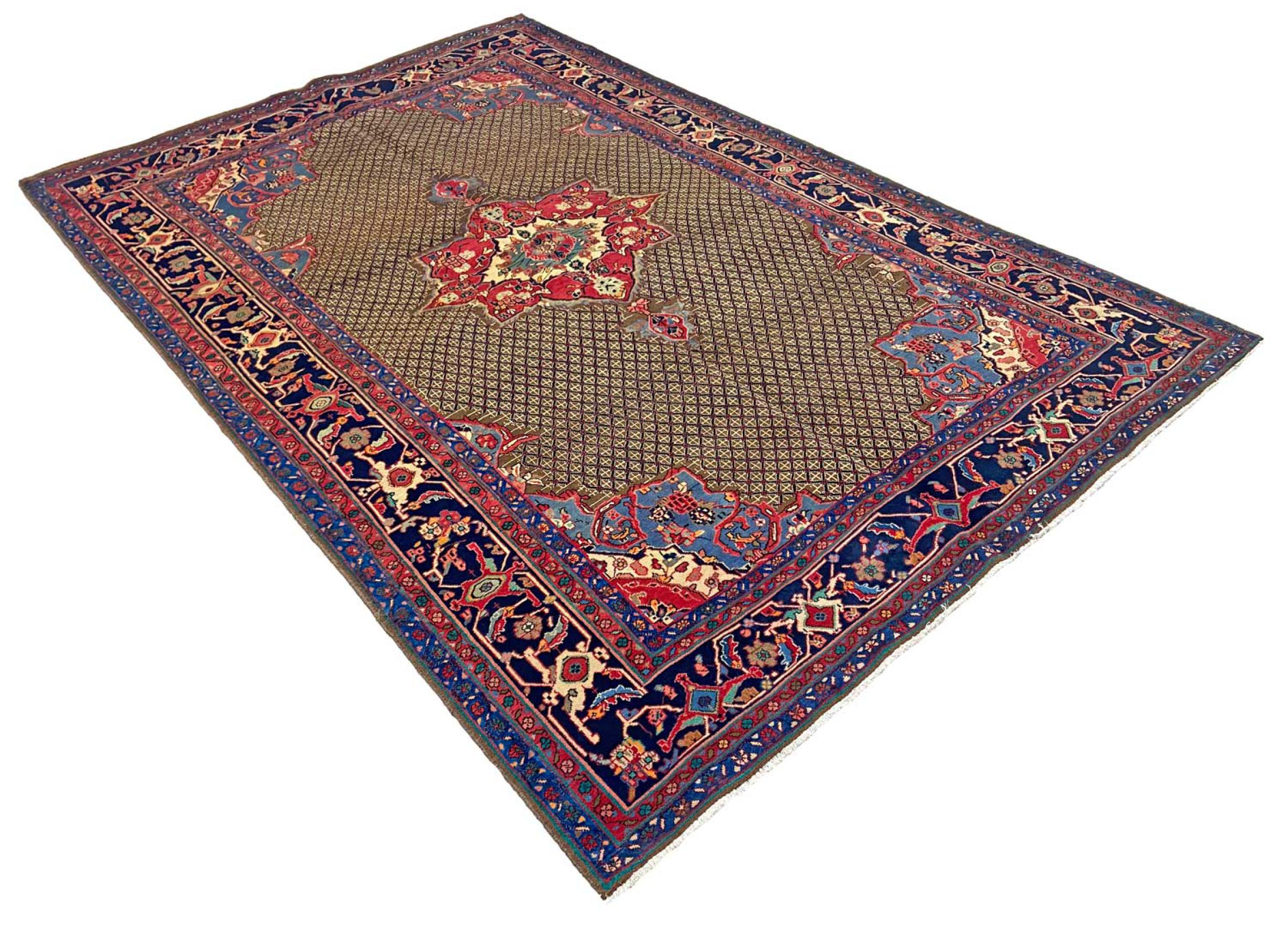 Tæppe-nr.: 303095005931278 Størrelse: 316x204 cm Tykkelse: ca. 8 mm Knuder: 128 000 - 160 000 / m² Forarbejdelse: Knyttet i hånden Luv: Håndspunden uld Kæde: Bomuld Oprindelse: Persien / Iran Alder: Ny Vægt: ca. 23 kg Antal på lager: Unik - Kun 1 tilbage på lager