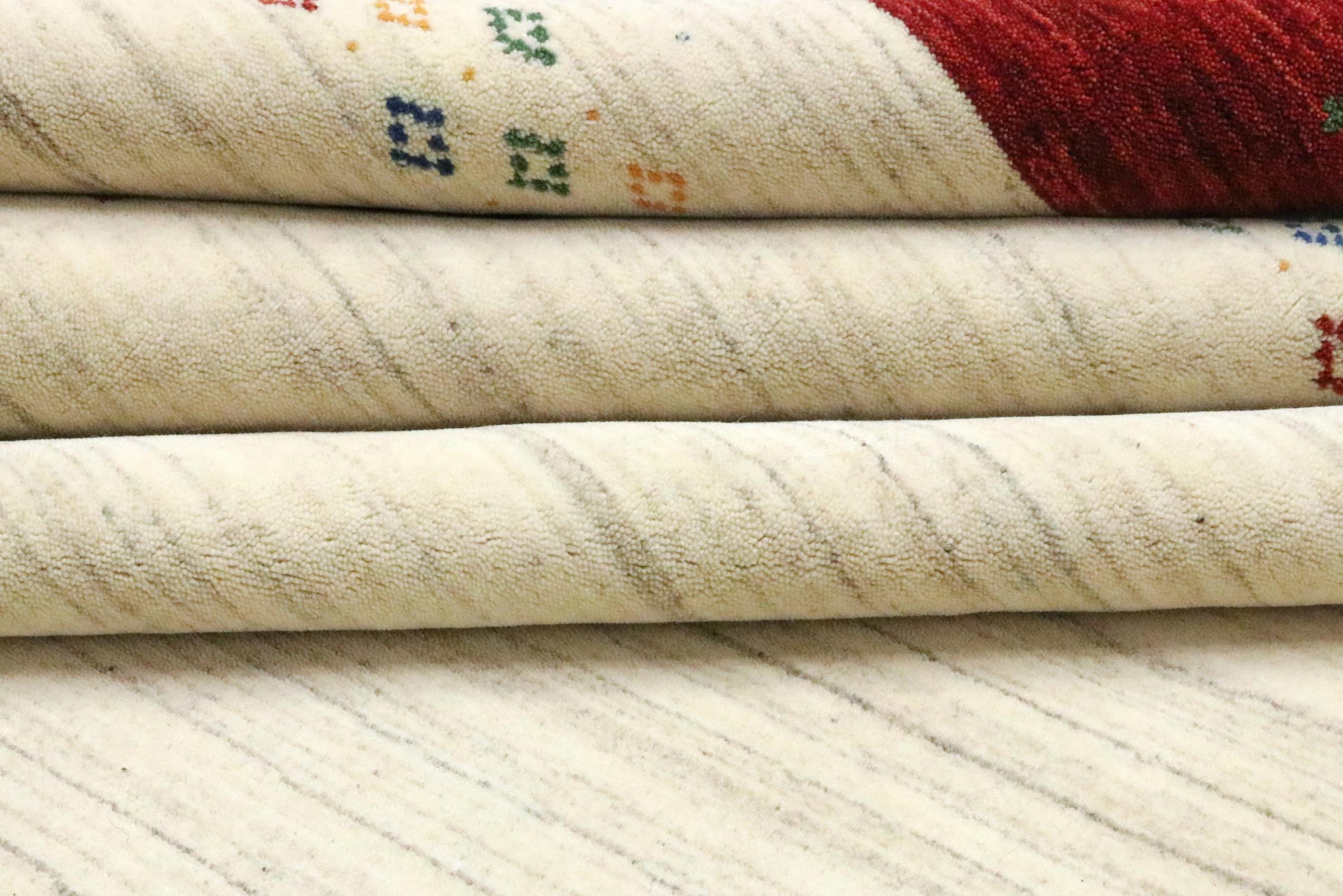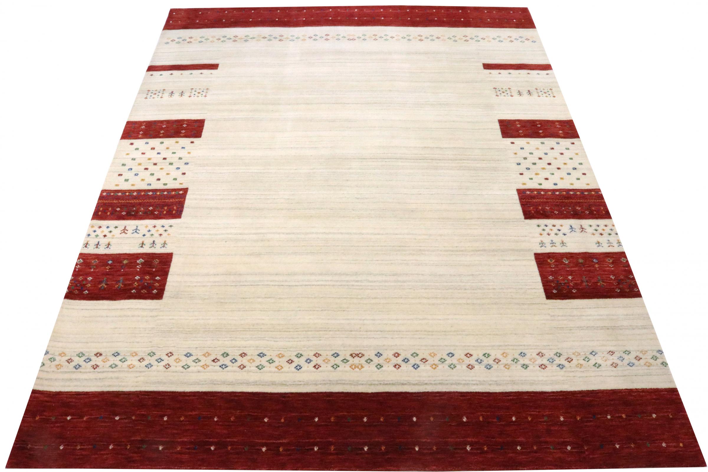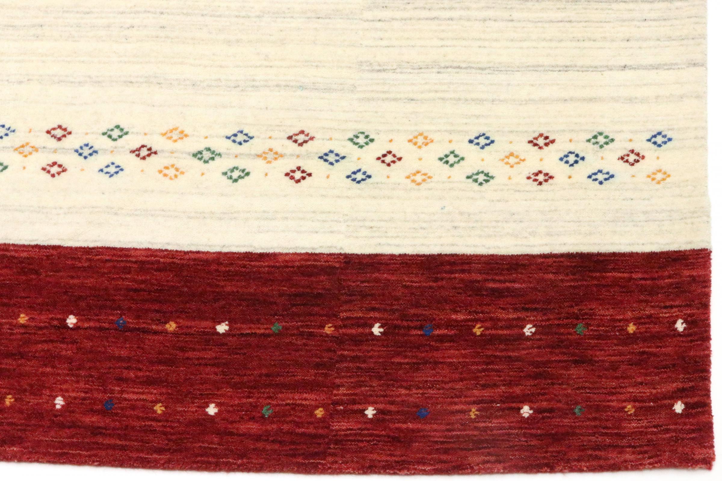 Denne Loom Gabbeh Lori er lavet i hånden ved hjælp af en ny væveteknik i den lille by Bhadohi i Indien. Det gør det muligt at skabe smukke og moderne tæpper i et Gabbeh-design i hånden på en væv med minimal indsats. Der bruges stadig uld af høj kvalitet. Dette tæppe er både blødt og hyggeligt og robust. Helt sikkert et meget flot stykke til alle, der værdsætter et overkommeligt håndknyttet tæppe med sin egen karakter.