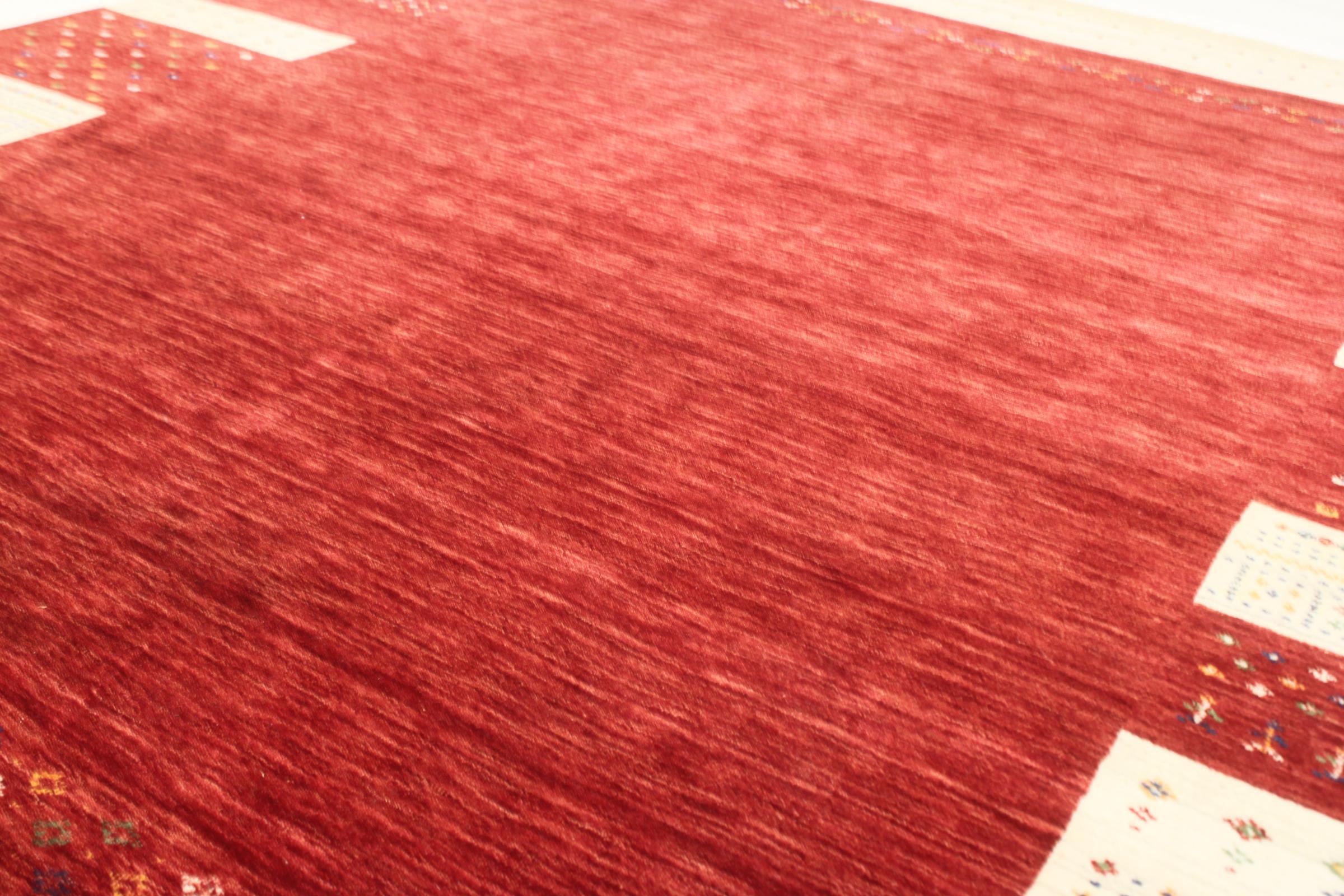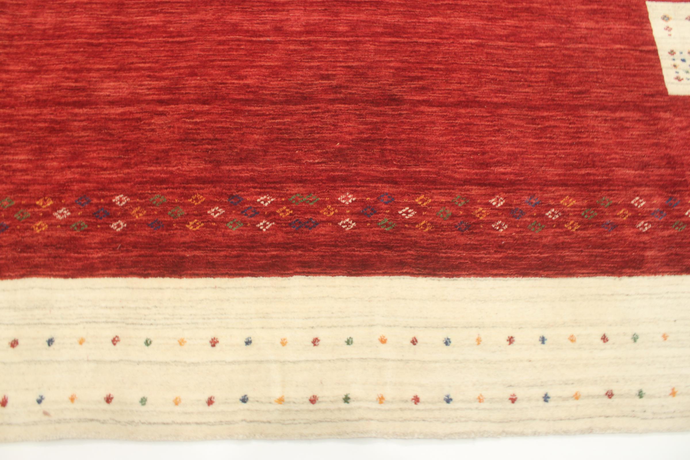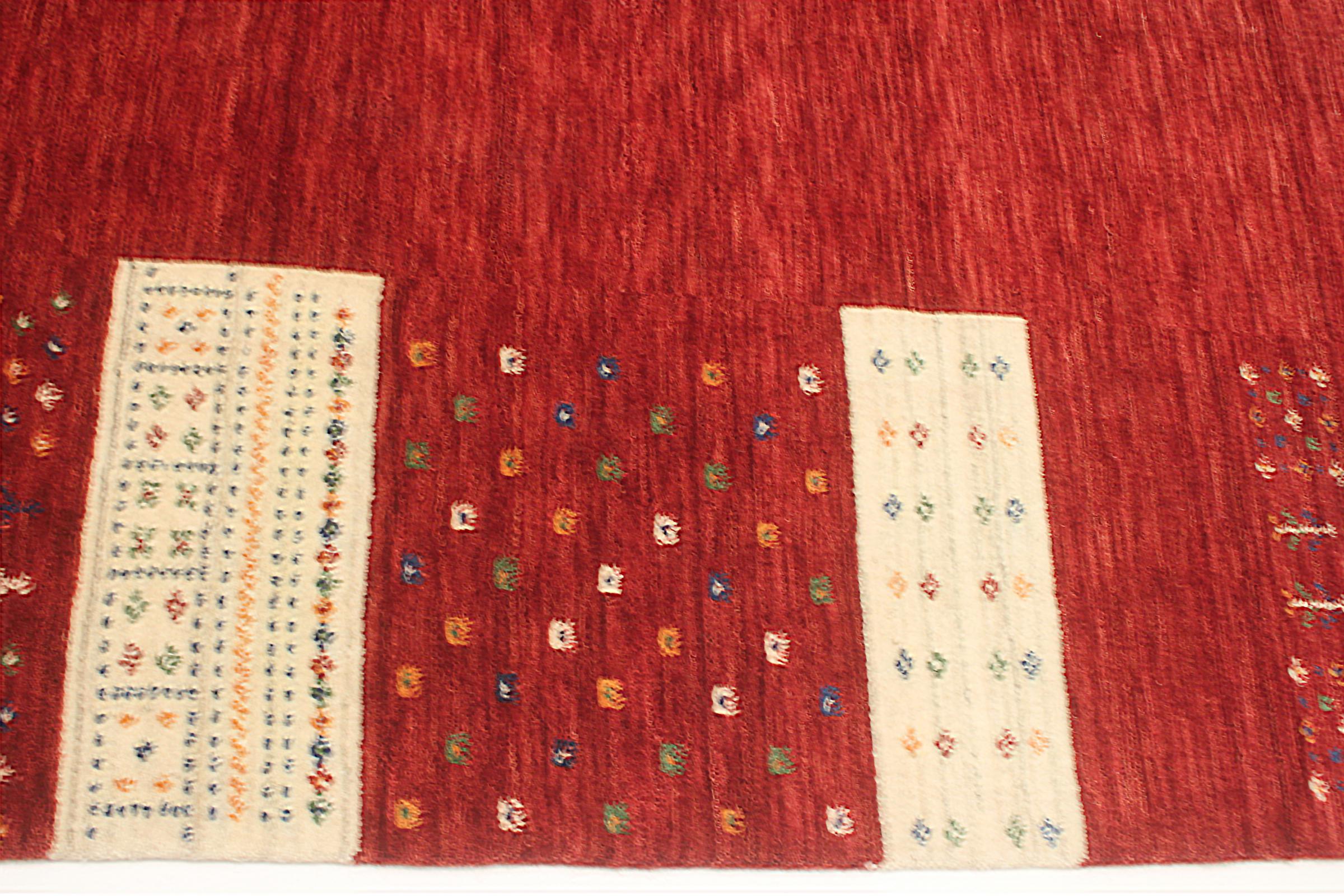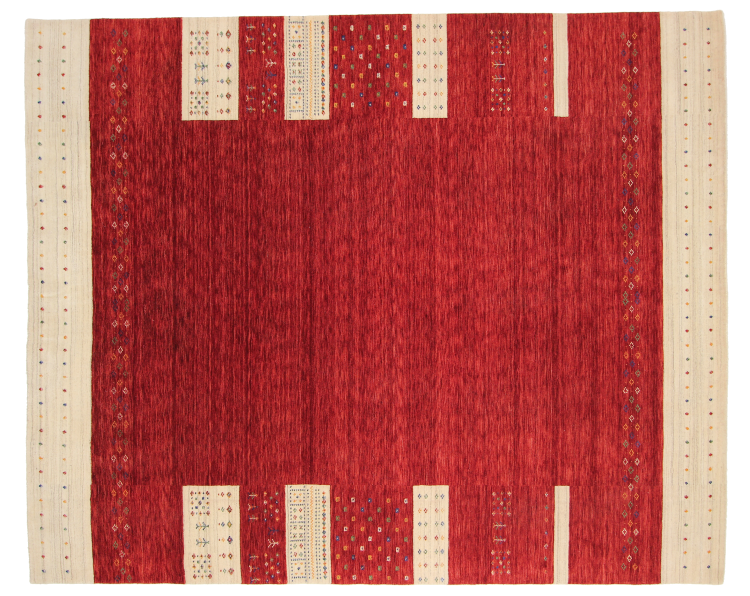 Denne Loom Gabbeh Lori er lavet i hånden ved hjælp af en ny væveteknik i den lille by Bhadohi i Indien. Det gør det muligt at skabe smukke og moderne tæpper i et Gabbeh-design i hånden på en væv med minimal indsats. Der bruges stadig uld af høj kvalitet. Dette tæppe er både blødt og hyggeligt og robust. Helt sikkert et meget flot stykke til alle, der værdsætter et overkommeligt håndknyttet tæppe med sin egen karakter.