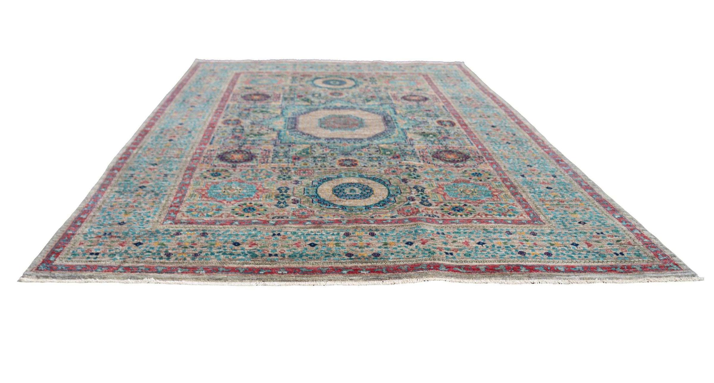 Dette mamluk er knyttet i hånden og kan begejstre med en enkel elegance. Dens farver er kombineret smukt og dens spændende motiver bringer liv i dit eget hjem.
