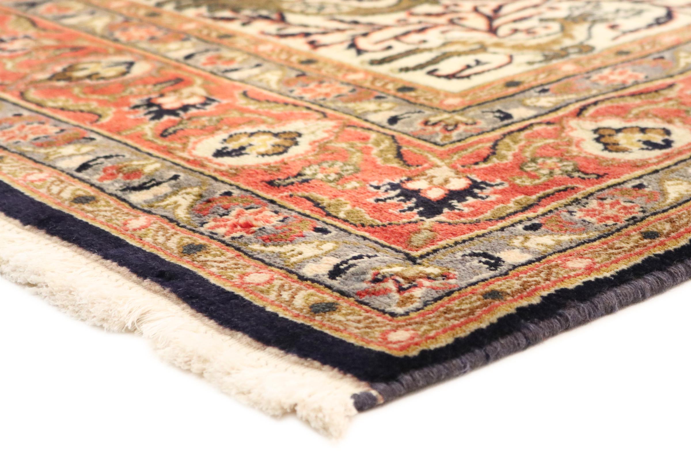 Dette tæppe fra Mashhad, en af de største byer i Iran, er håndknyttet af ren naturuld. Millioner af mennesker valfarter hvert år til denne hellige persiske by. Mashhad-tæpper er kendt for deres usædvanlige størrelser og uld af ekstremt høj kvalitet.