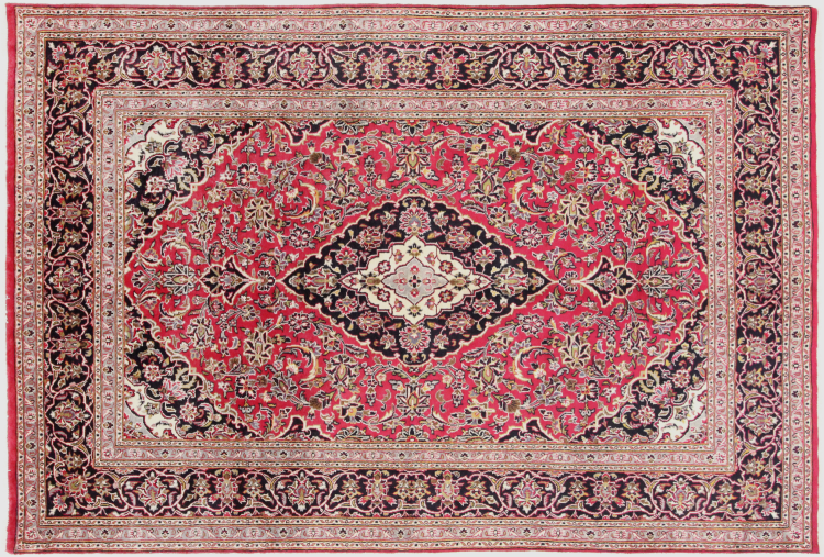 Dette tæppe fra Mashhad, en af de største byer i Iran, er håndknyttet af ren naturuld. Millioner af mennesker valfarter hvert år til denne hellige persiske by. Mashhad-tæpper er kendt for deres usædvanlige størrelser og uld af ekstremt høj kvalitet.