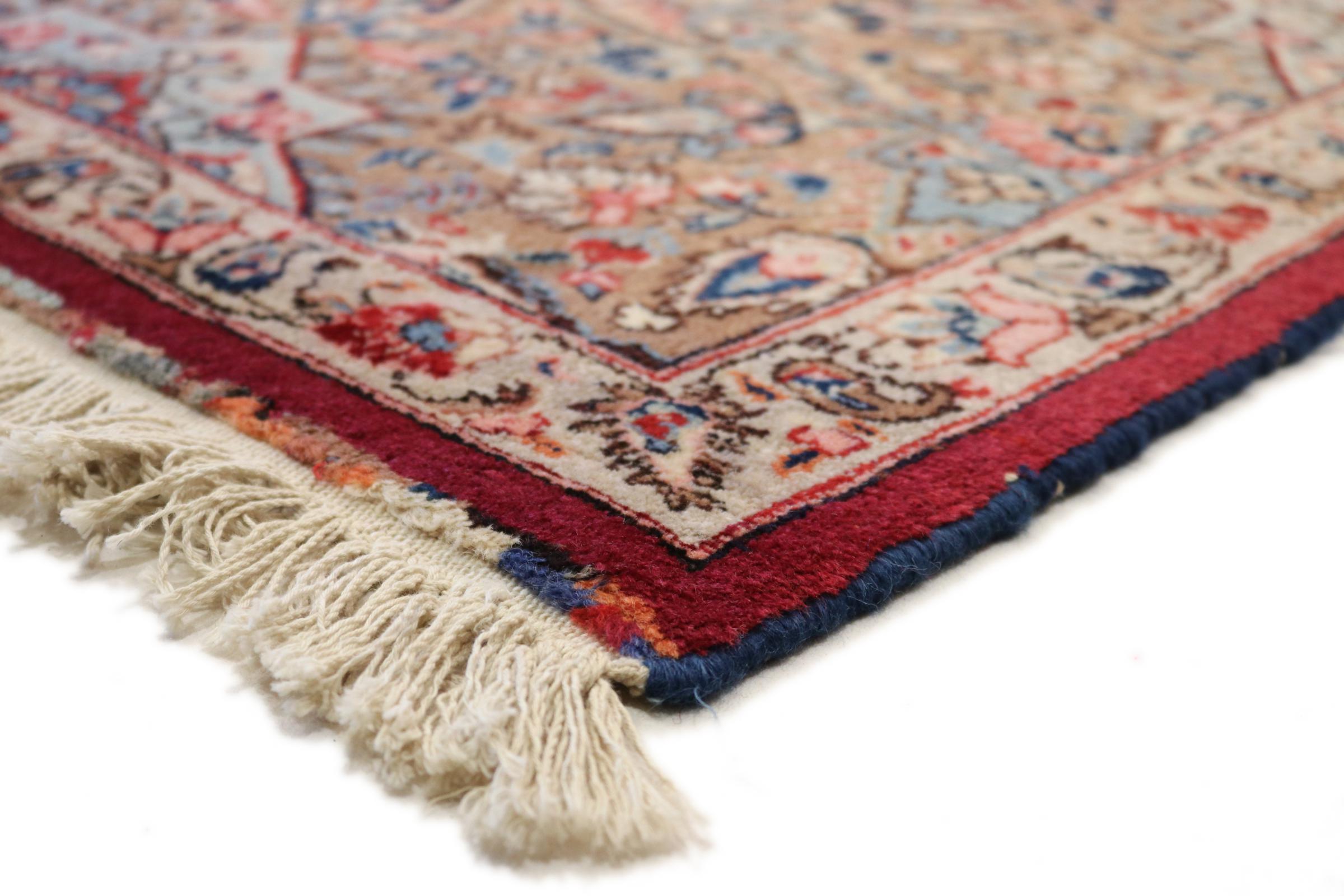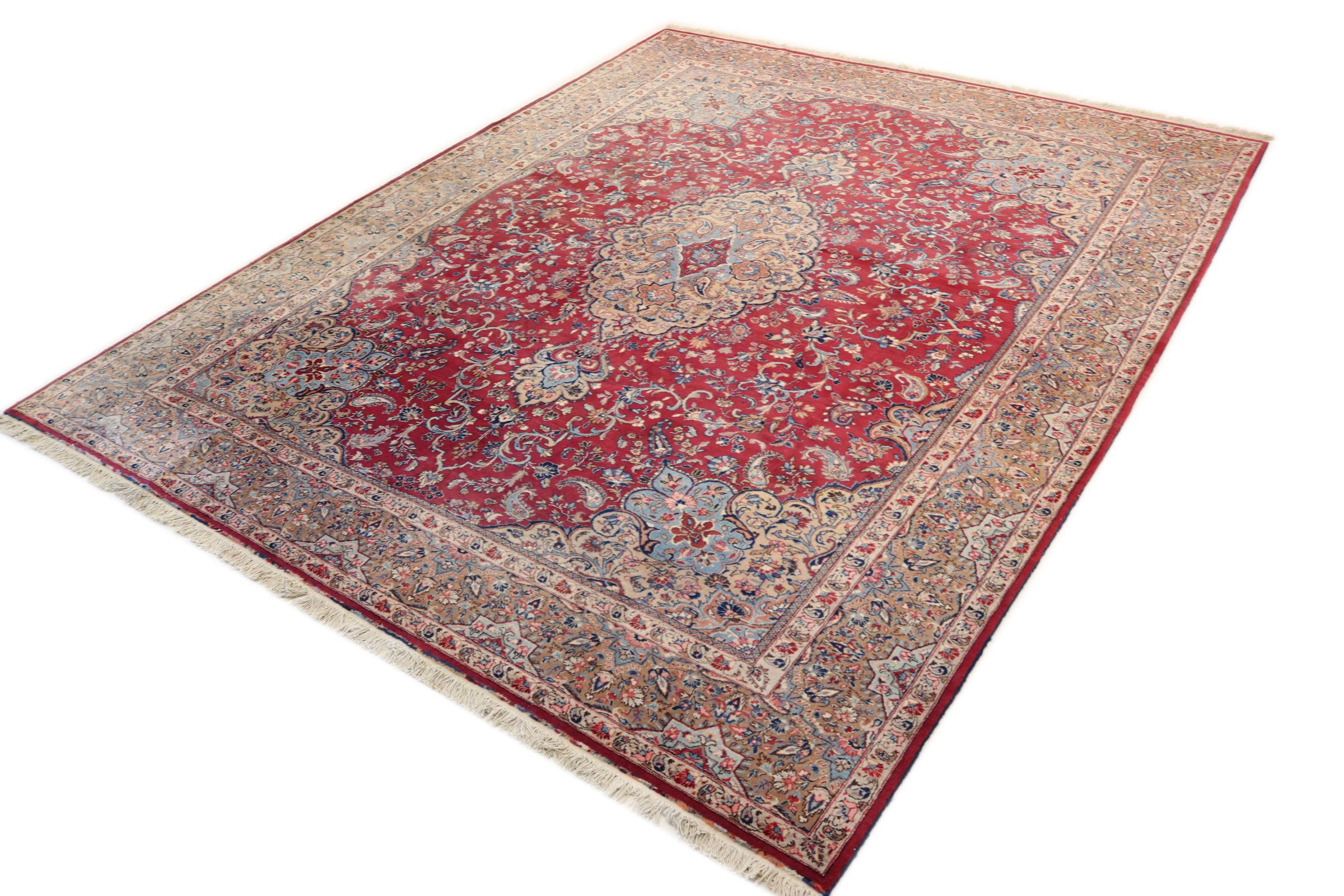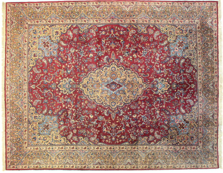 Dette tæppe fra Mashhad, en af de største byer i Iran, er håndknyttet af ren naturuld. Millioner af mennesker valfarter hvert år til denne hellige persiske by. Mashhad-tæpper er kendt for deres usædvanlige størrelser og uld af ekstremt høj kvalitet.
