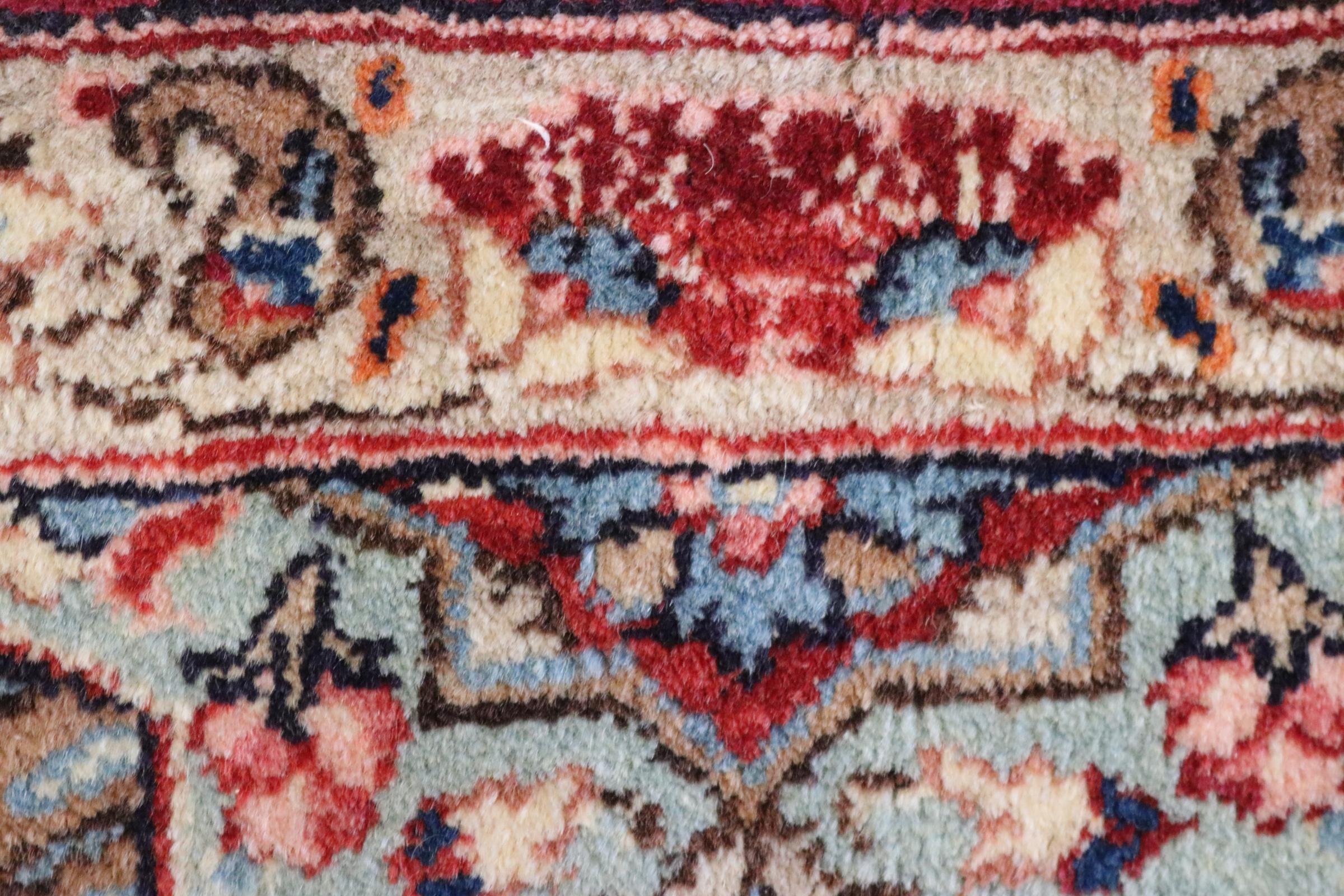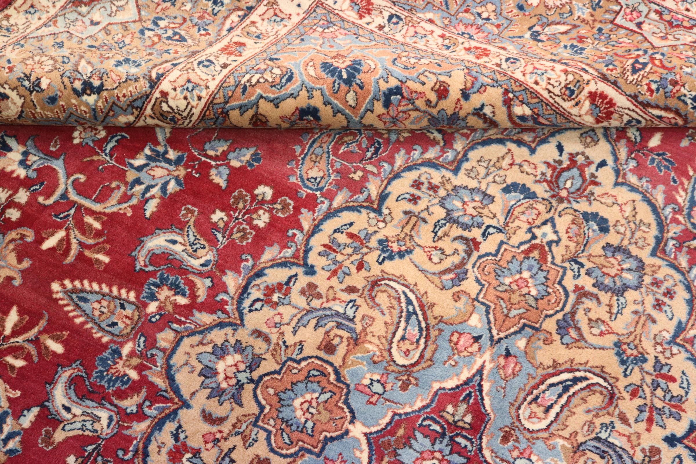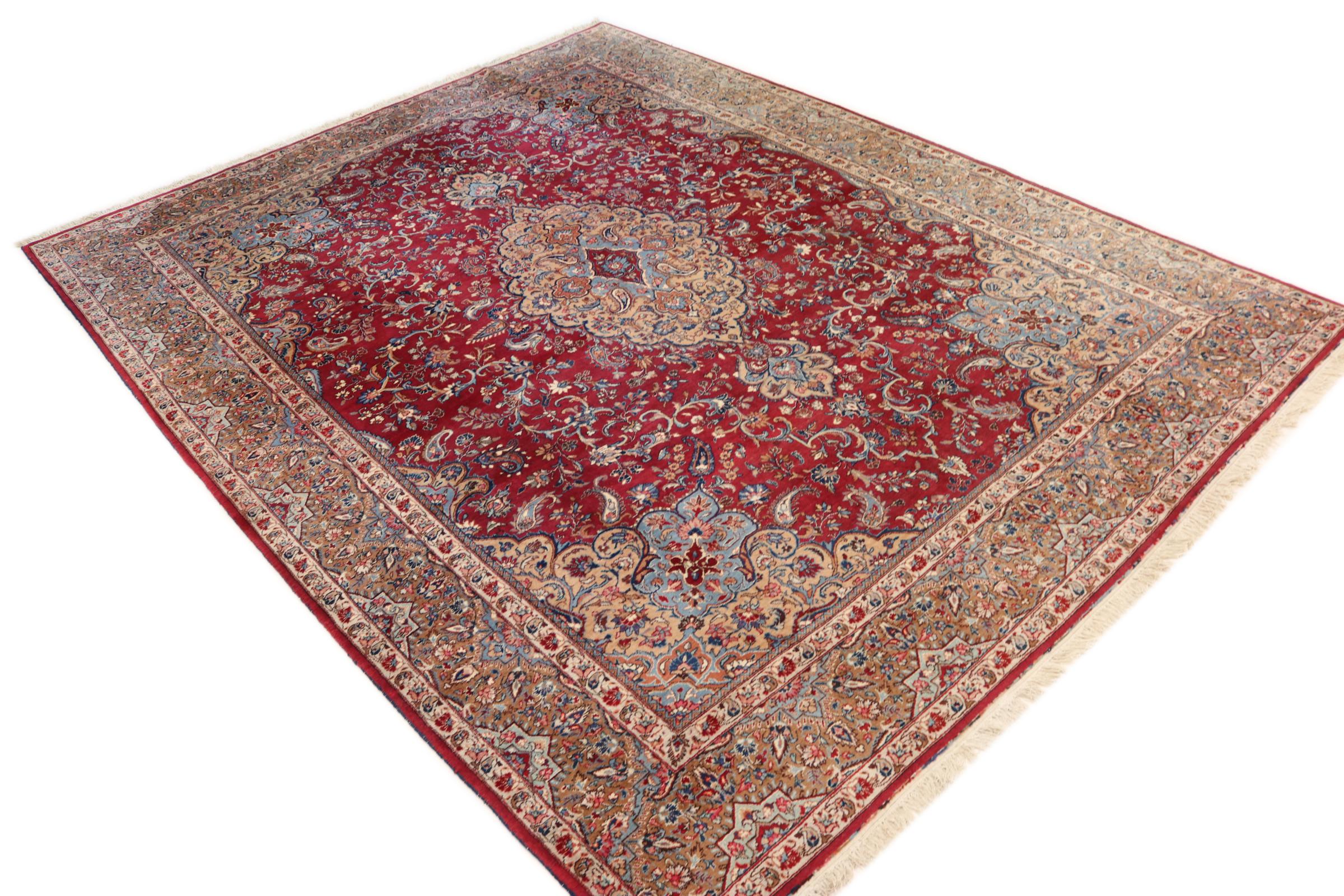 Dette tæppe fra Mashhad, en af de største byer i Iran, er håndknyttet af ren naturuld. Millioner af mennesker valfarter hvert år til denne hellige persiske by. Mashhad-tæpper er kendt for deres usædvanlige størrelser og uld af ekstremt høj kvalitet.