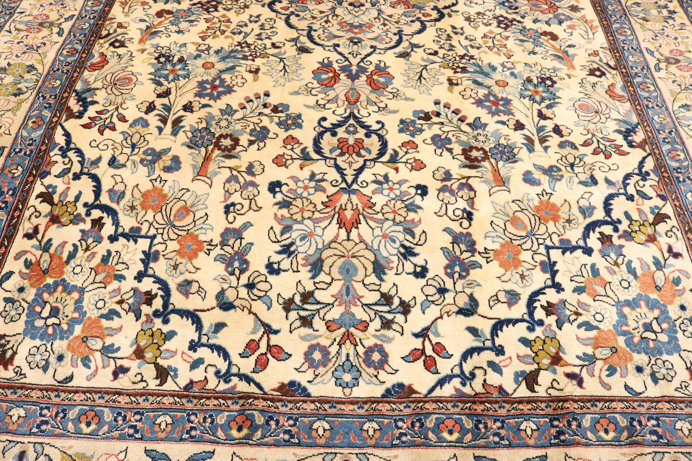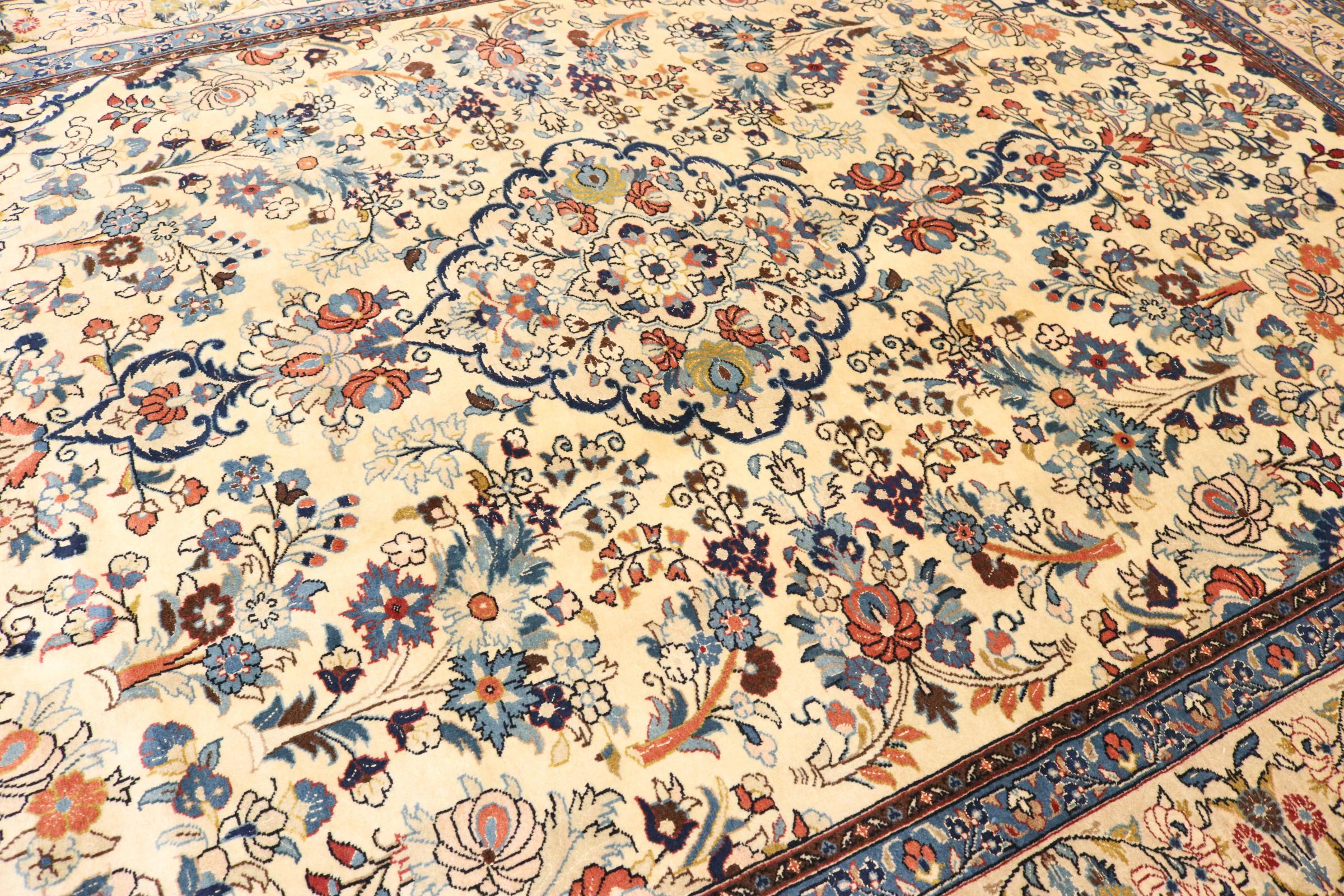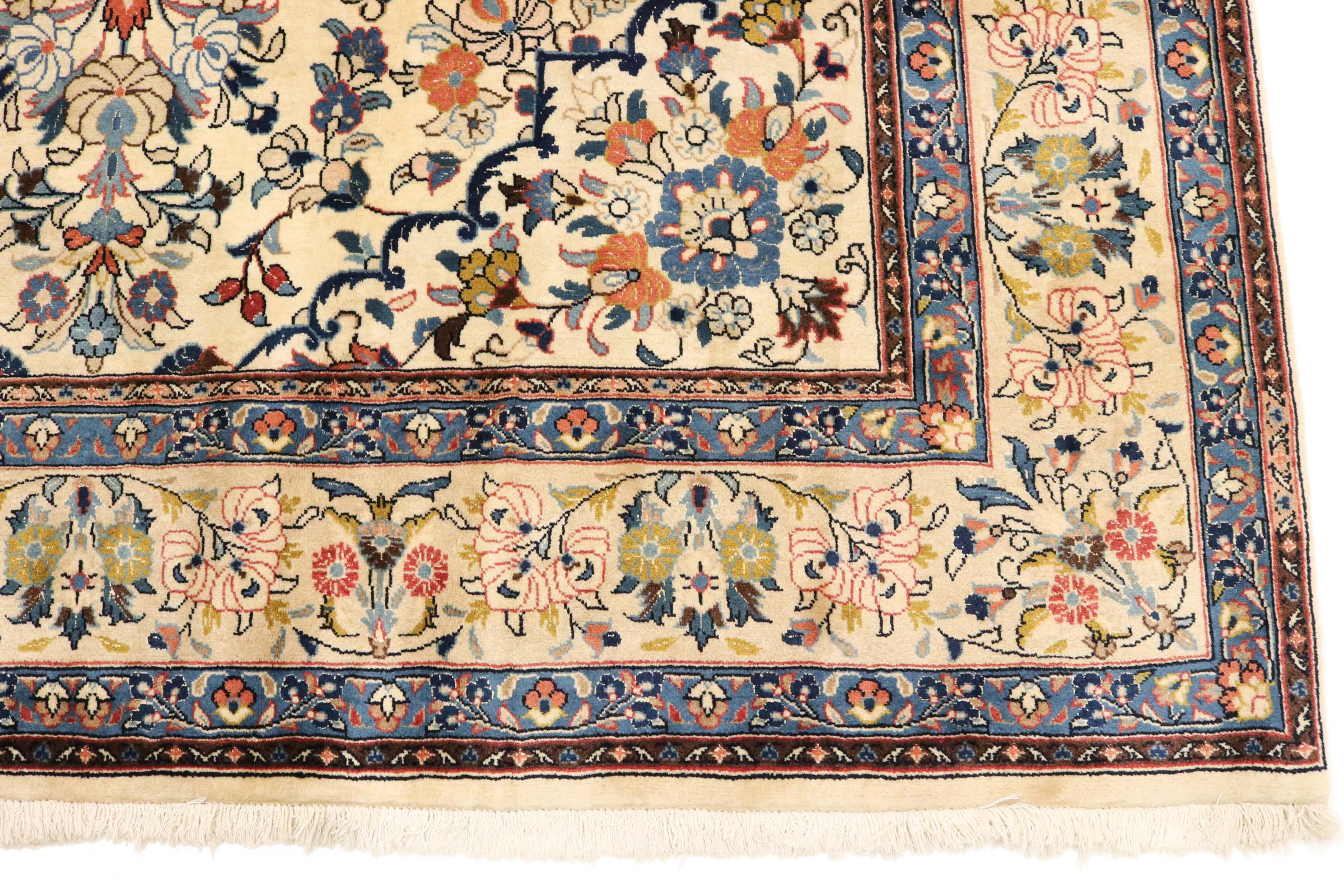 Dette tæppe fra Mashhad, en af de største byer i Iran, er håndknyttet af ren naturuld. Millioner af mennesker valfarter hvert år til denne hellige persiske by. Mashhad-tæpper er kendt for deres usædvanlige størrelser og uld af ekstremt høj kvalitet.