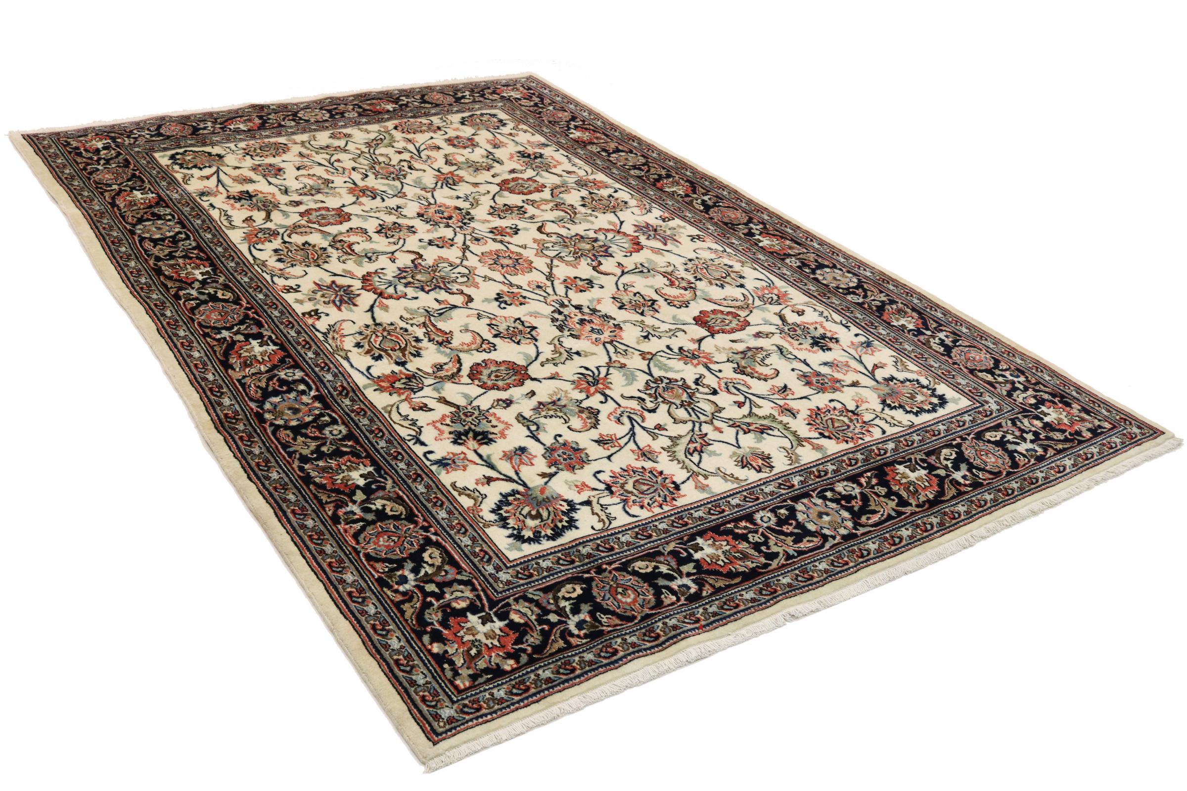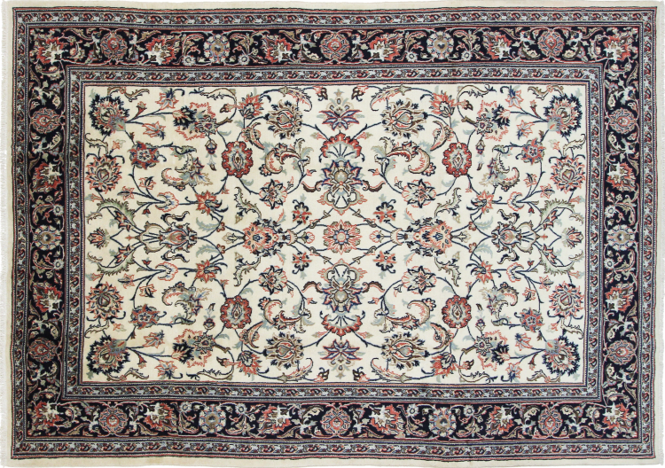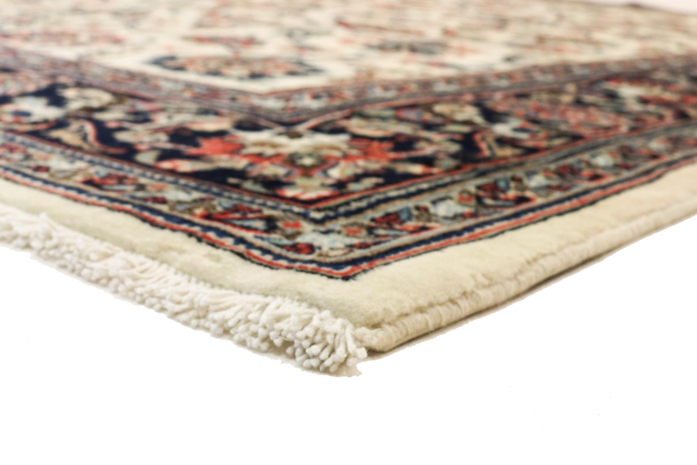 Dette tæppe fra Mashhad, en af de største byer i Iran, er håndknyttet af ren naturuld. Millioner af mennesker valfarter hvert år til denne hellige persiske by. Mashhad-tæpper er kendt for deres usædvanlige størrelser og uld af ekstremt høj kvalitet.