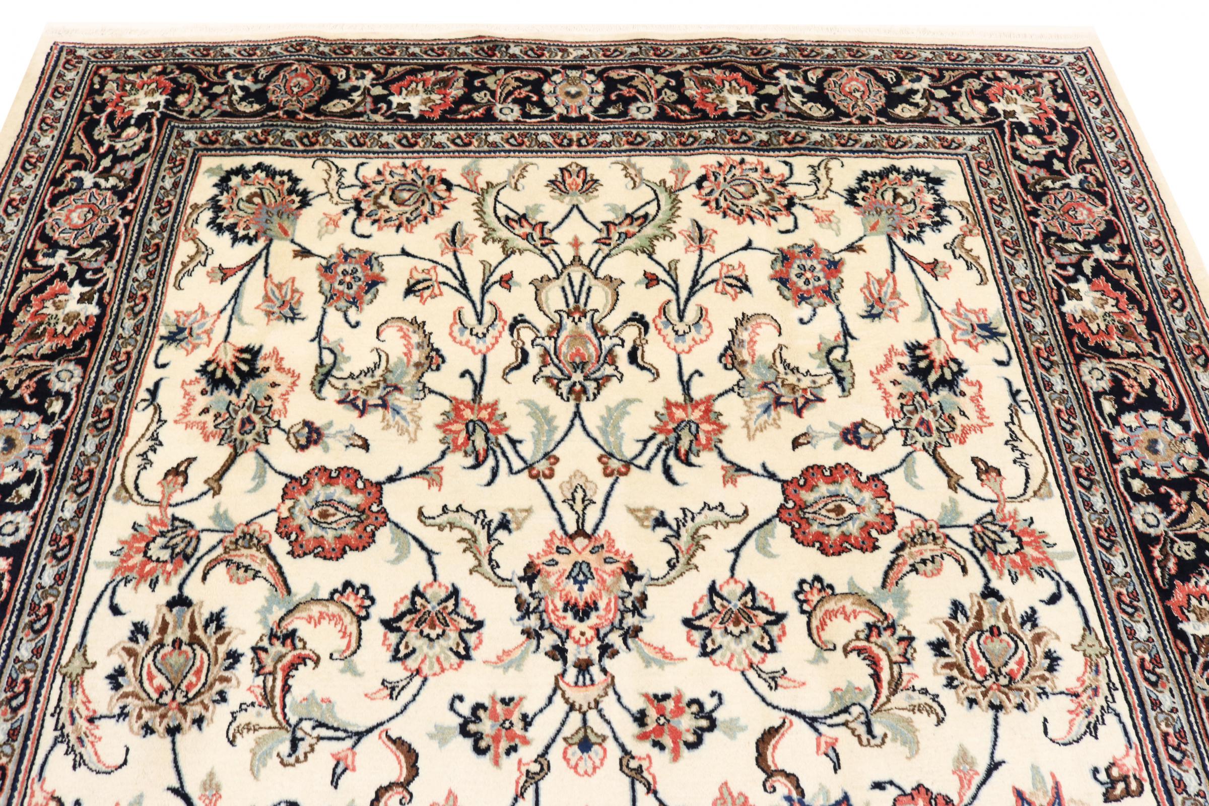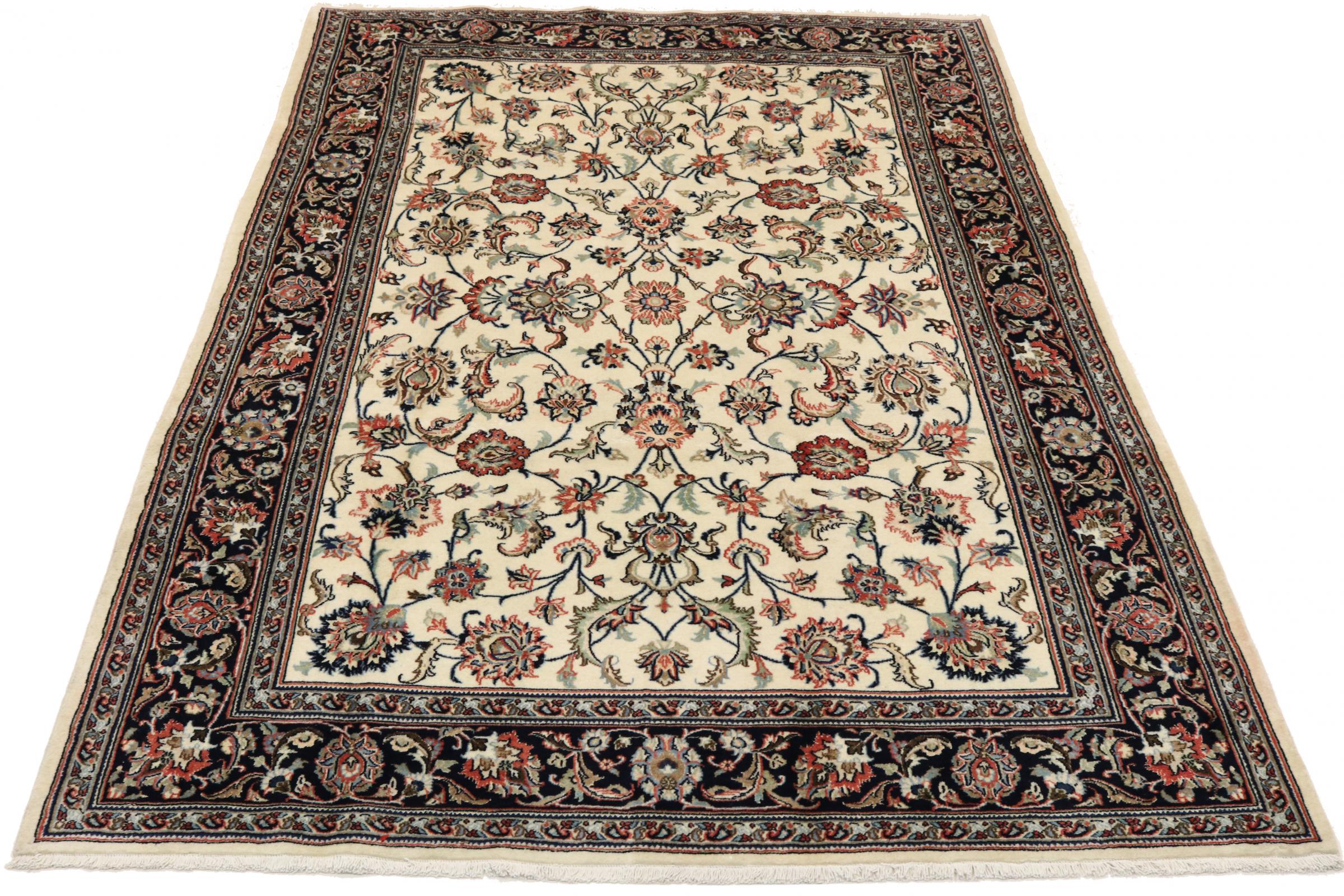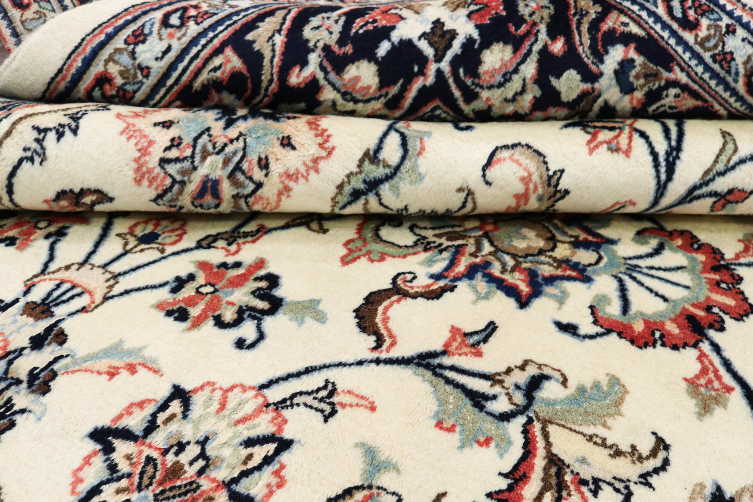 Dette tæppe fra Mashhad, en af de største byer i Iran, er håndknyttet af ren naturuld. Millioner af mennesker valfarter hvert år til denne hellige persiske by. Mashhad-tæpper er kendt for deres usædvanlige størrelser og uld af ekstremt høj kvalitet.
