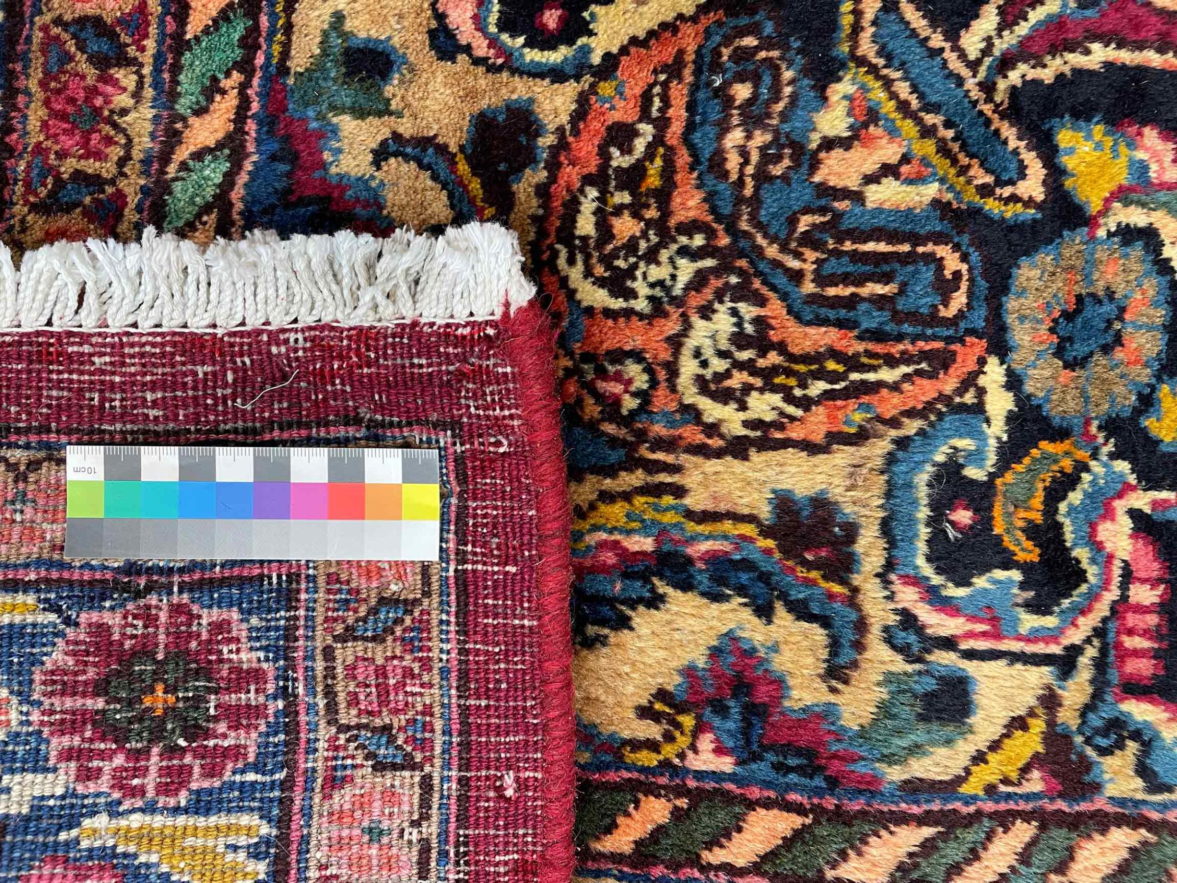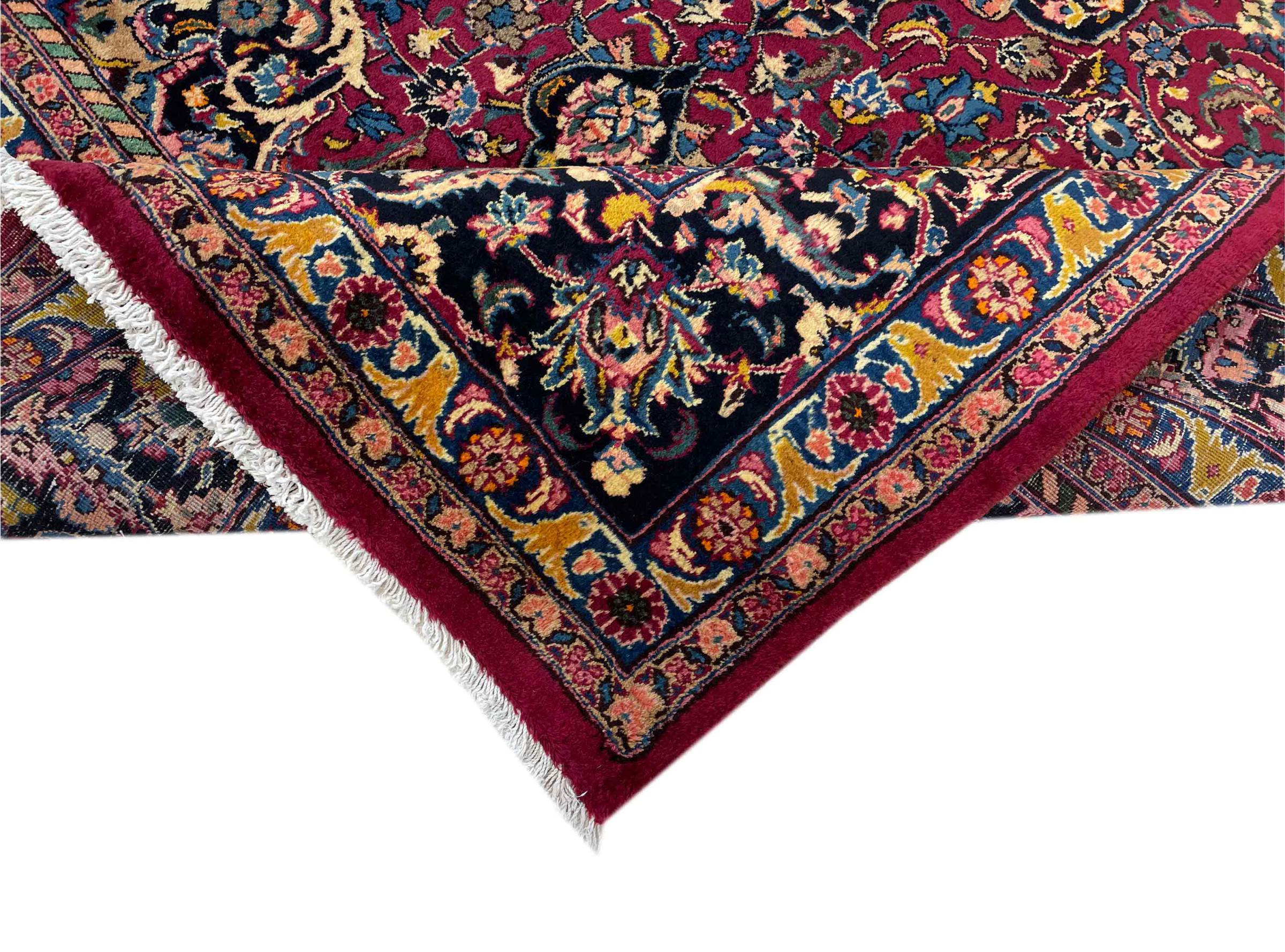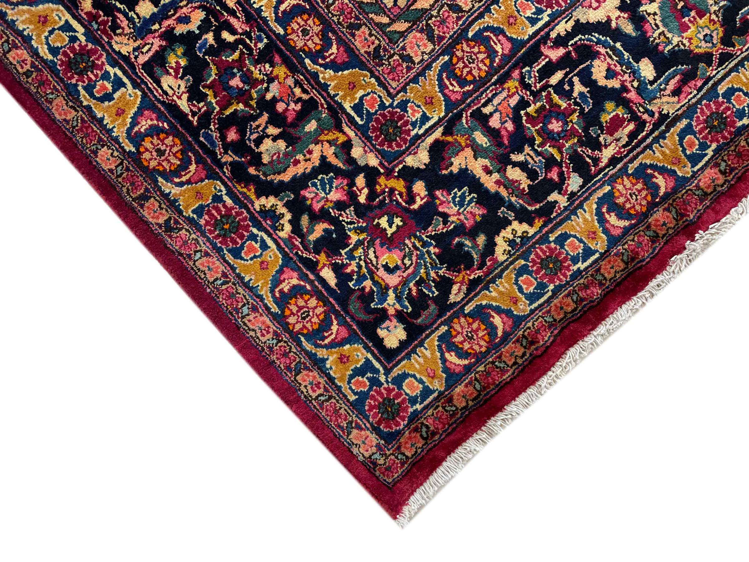 Dette tæppe fra Mashhad, en af de største byer i Iran, er håndknyttet af ren naturuld. Millioner af mennesker valfarter hvert år til denne hellige persiske by. Mashhad-tæpper er kendt for deres usædvanlige størrelser og uld af ekstremt høj kvalitet.