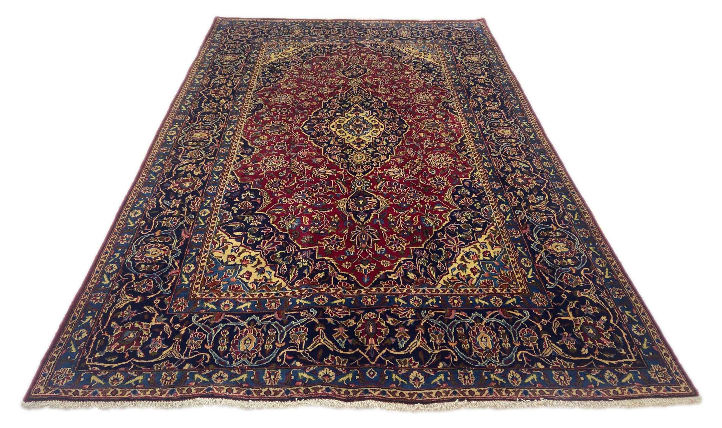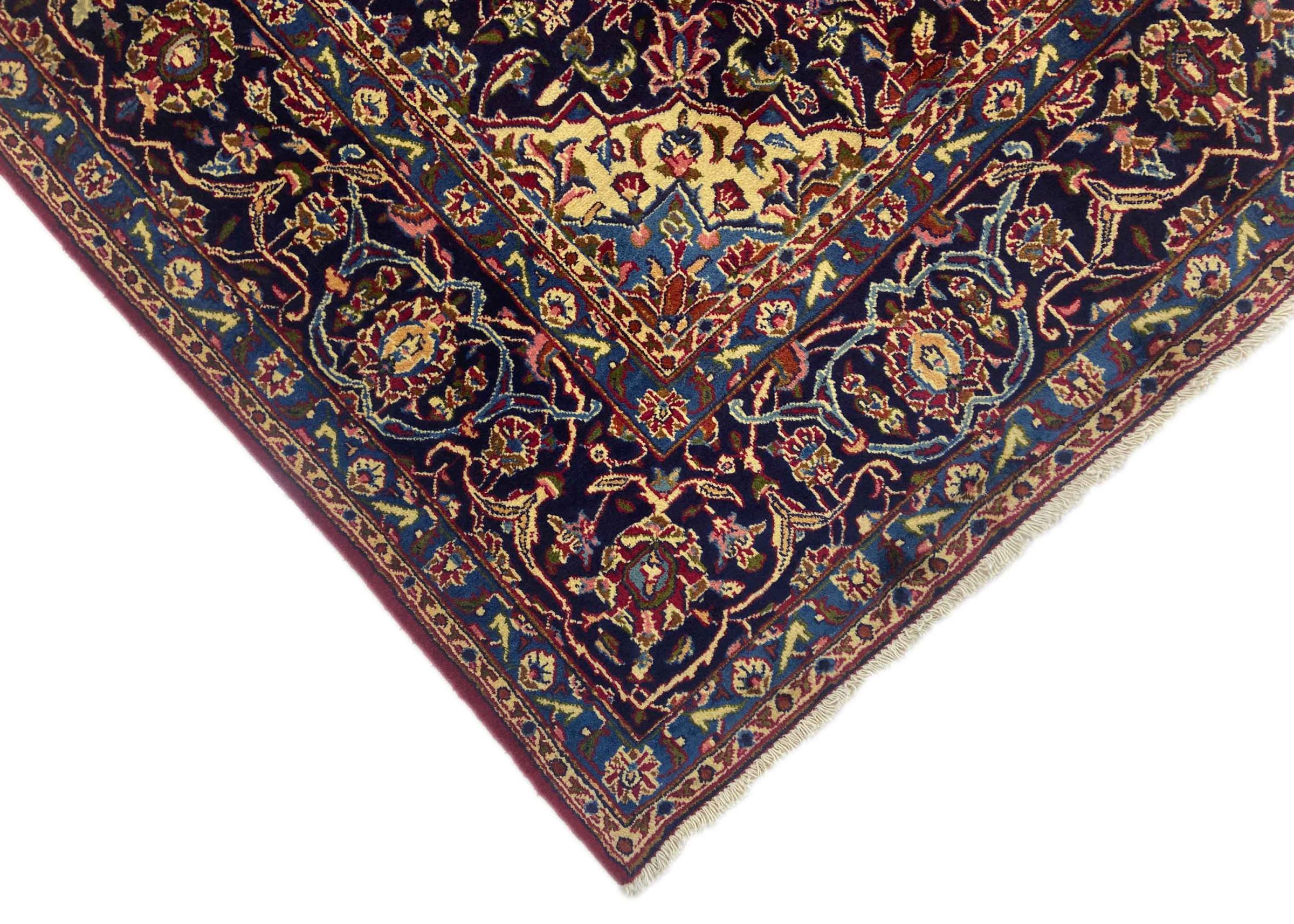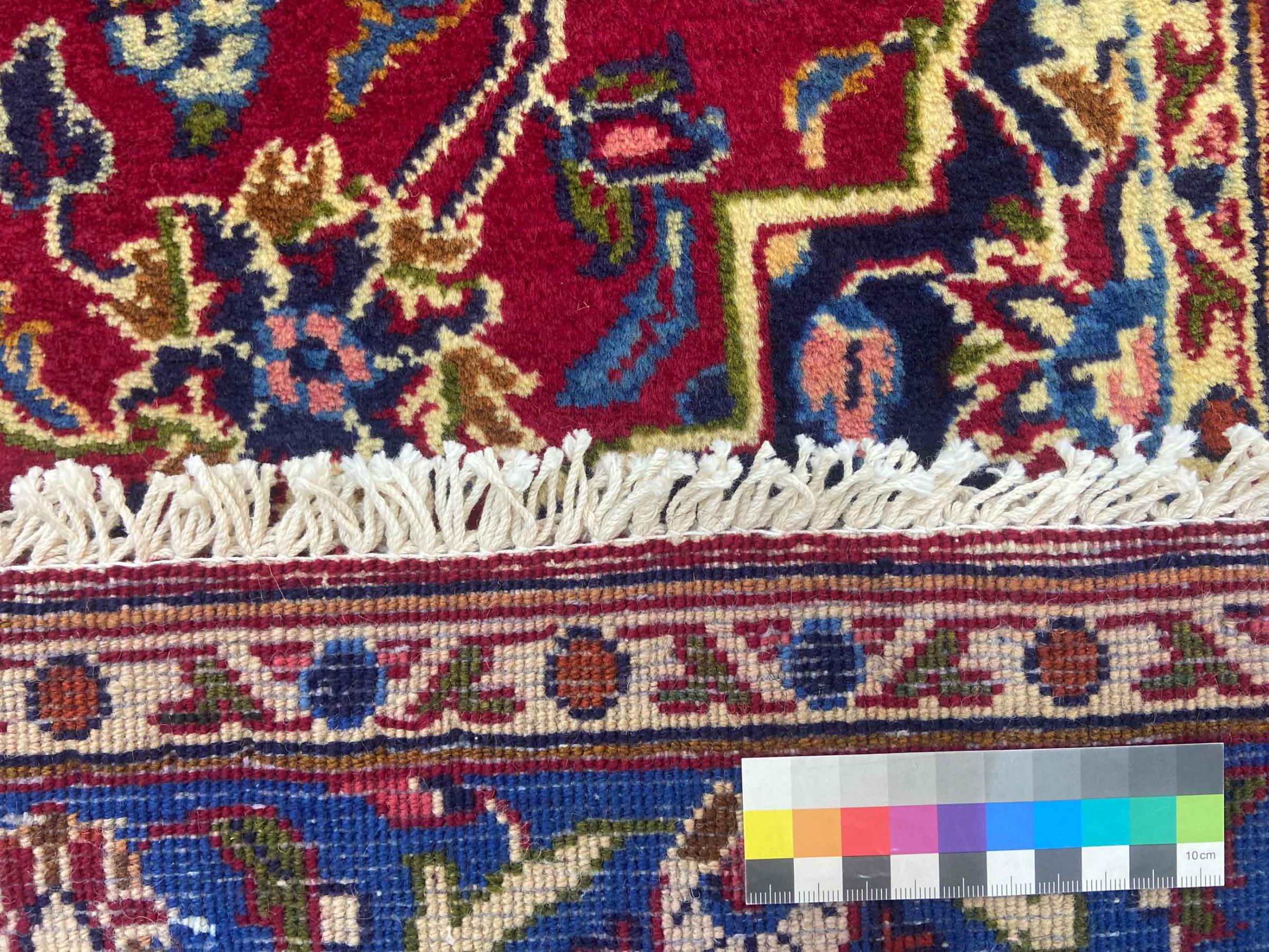 Dette tæppe fra Mashhad, en af de største byer i Iran, er håndknyttet af ren naturuld. Millioner af mennesker valfarter hvert år til denne hellige persiske by. Mashhad-tæpper er kendt for deres usædvanlige størrelser og uld af ekstremt høj kvalitet.
