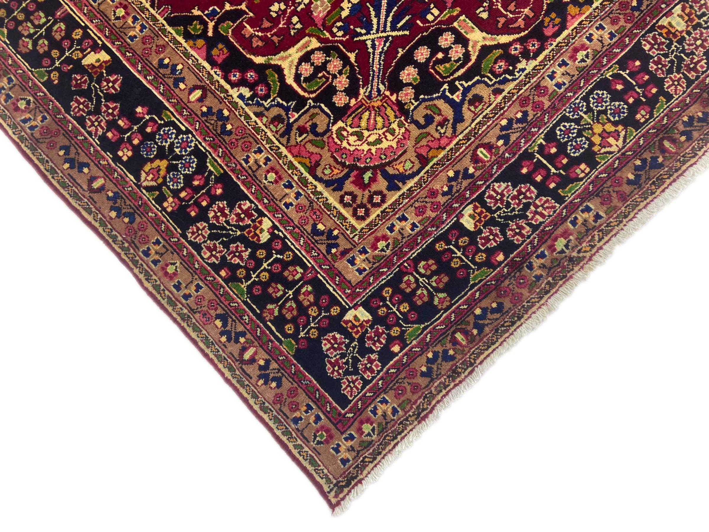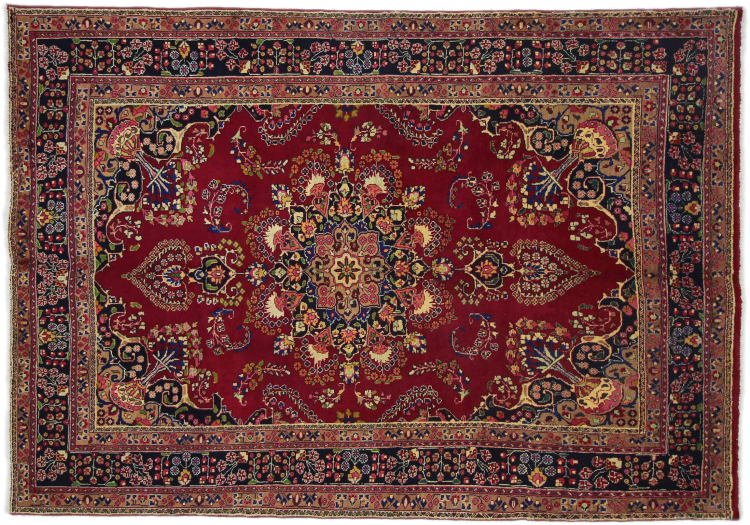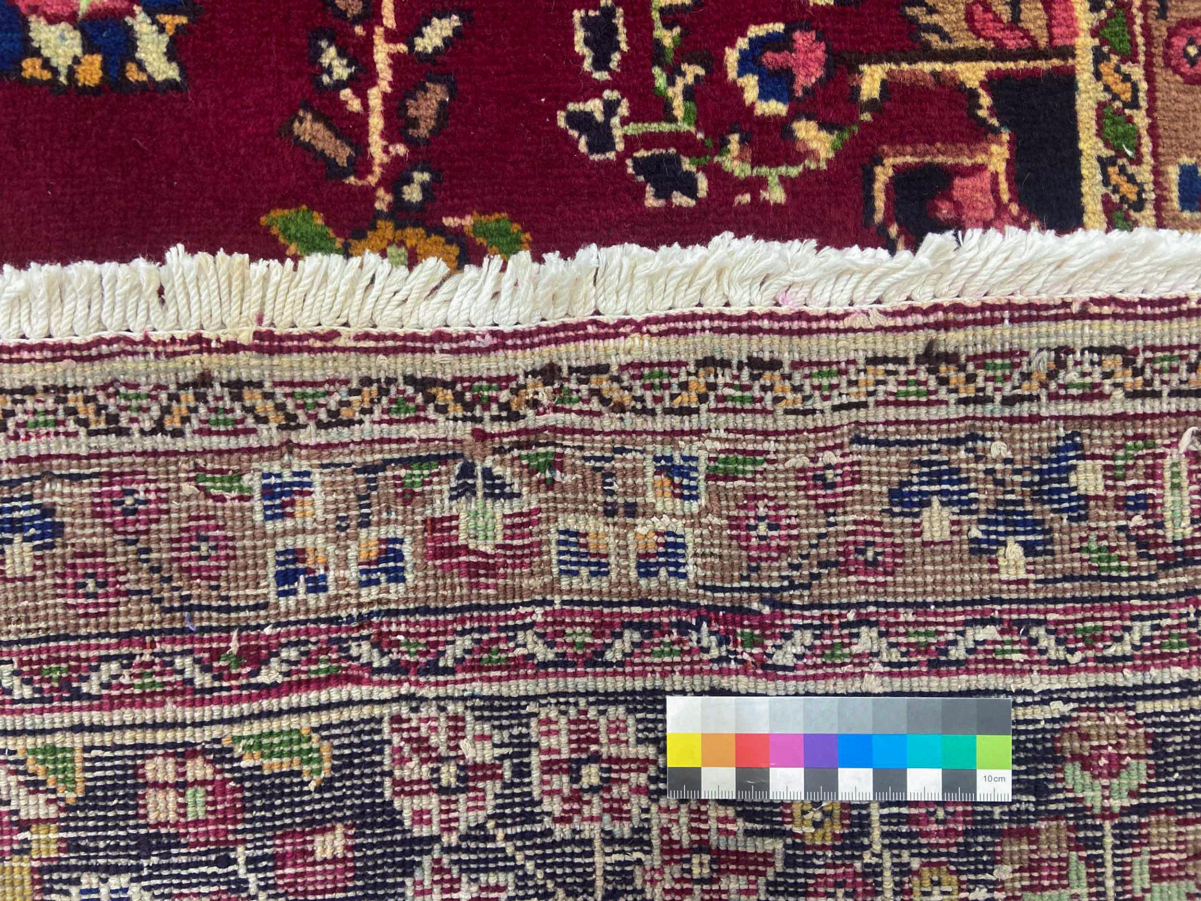 Dette tæppe fra Mashhad, en af de største byer i Iran, er håndknyttet af ren naturuld. Millioner af mennesker valfarter hvert år til denne hellige persiske by. Mashhad-tæpper er kendt for deres usædvanlige størrelser og uld af ekstremt høj kvalitet.