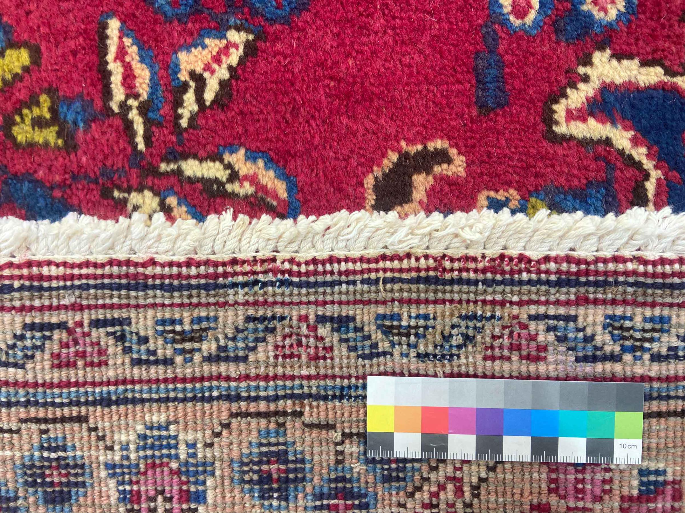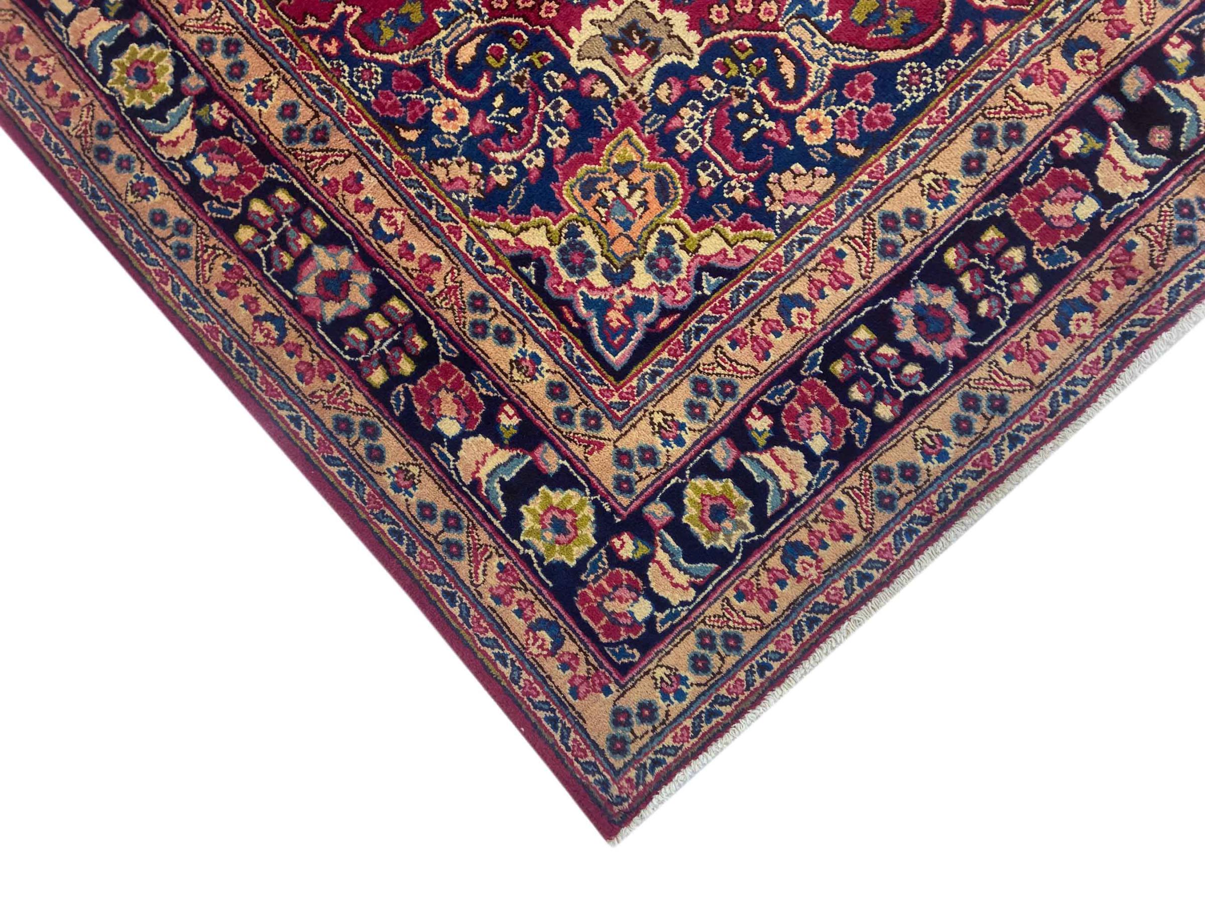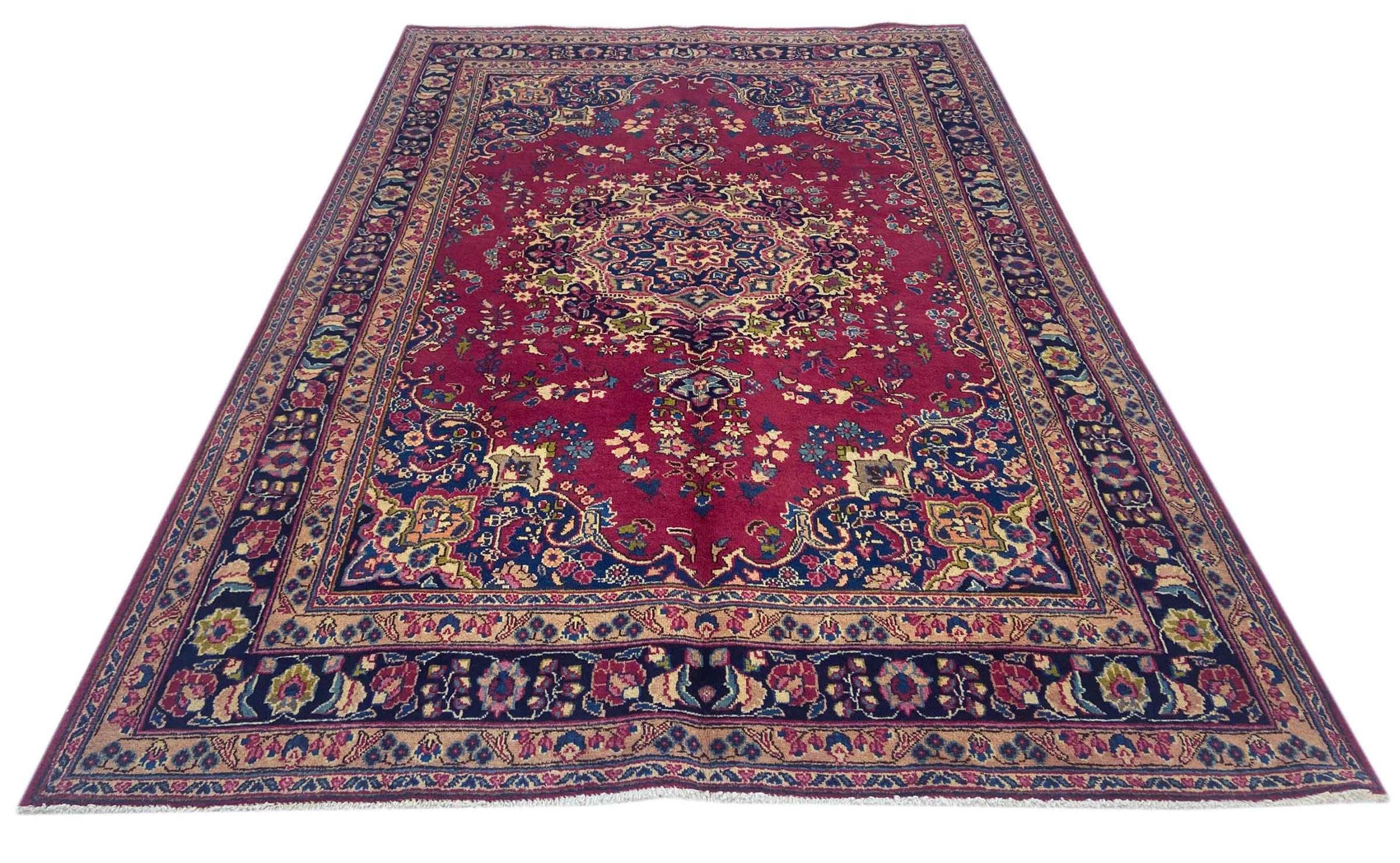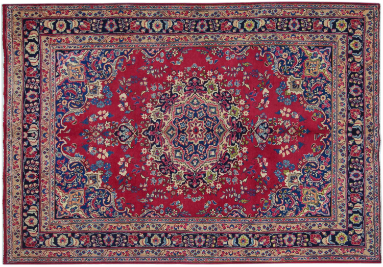 Dette tæppe fra Mashhad, en af de største byer i Iran, er håndknyttet af ren naturuld. Millioner af mennesker valfarter hvert år til denne hellige persiske by. Mashhad-tæpper er kendt for deres usædvanlige størrelser og uld af ekstremt høj kvalitet.
