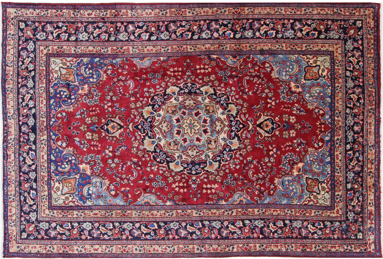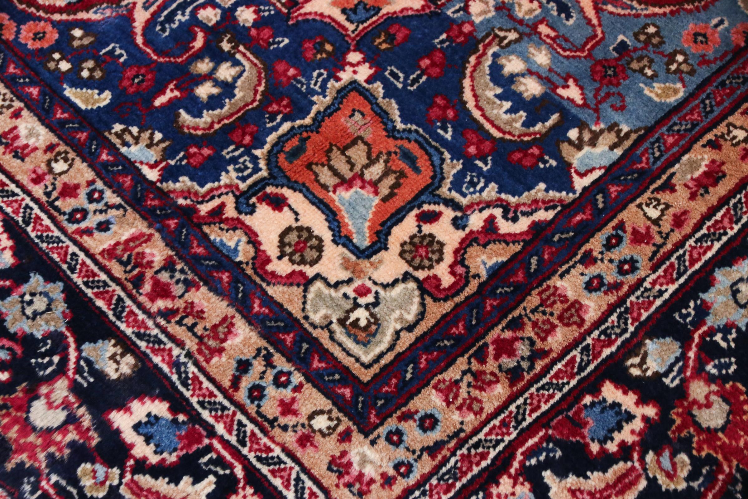Dette tæppe fra Mashhad, en af de største byer i Iran, er håndknyttet af ren naturuld. Millioner af mennesker valfarter hvert år til denne hellige persiske by. Mashhad-tæpper er kendt for deres usædvanlige størrelser og uld af ekstremt høj kvalitet.
