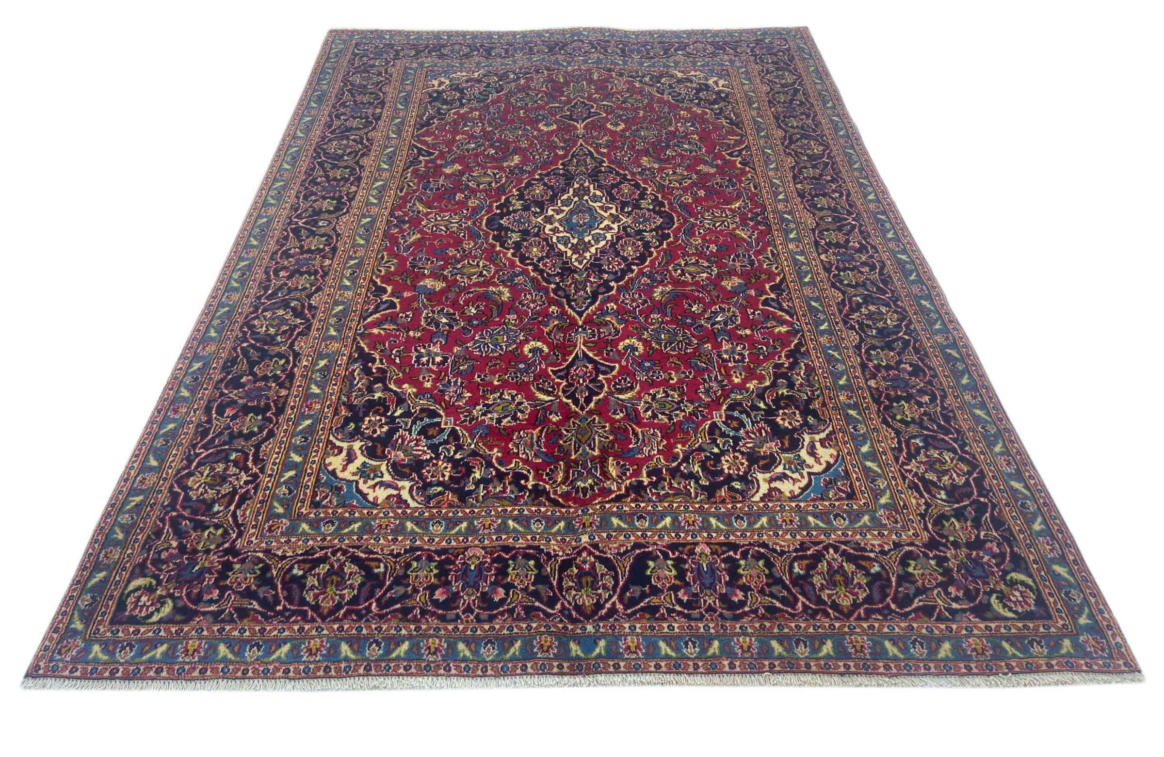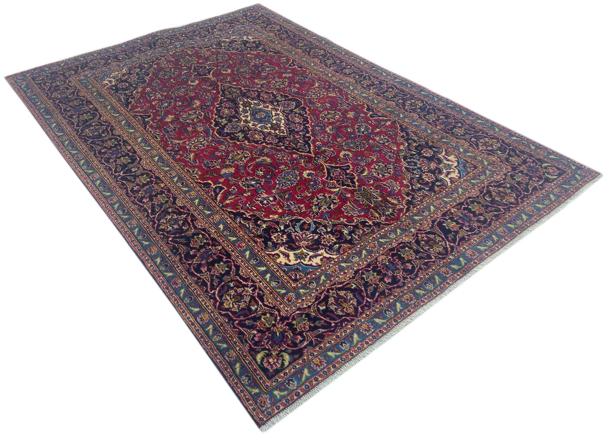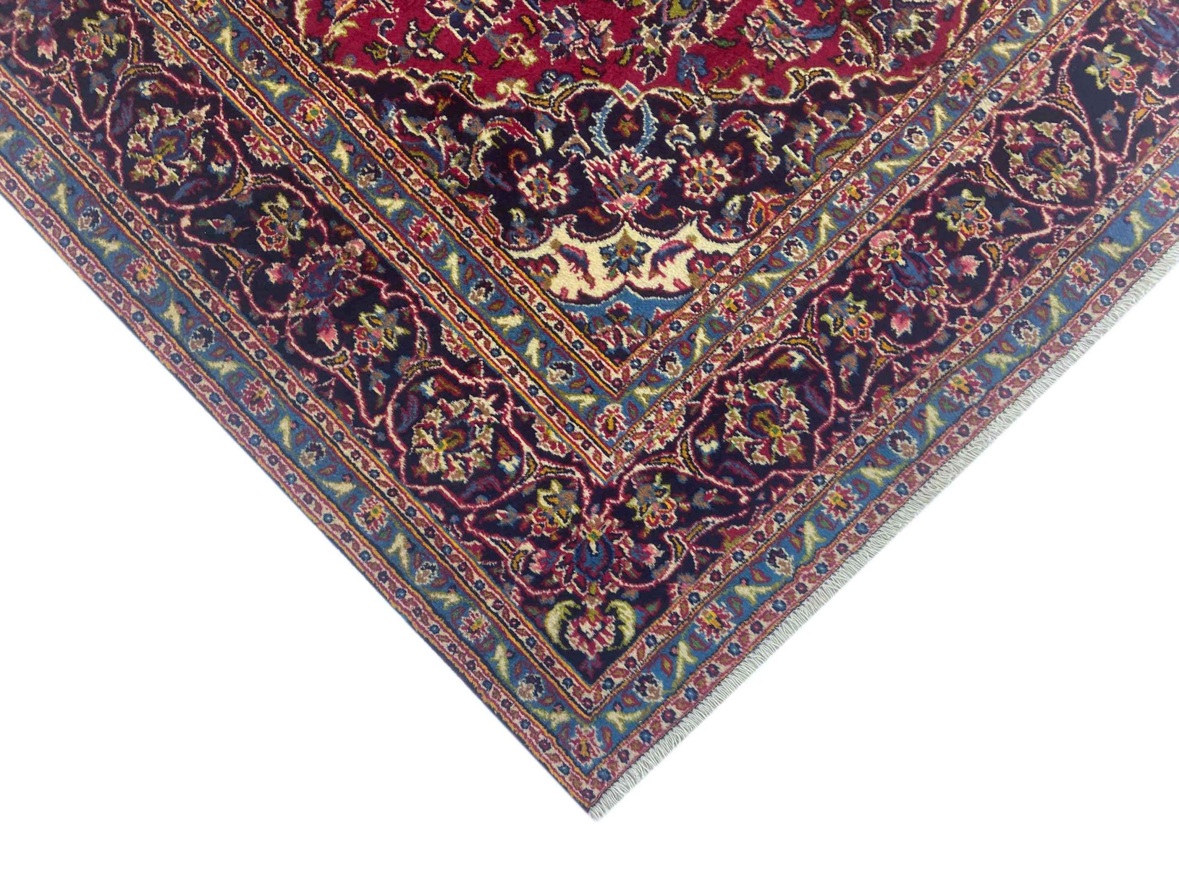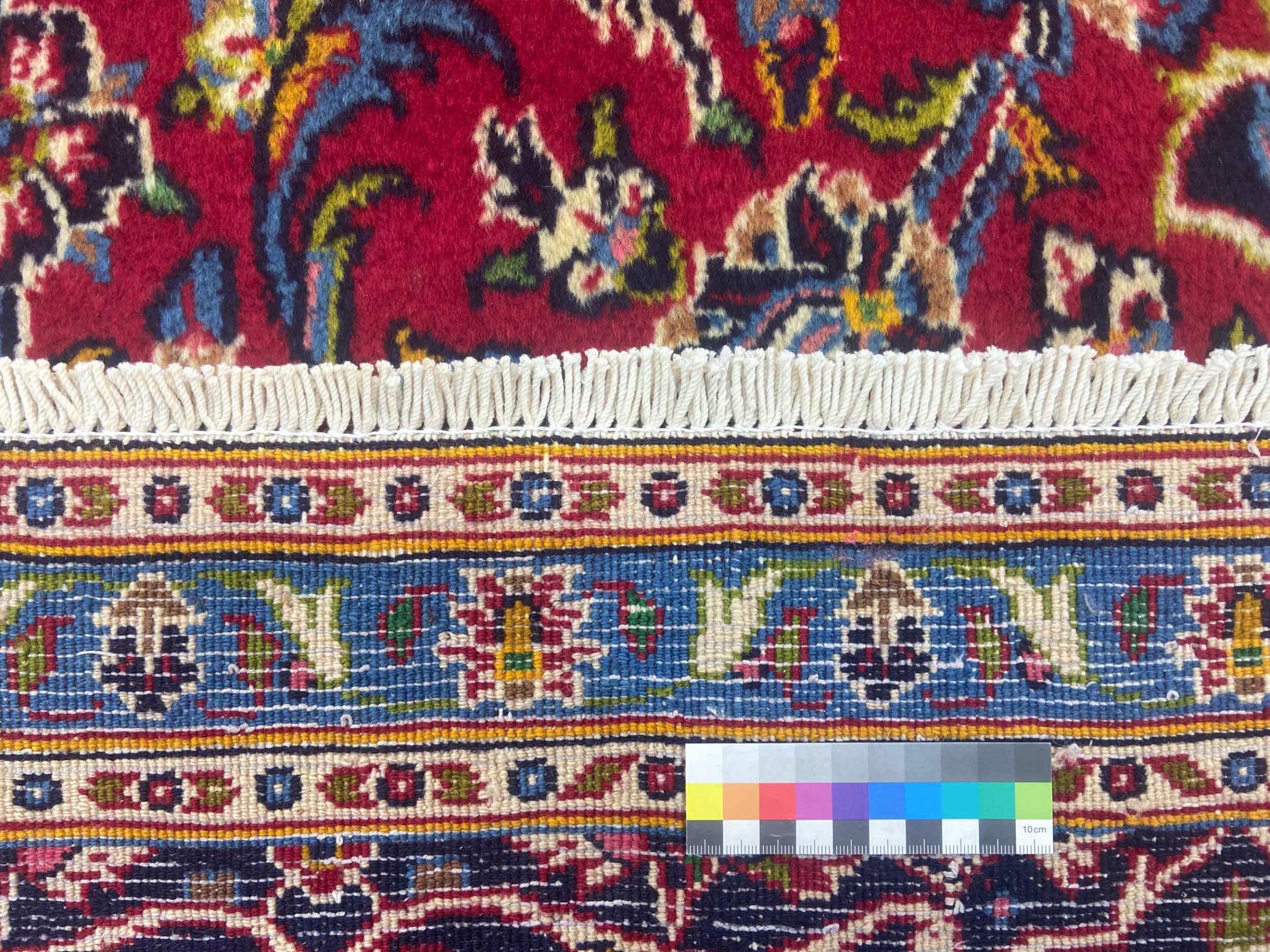 Dette tæppe fra Mashhad, en af de største byer i Iran, er håndknyttet af ren naturuld. Millioner af mennesker valfarter hvert år til denne hellige persiske by. Mashhad-tæpper er kendt for deres usædvanlige størrelser og uld af ekstremt høj kvalitet.