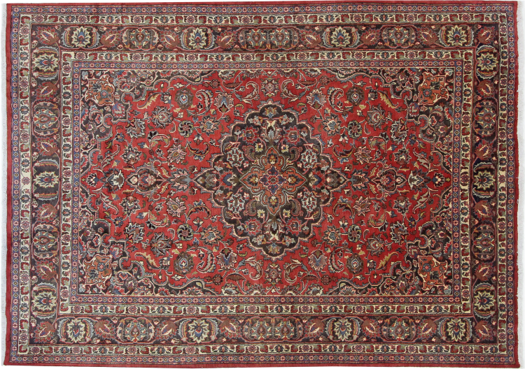 Dette tæppe fra Mashhad, en af de største byer i Iran, er håndknyttet af ren naturuld. Millioner af mennesker valfarter hvert år til denne hellige persiske by. Mashhad-tæpper er kendt for deres usædvanlige størrelser og uld af ekstremt høj kvalitet.