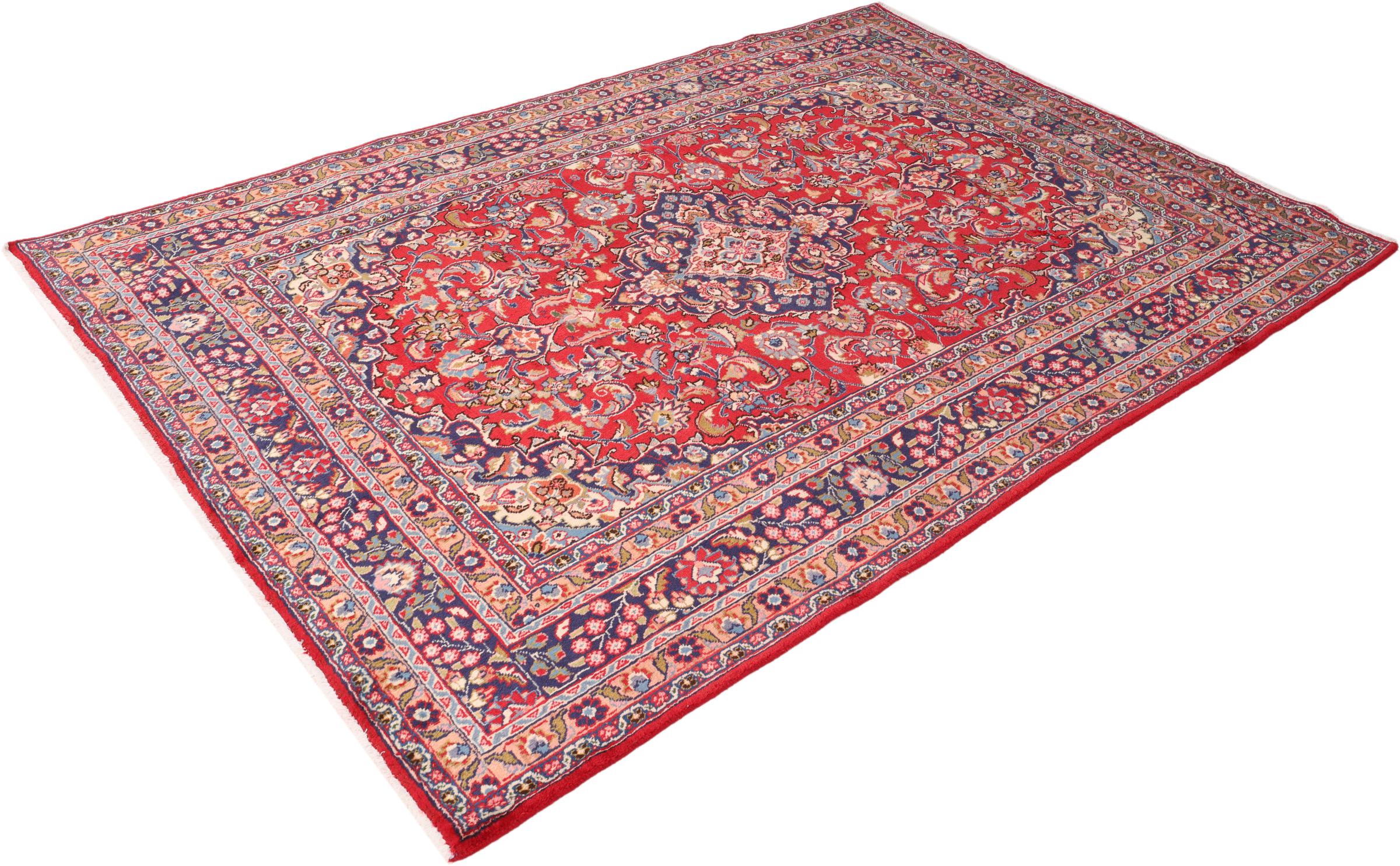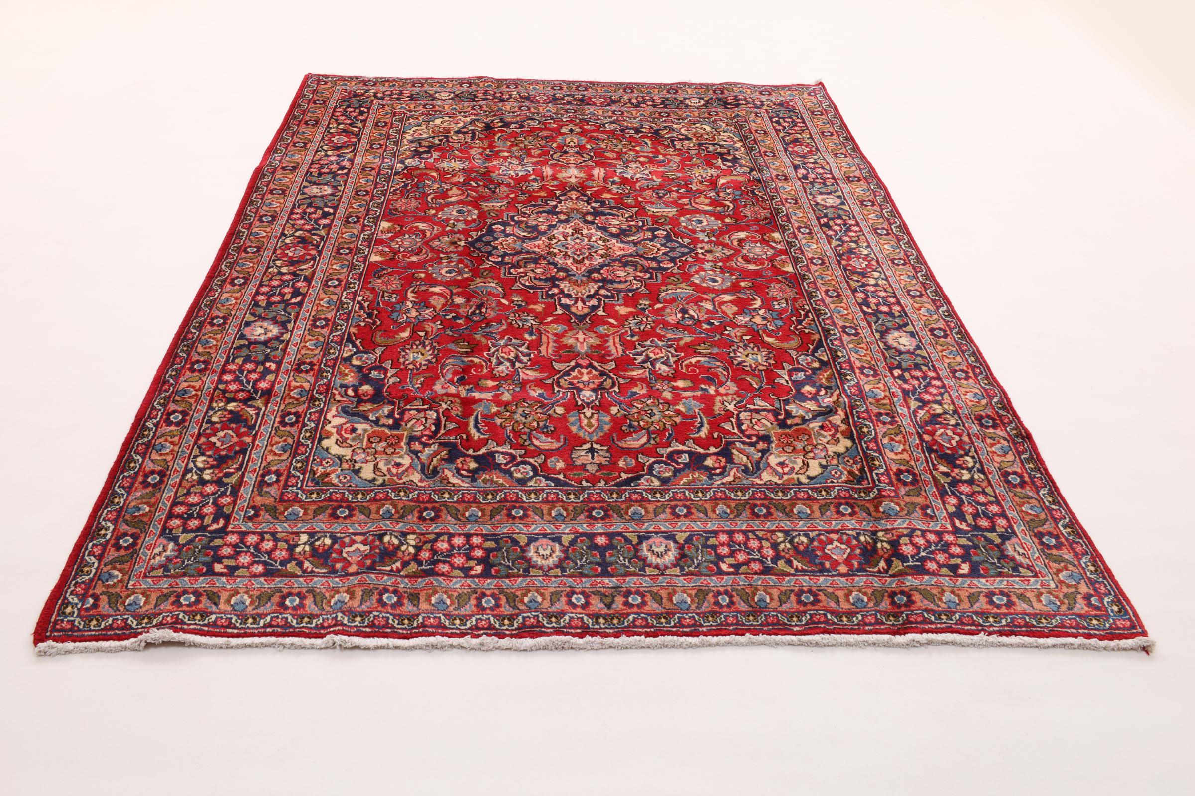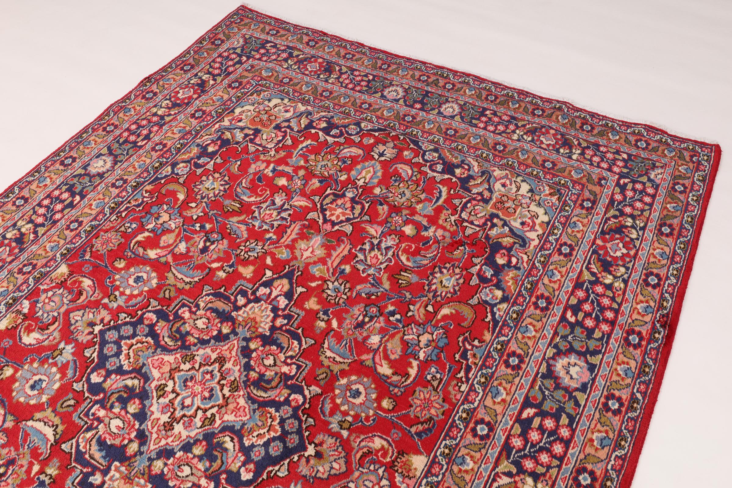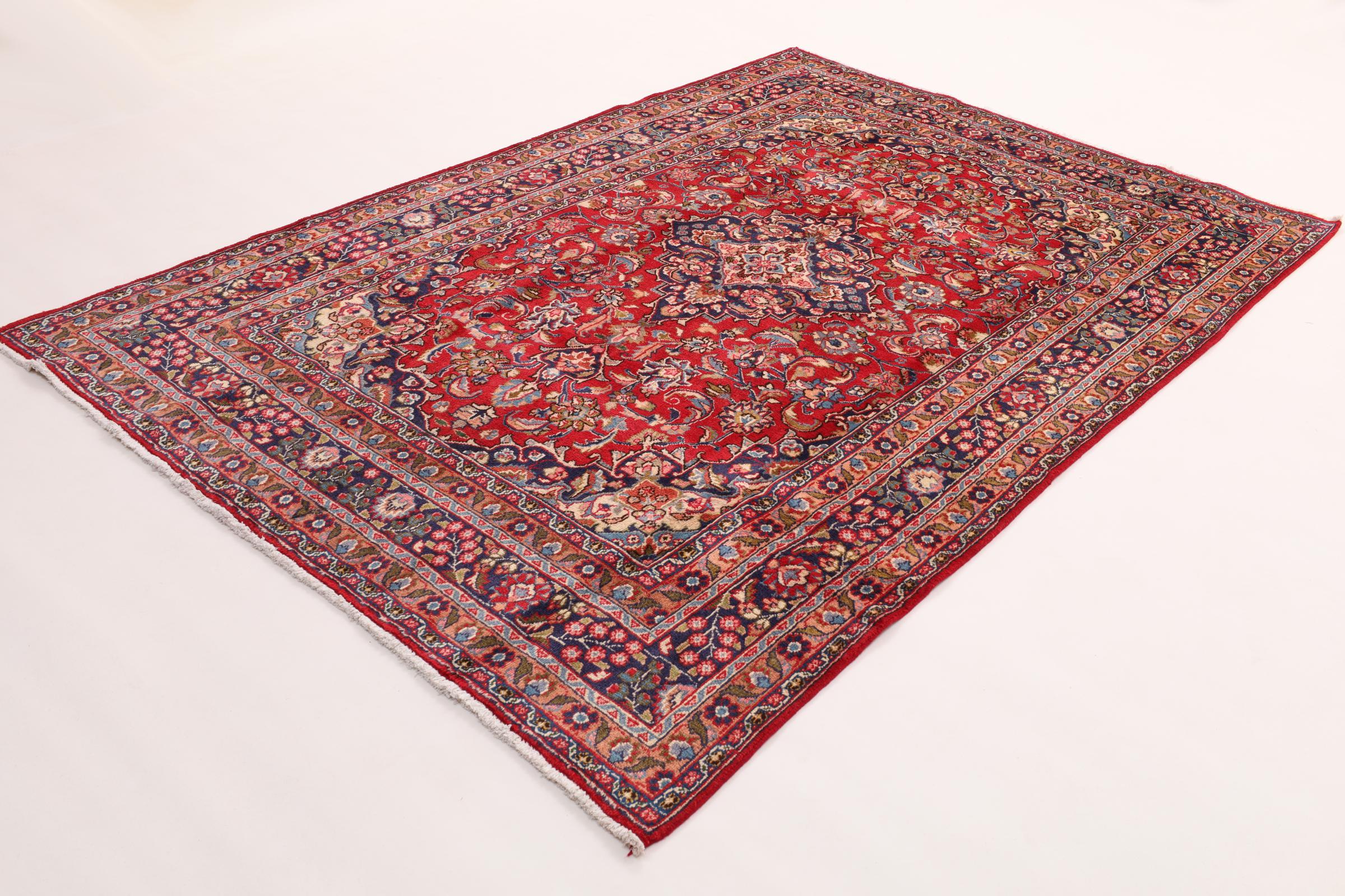 Dette tæppe fra Mashhad, en af de største byer i Iran, er håndknyttet af ren naturuld. Millioner af mennesker valfarter hvert år til denne hellige persiske by. Mashhad-tæpper er kendt for deres usædvanlige størrelser og uld af ekstremt høj kvalitet.