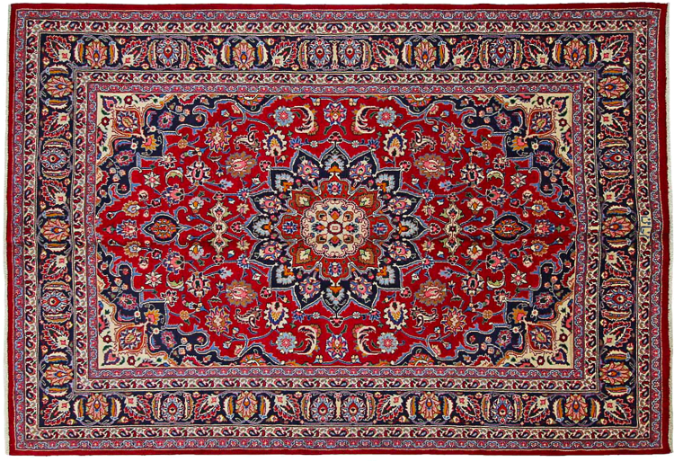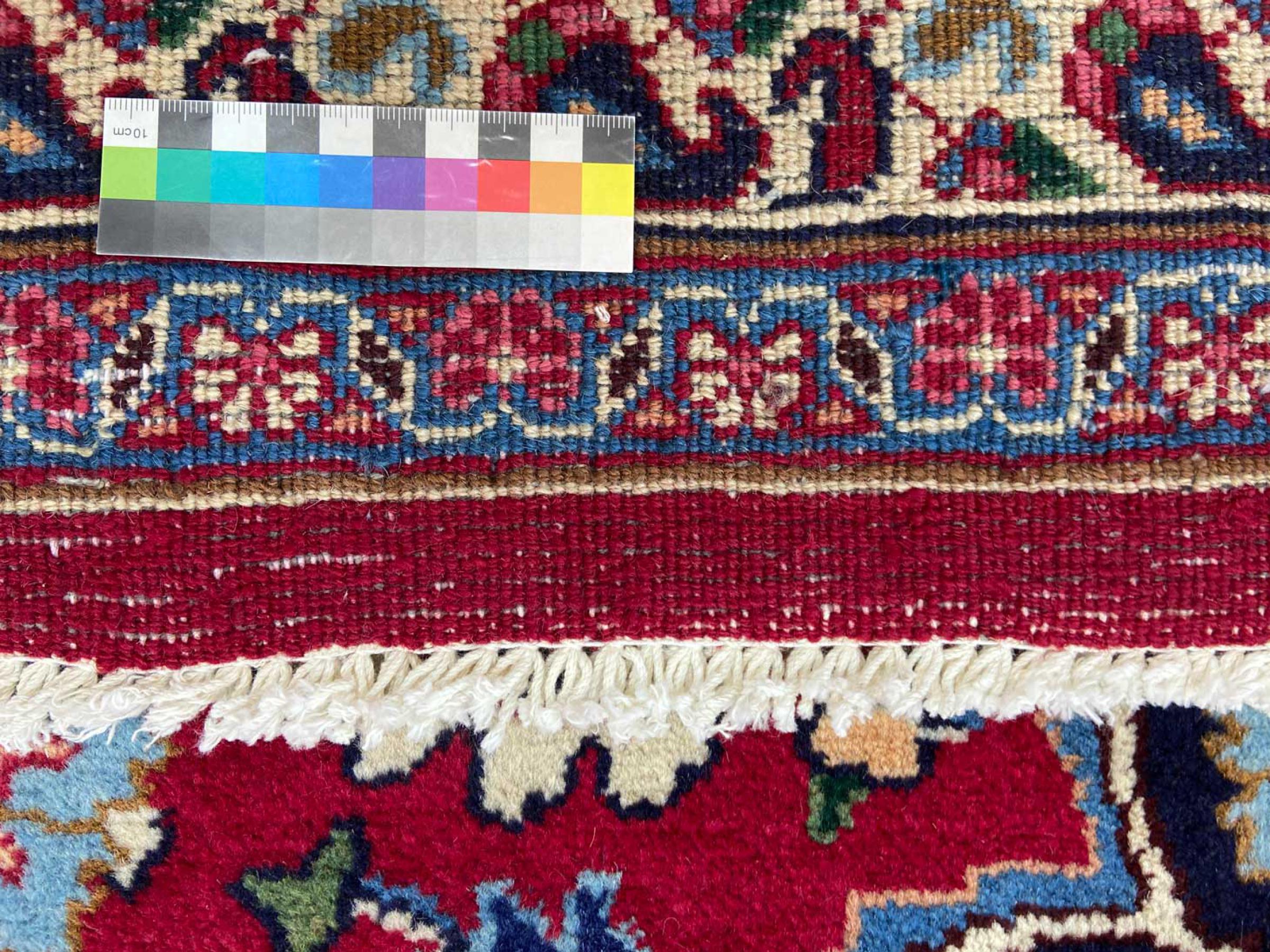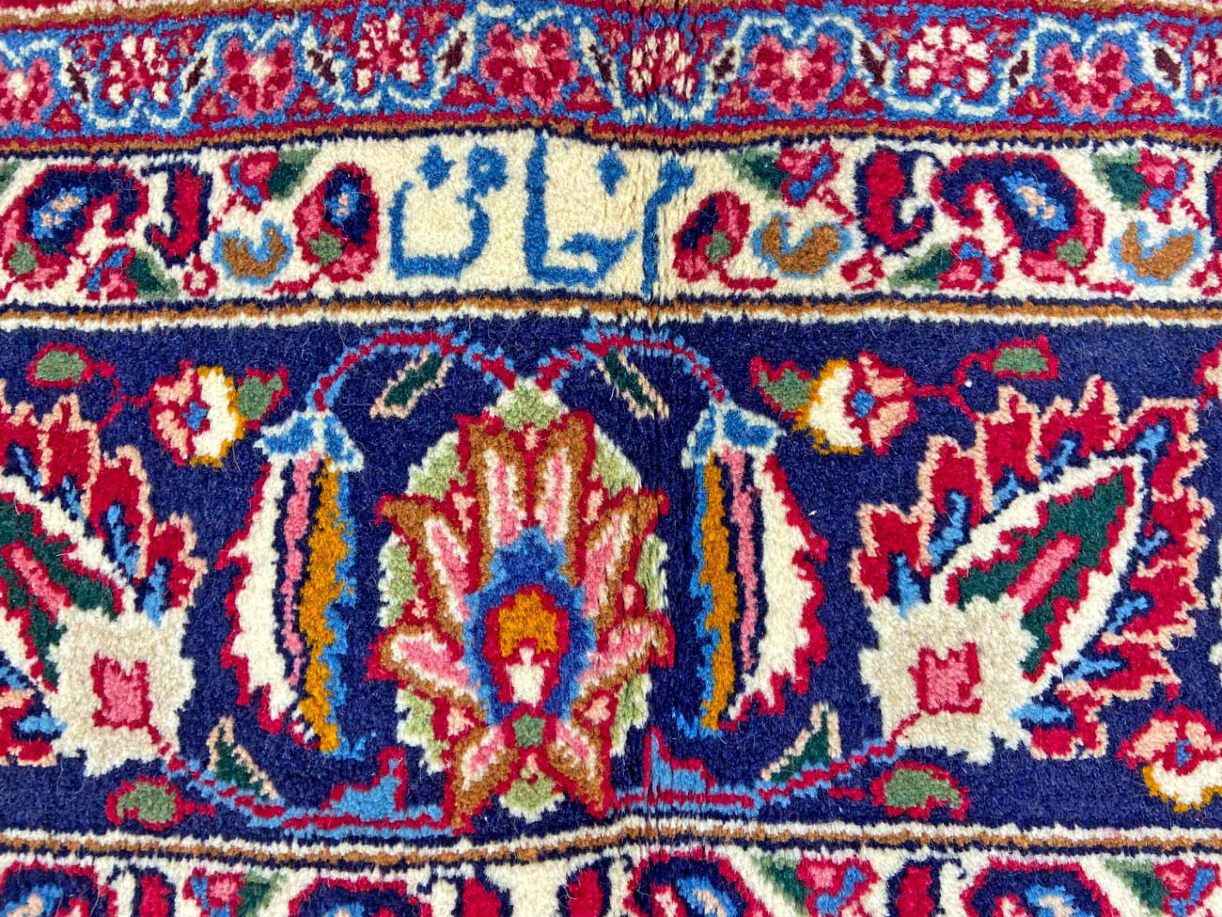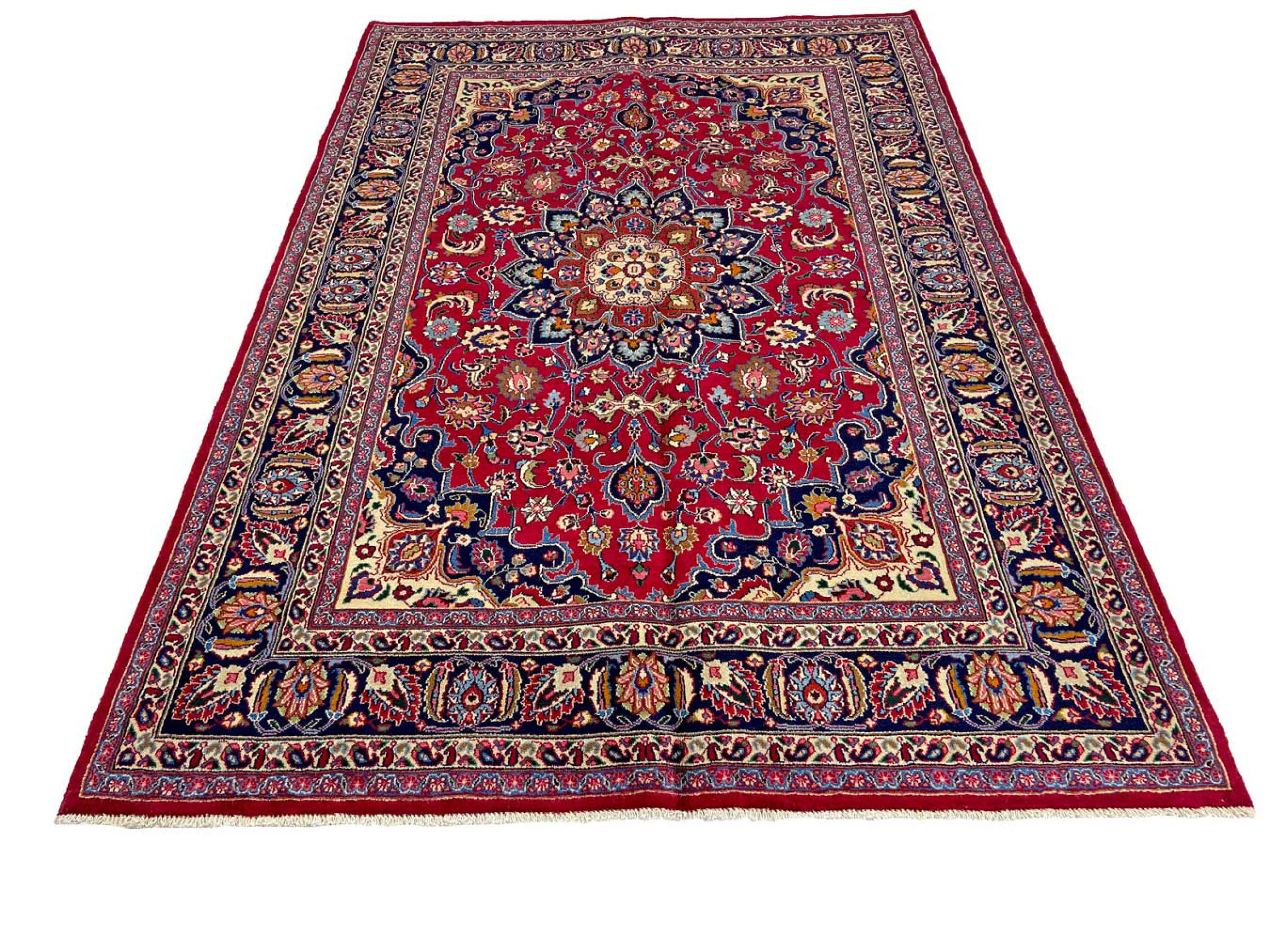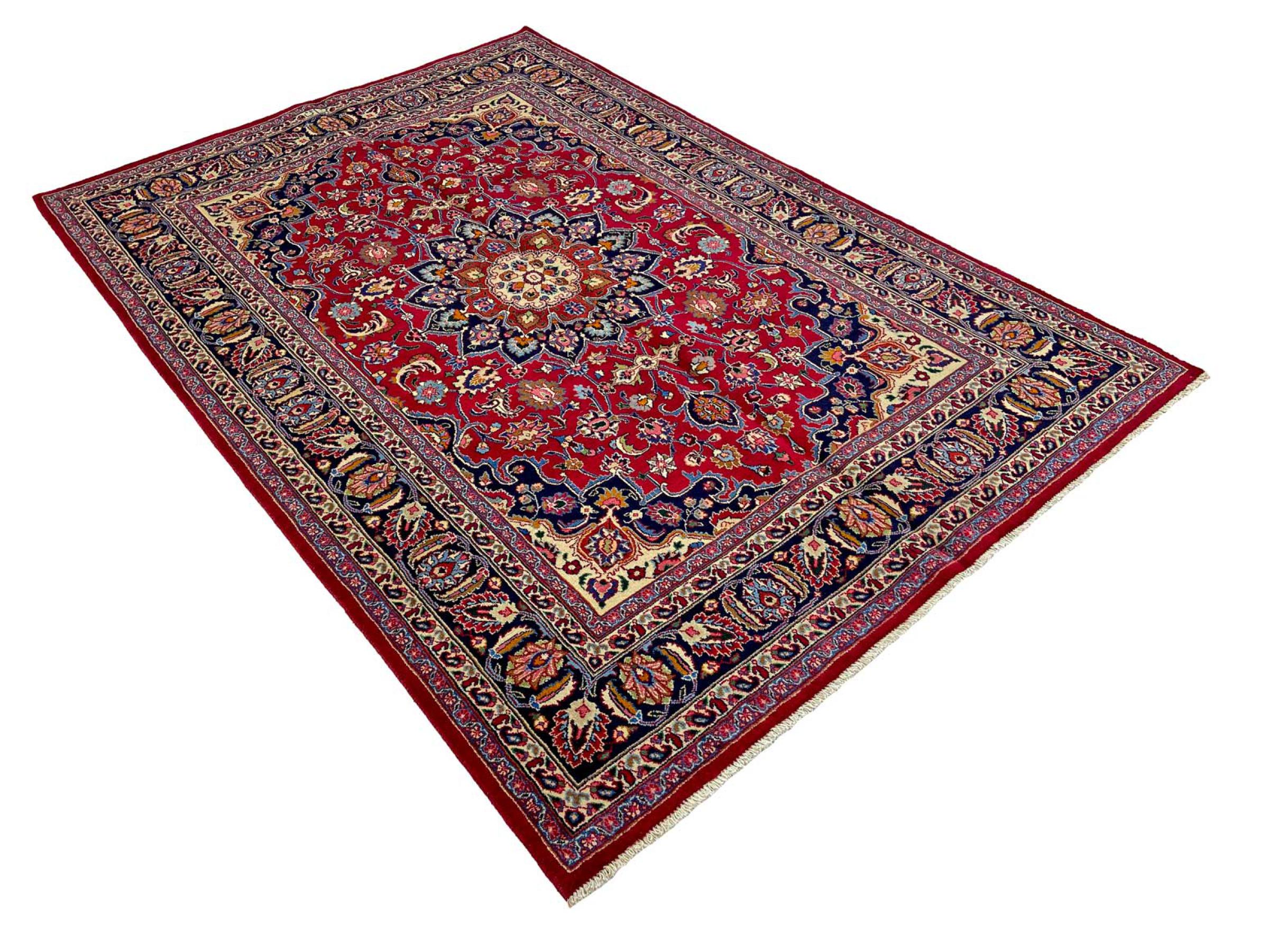Dette tæppe fra Mashhad, en af de største byer i Iran, er håndknyttet af ren naturuld. Millioner af mennesker valfarter hvert år til denne hellige persiske by. Mashhad-tæpper er kendt for deres usædvanlige størrelser og uld af ekstremt høj kvalitet.