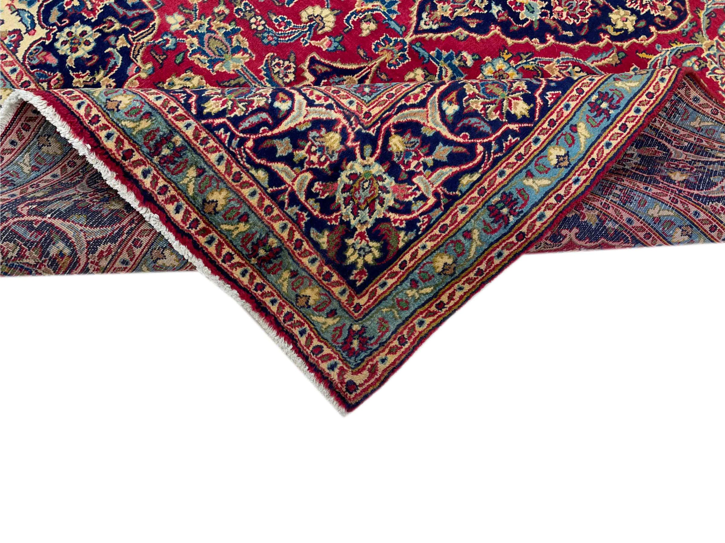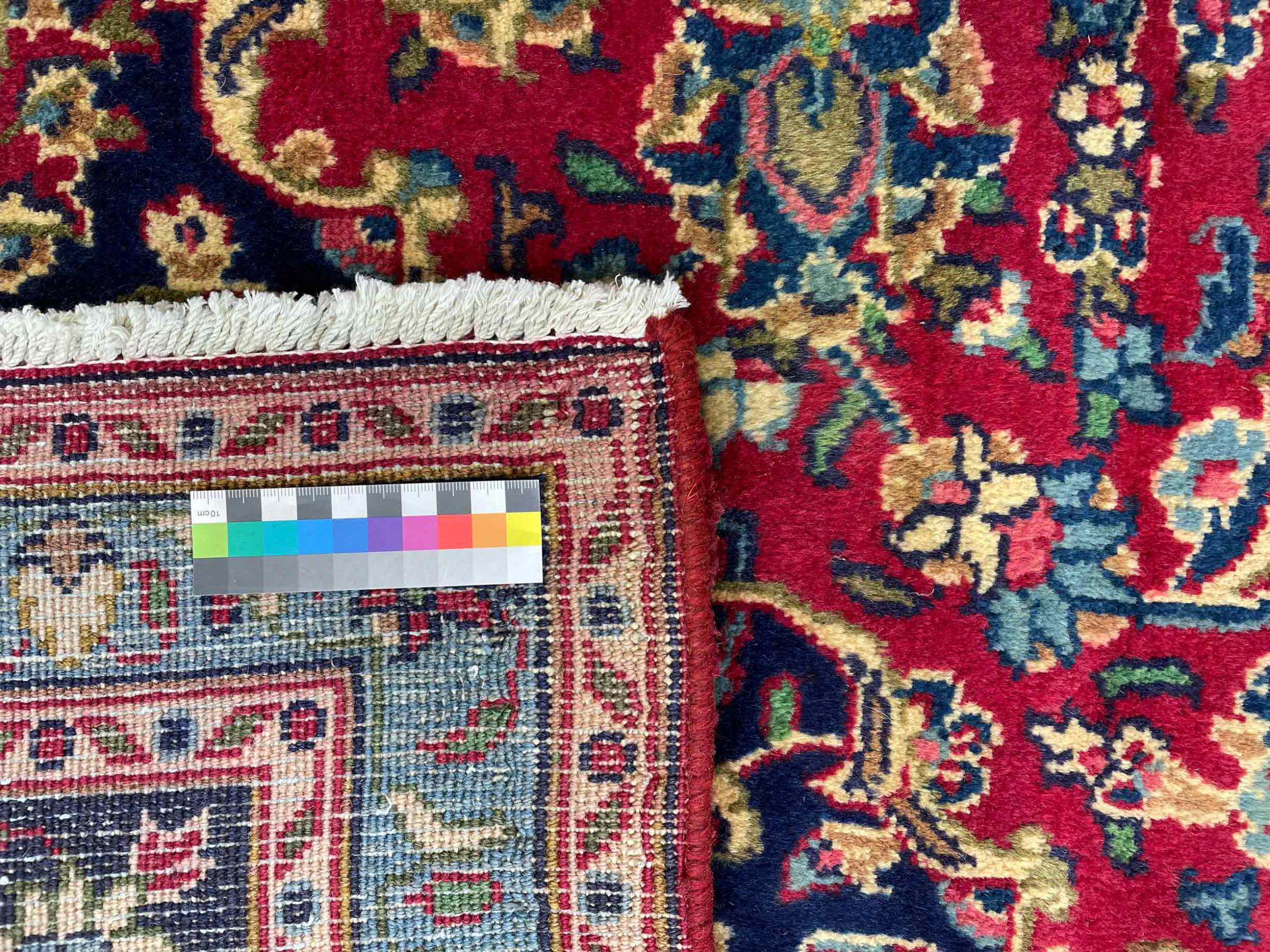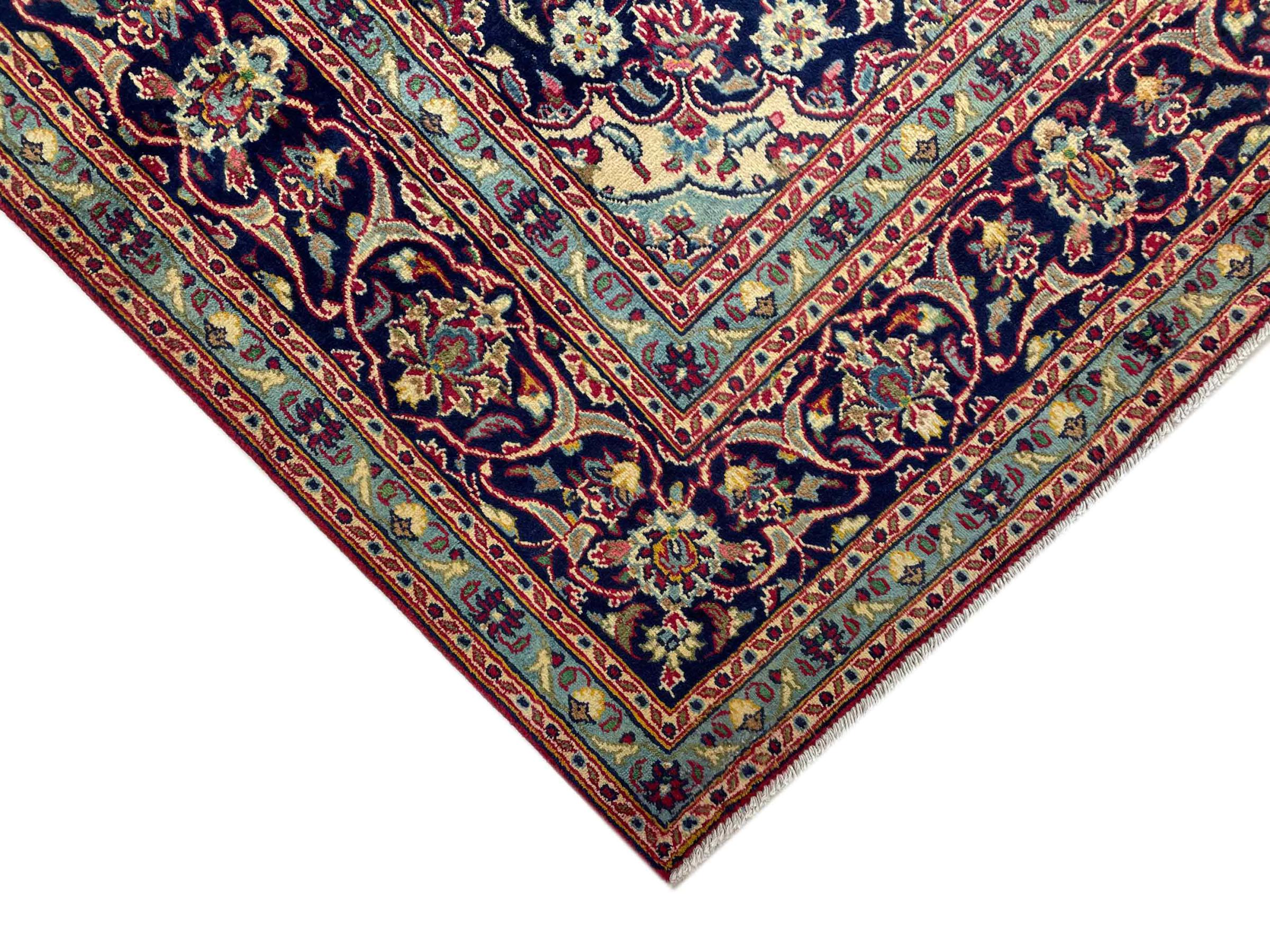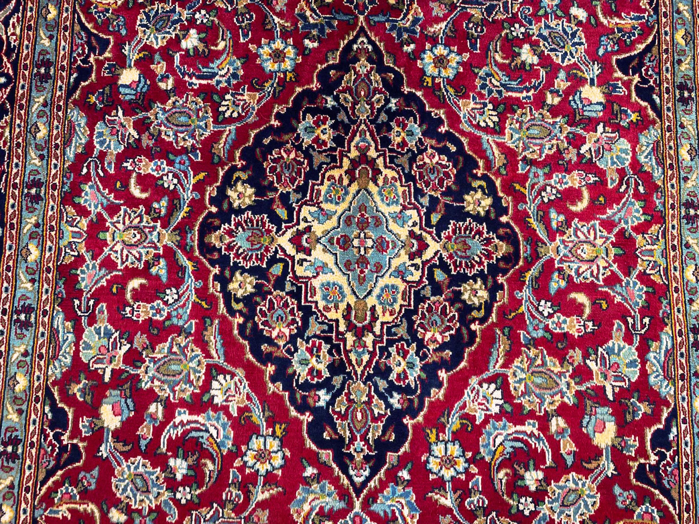 Dette tæppe fra Mashhad, en af de største byer i Iran, er håndknyttet af ren naturuld. Millioner af mennesker valfarter hvert år til denne hellige persiske by. Mashhad-tæpper er kendt for deres usædvanlige størrelser og uld af ekstremt høj kvalitet.